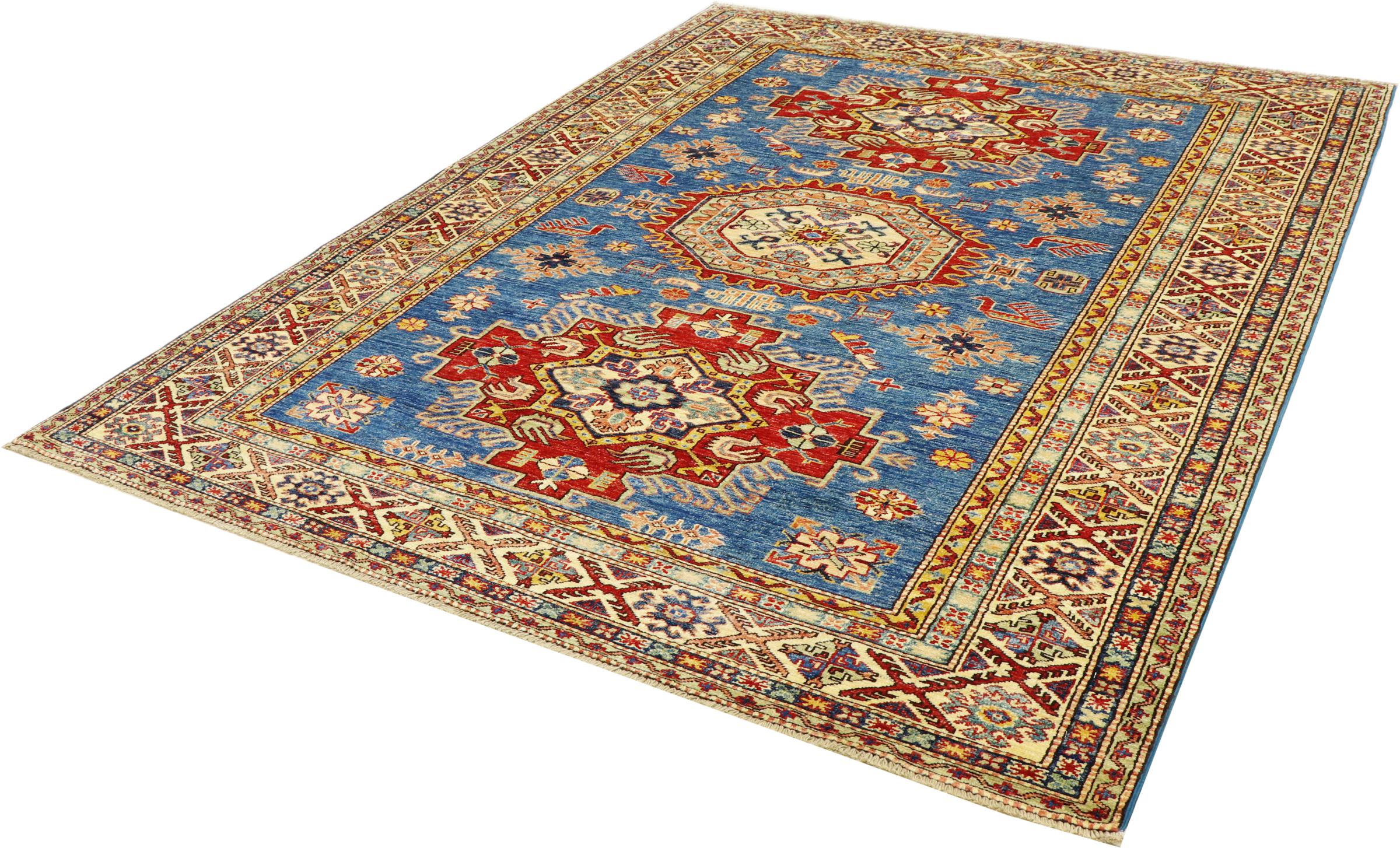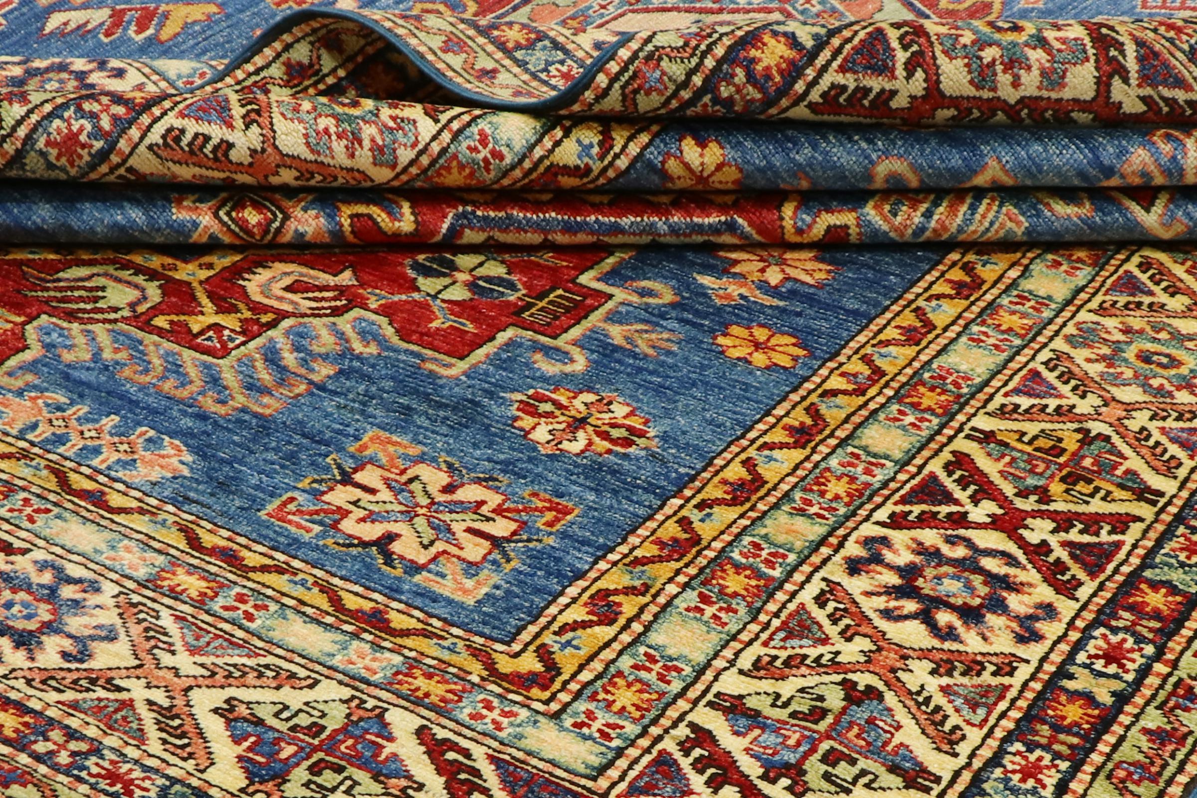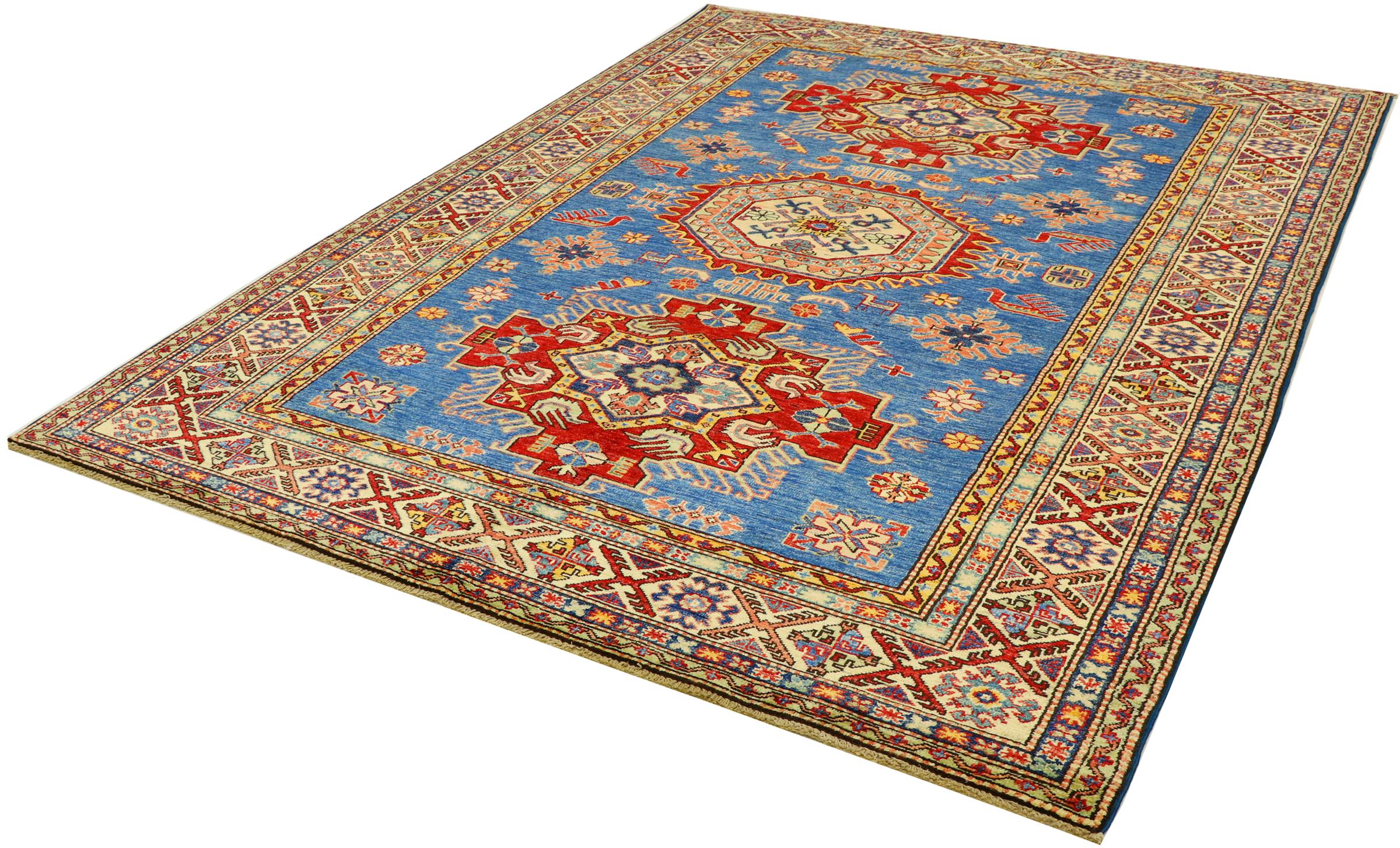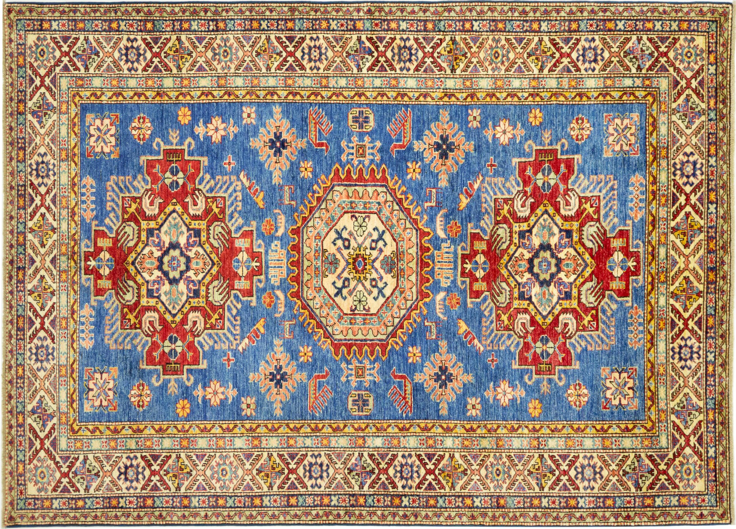 Kazak-vloerkleden zijn duurzame, levendige wollen vloerkleden die bekend staan om hun unieke geometrische patronen, uitgebalanceerde kleuren en uitzonderlijk vakmanschap. Ze zullen een boeiende en cultureel rijke sfeer in uw ruimte creëren. Oorspronkelijk afkomstig uit de Kaukasus en een van de oudste soorten tapijten, worden ze nu voornamelijk gemaakt door Kazachen in Afghanistan en Pakistan. Een antiek Kazachs tapijt kan zeer waardevol zijn voor verzamelaars.
