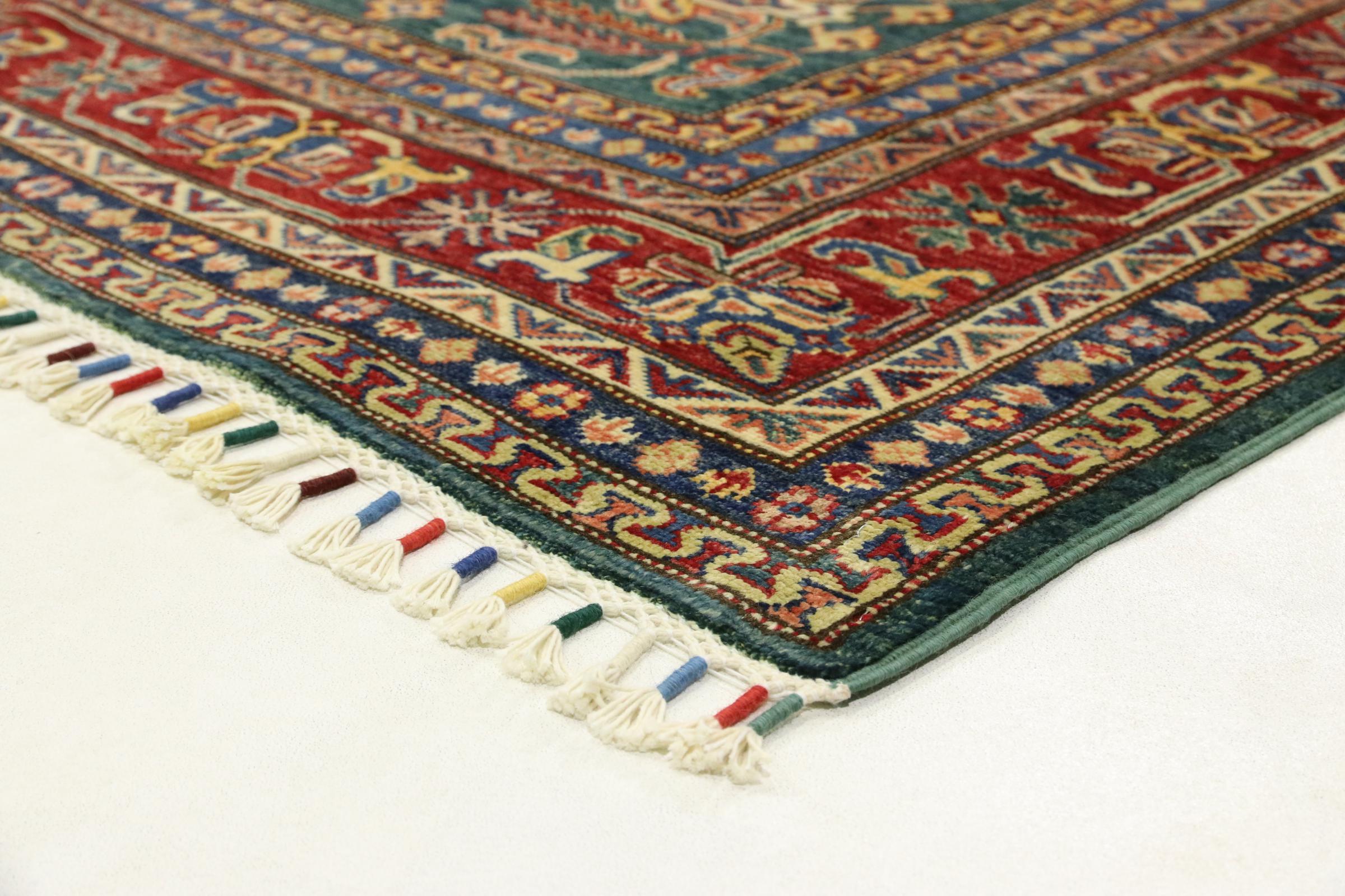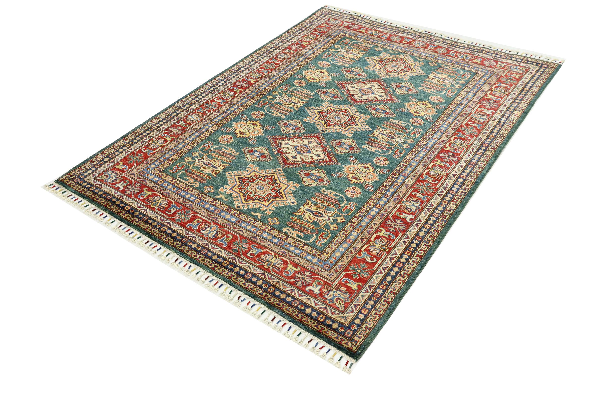 Kazak-vloerkleden zijn duurzame, levendige wollen vloerkleden die bekend staan om hun unieke geometrische patronen, uitgebalanceerde kleuren en uitzonderlijk vakmanschap. Ze zullen een boeiende en cultureel rijke sfeer in uw ruimte creëren. Oorspronkelijk afkomstig uit de Kaukasus en een van de oudste soorten tapijten, worden ze nu voornamelijk gemaakt door Kazachen in Afghanistan en Pakistan. Een antiek Kazachs tapijt kan zeer waardevol zijn voor verzamelaars.