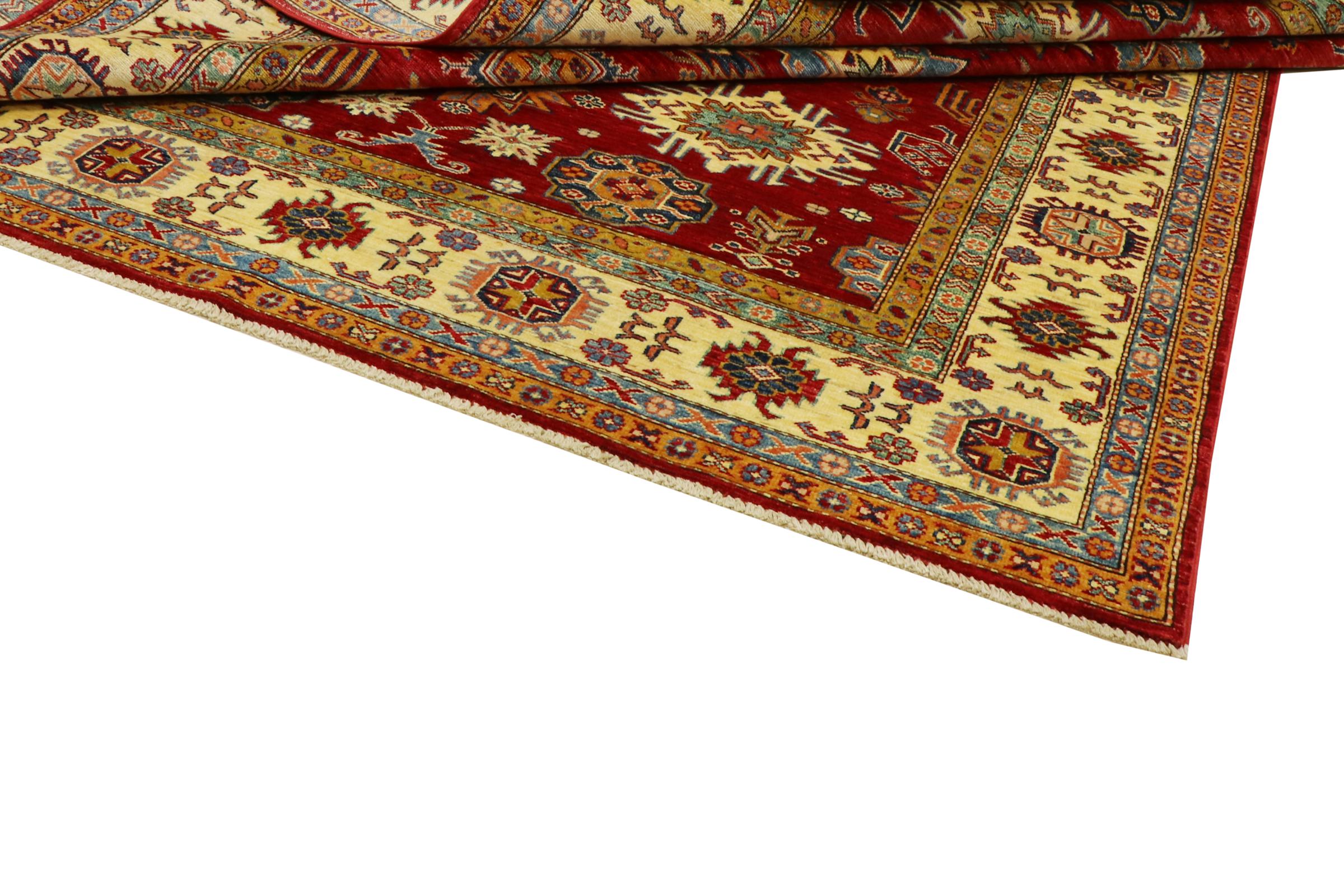 Kazak-vloerkleden zijn duurzame, levendige wollen vloerkleden die bekend staan om hun unieke geometrische patronen, uitgebalanceerde kleuren en uitzonderlijk vakmanschap. Ze zullen een boeiende en cultureel rijke sfeer in uw ruimte creëren. Oorspronkelijk afkomstig uit de Kaukasus en een van de oudste soorten tapijten, worden ze nu voornamelijk gemaakt door Kazachen in Afghanistan en Pakistan. Een antiek Kazachs tapijt kan zeer waardevol zijn voor verzamelaars.