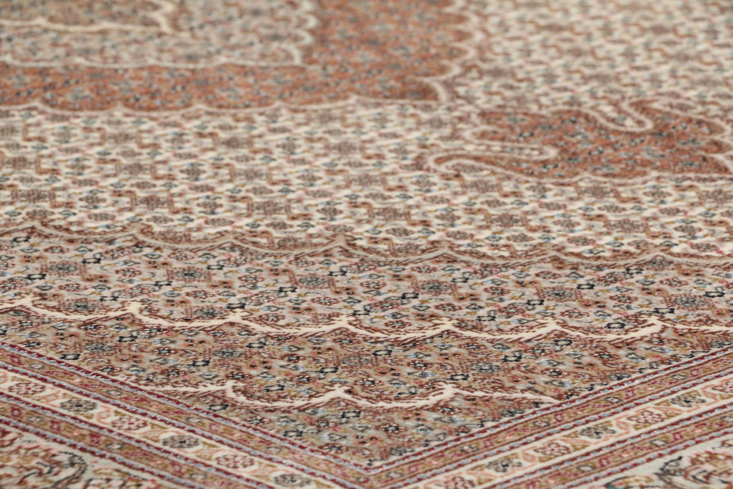 Dit tapijt uit Tabriz wordt gepresenteerd in traditionele klederdracht. Het Herati- of Mahi-patroon is een van de meest klassieke ontwerpen. Als je van traditioneel design houdt, zal je dit tapijt nooit willen missen.