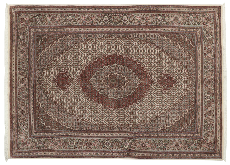 Tapijt ID: 309401009138219 Grootte: 209x149 cm Dikte: ap. 7 mm Knoopdichtheid: 440 000 - 490 000 / m² Verwerking: Handgeknoopte Pool: Wol met zijde Schering: Katoen Oorsprong: Perzië / Iran Leeftijd: Nieuw Gewicht: ap. 9 kg Ook wel bekend als Tabris, Tabriz, Tebris, Tebriz, Täbris Op voorraad: Uniek - Nog maar 1 op voorraad