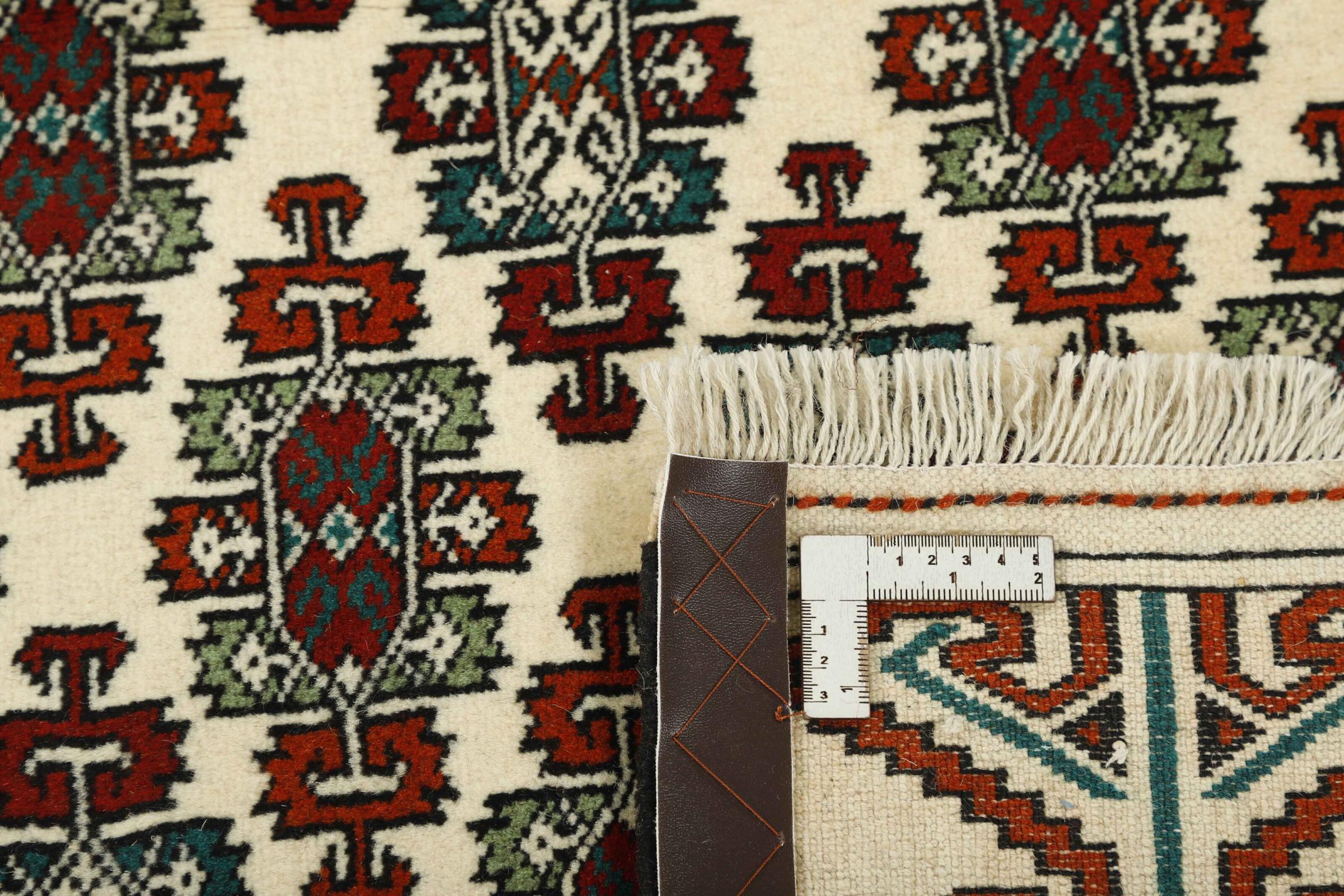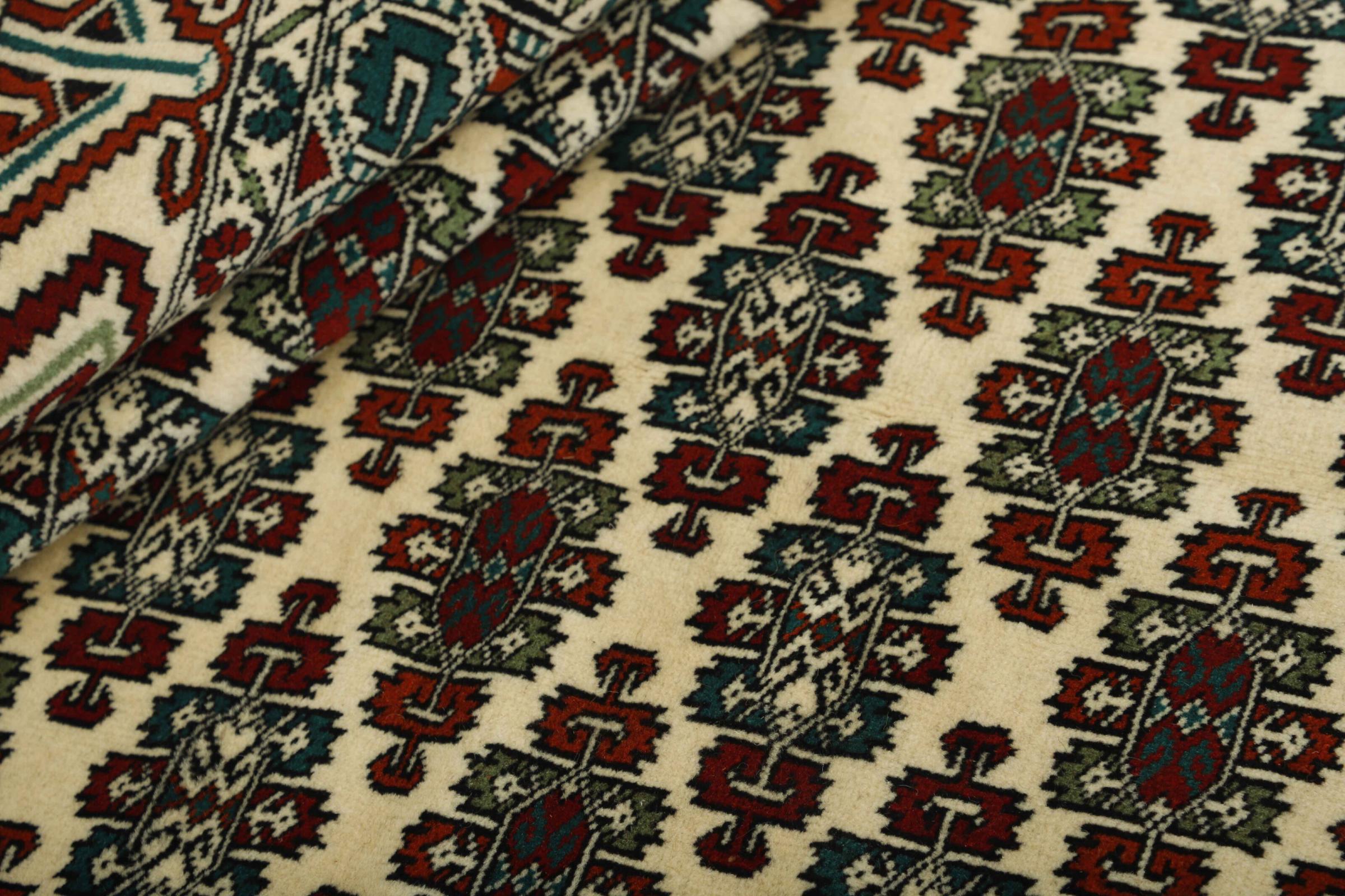 Dit Turkaman tapijt is traditioneel met de hand geknoopt en maakt indruk met zijn hoge productieniveau en hoogwaardige schapenwol met een hoog vetgehalte. De donkere, warme kleuren weerspiegelen de cultuur van de Turkmenen en voegen een vleugje Oriënt en gezelligheid toe aan je woonomgeving. Pakistaanse tapijten lijken vaak op dit type tapijt, maar komen vaak niet in de buurt van de kwaliteit.