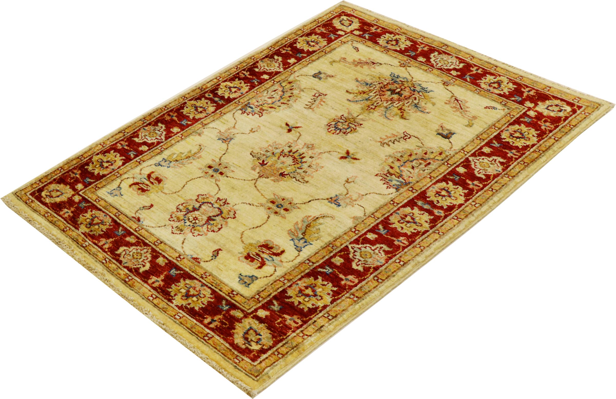 Tapijt ID: 303423005413343 Grootte: 119x80 cm Dikte: ap. 5 mm Knoopdichtheid: 72 000 - 90 000 / m² Verwerking: Handgeknoopte Pool: Hand gesponnen wol Schering: Katoen Oorsprong: Afghanistan Leeftijd: Nieuw Gewicht: ap. 3 kg Op voorraad: Uniek - Nog maar 1 op voorraad