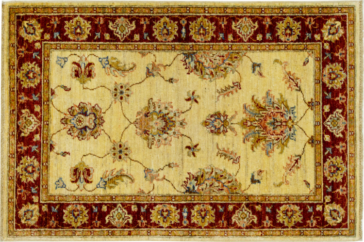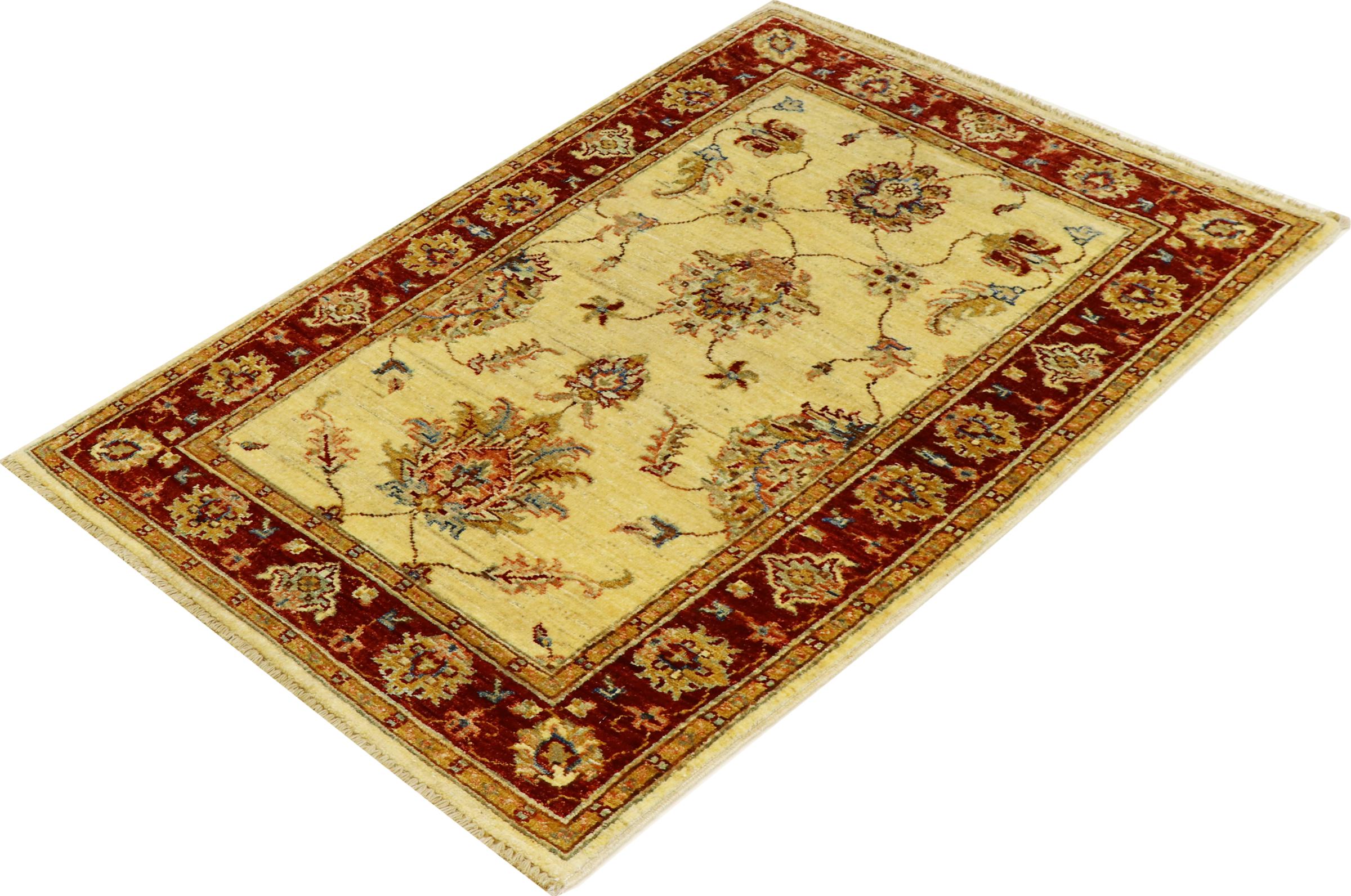 Tapijt ID: 303444005267456 Grootte: 119x81 cm Dikte: ap. 5 mm Knoopdichtheid: 72 000 - 90 000 / m² Verwerking: Handgeknoopte Pool: Hand gesponnen wol Schering: Katoen Oorsprong: Afghanistan Leeftijd: Nieuw Gewicht: ap. 3 kg Op voorraad: Uniek - Nog maar 1 op voorraad