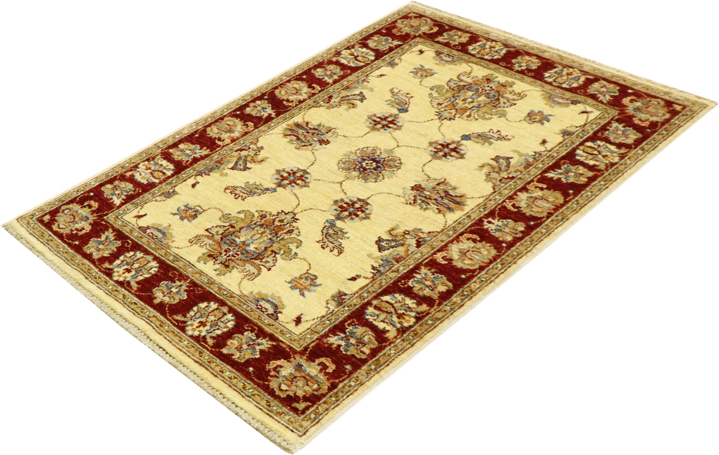 Tapijt ID: 303465003152448 Grootte: 121x77 cm Dikte: ap. 5 mm Knoopdichtheid: 72 000 - 90 000 / m² Verwerking: Handgeknoopte Pool: Hand gesponnen wol Schering: Katoen Oorsprong: Afghanistan Leeftijd: Nieuw Gewicht: ap. 3 kg Op voorraad: Uniek - Nog maar 1 op voorraad