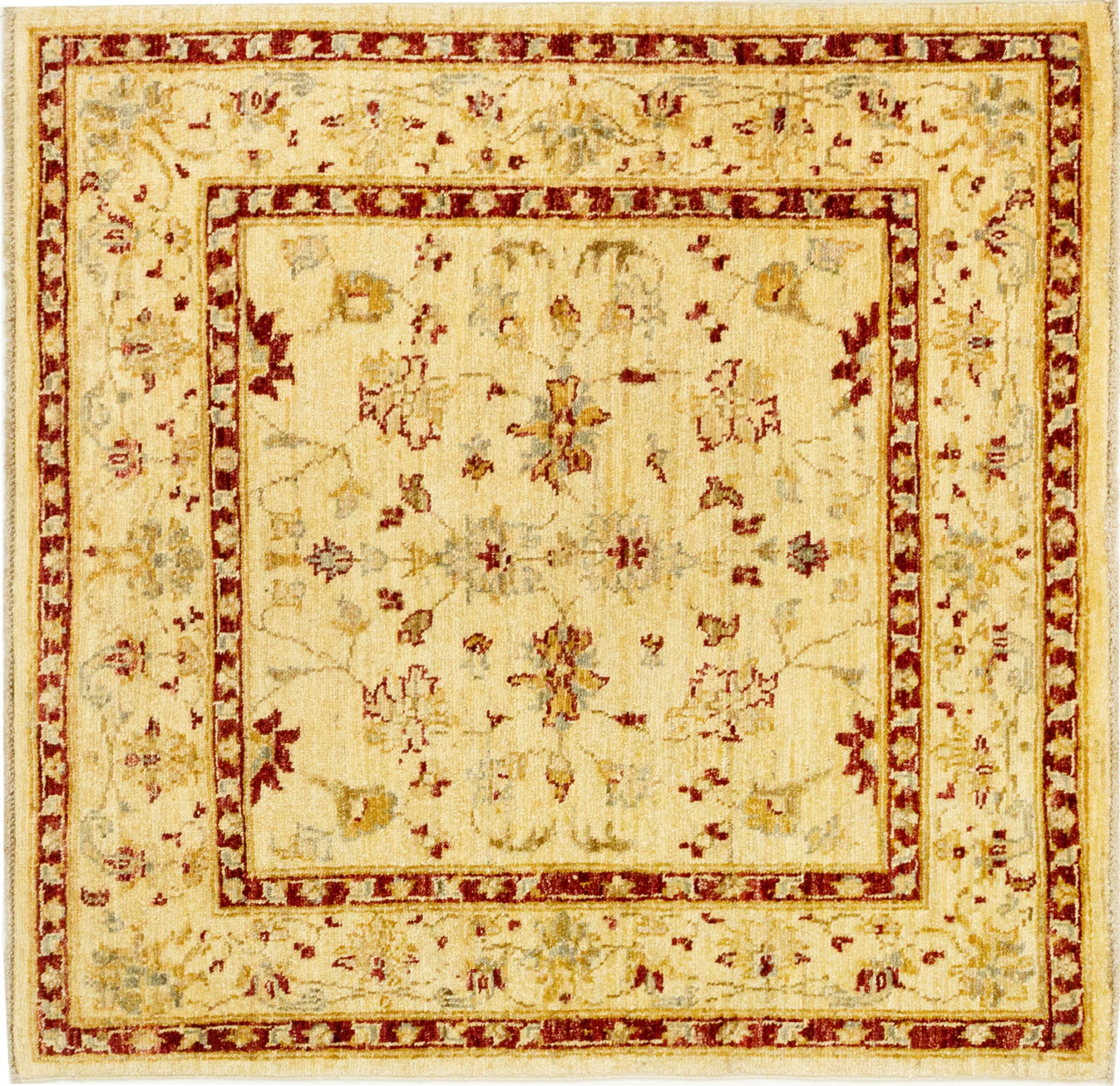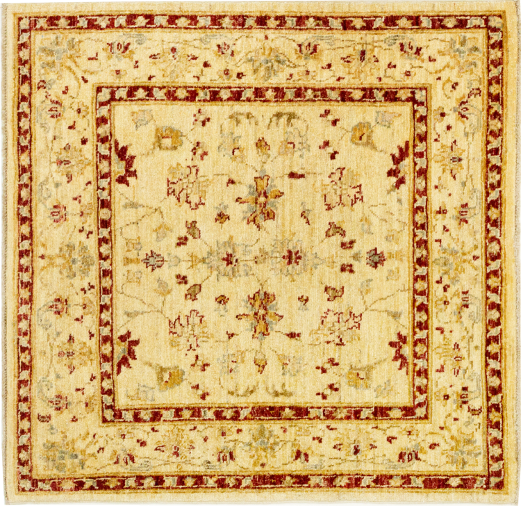 Tapijt ID: 303400003543387 Grootte: 96x96 cm Dikte: ap. 5 mm Knoopdichtheid: 128 000 - 160 000 / m² Verwerking: Handgeknoopte Pool: Hand gesponnen wol Schering: Katoen Oorsprong: Afghanistan Leeftijd: Nieuw Gewicht: ap. 3 kg Op voorraad: Uniek - Nog maar 1 op voorraad