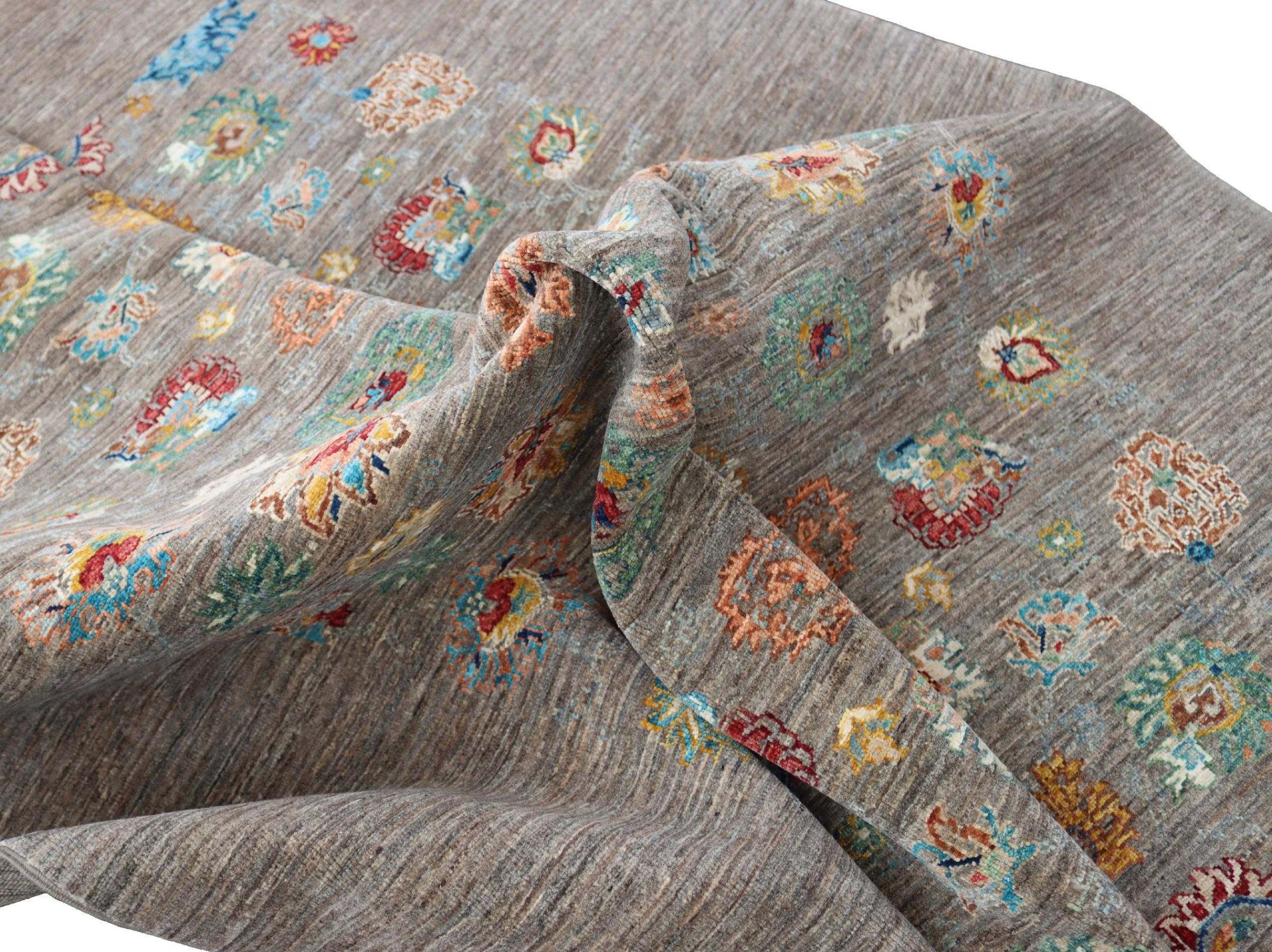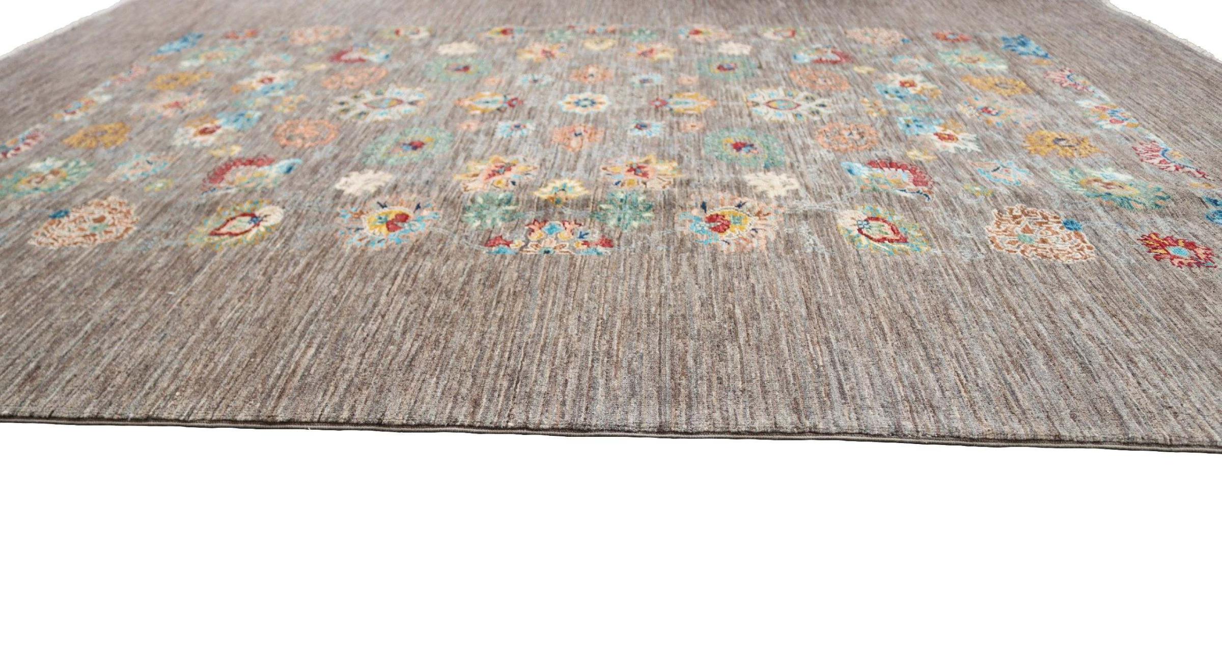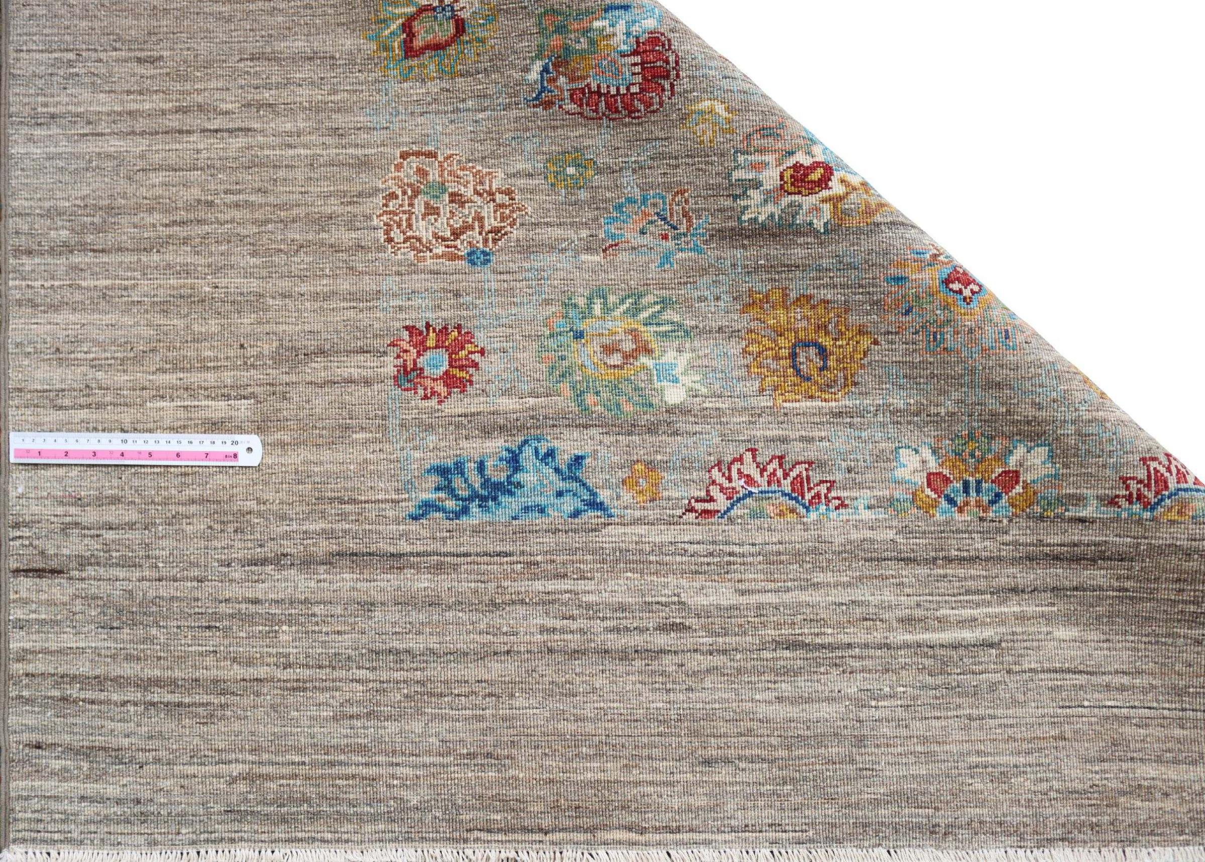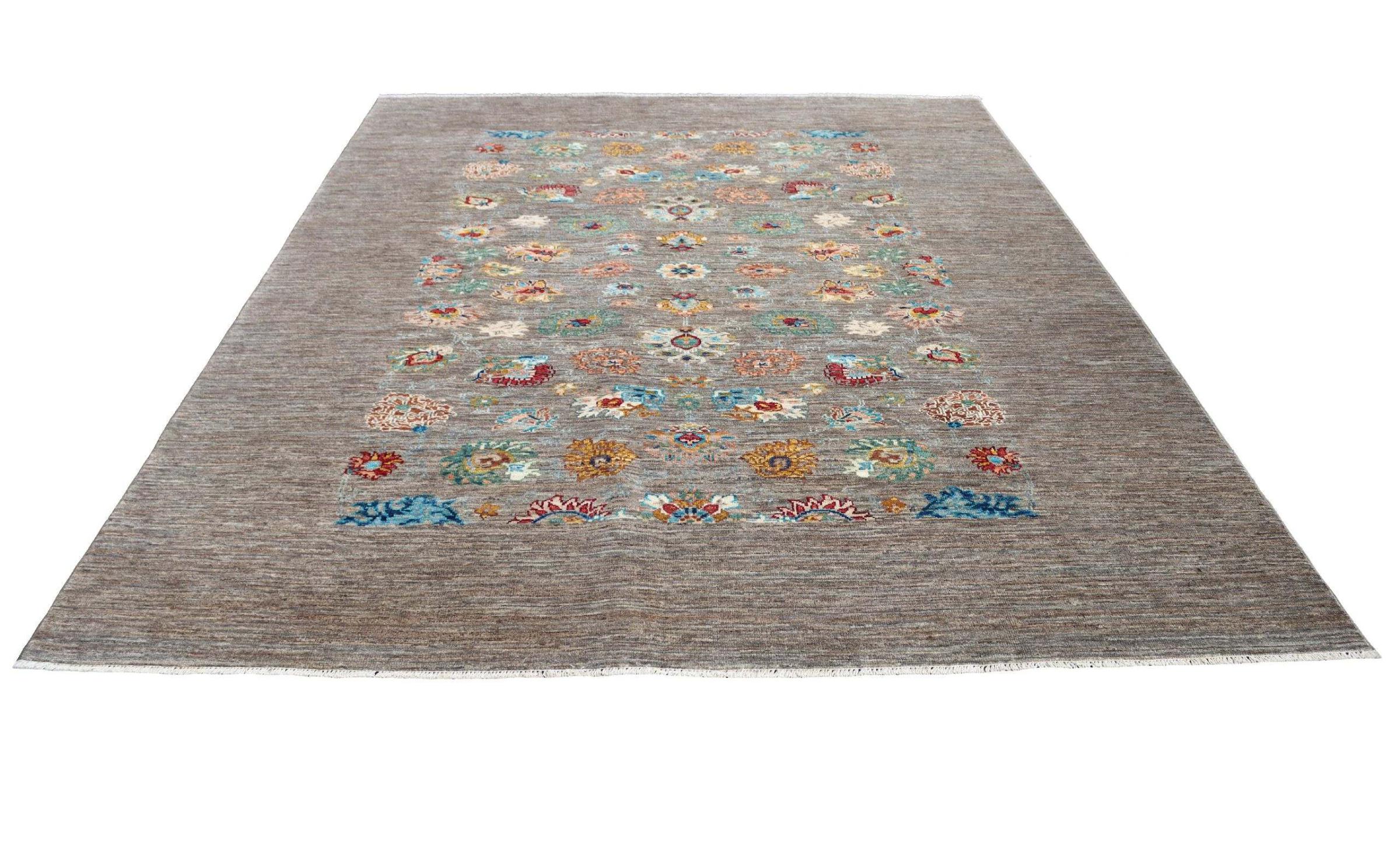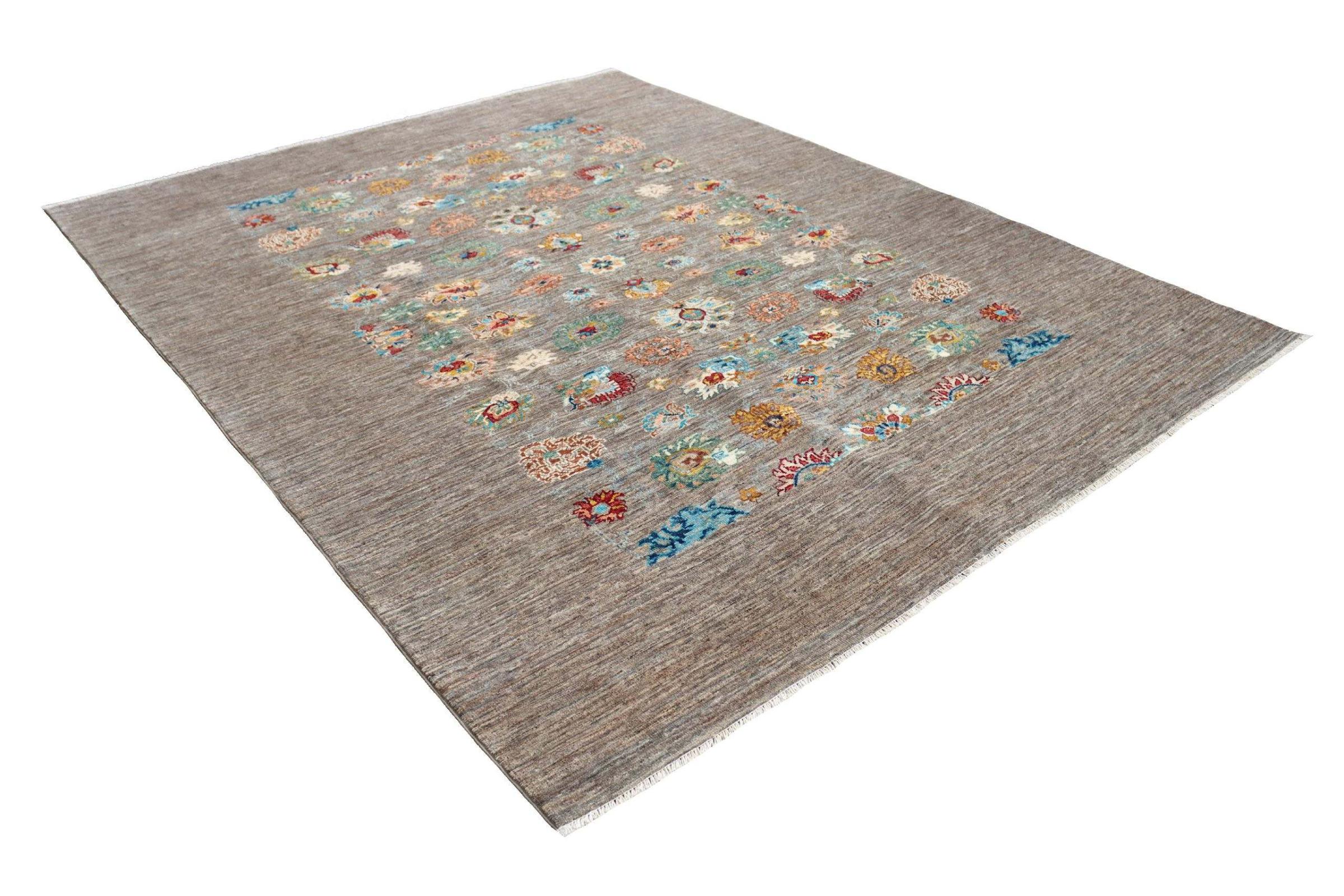 Tapijt ID: 300037001283139 Grootte: 217x171 cm Dikte: ap. 5 mm Knoopdichtheid: 128 000 - 160 000 / m² Verwerking: Handgeknoopte Pool: Hand gesponnen wol Schering: Katoen Oorsprong: Pakistan Leeftijd: Nieuw Gewicht: ap. 11 kg Op voorraad: Uniek - Nog maar 1 op voorraad