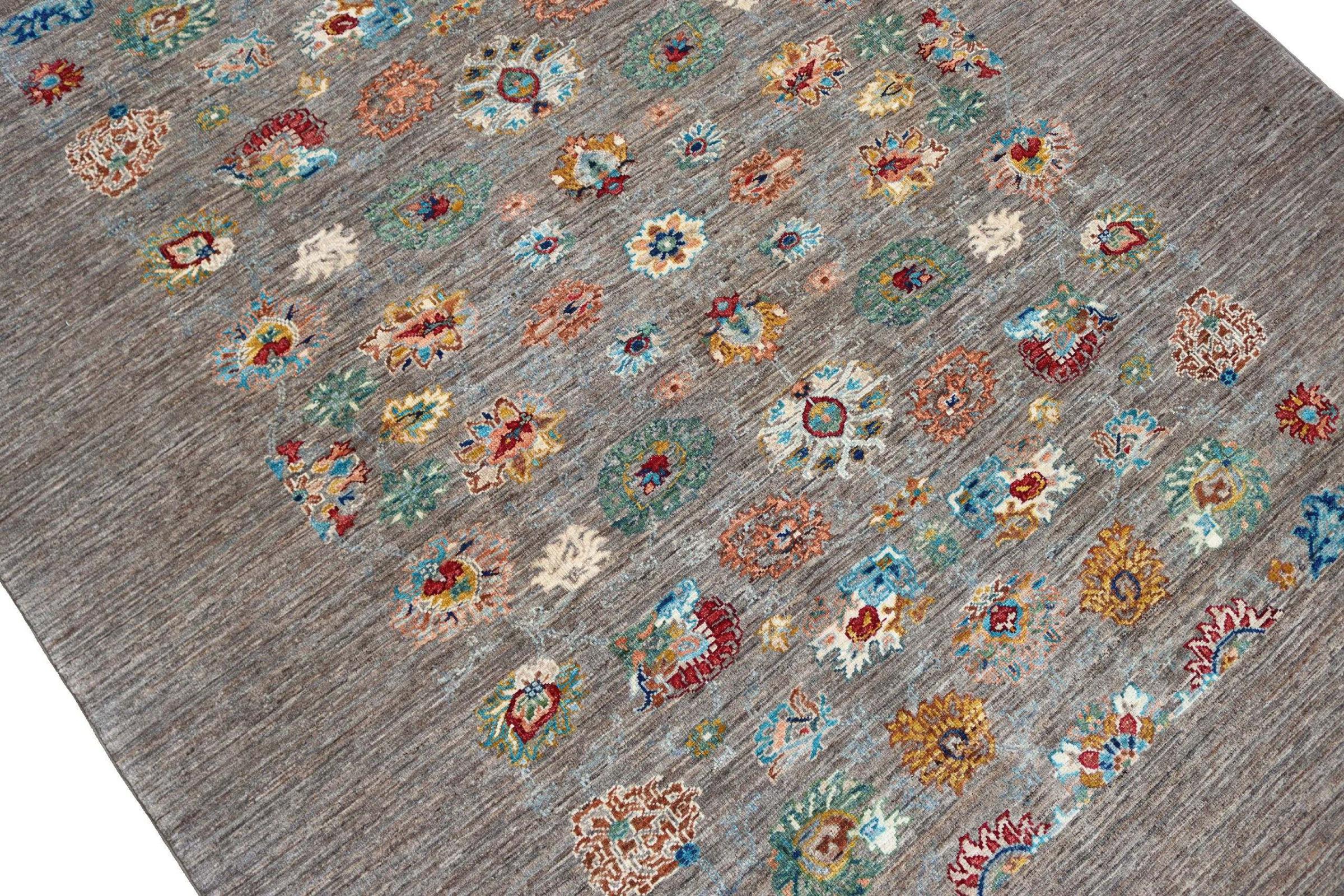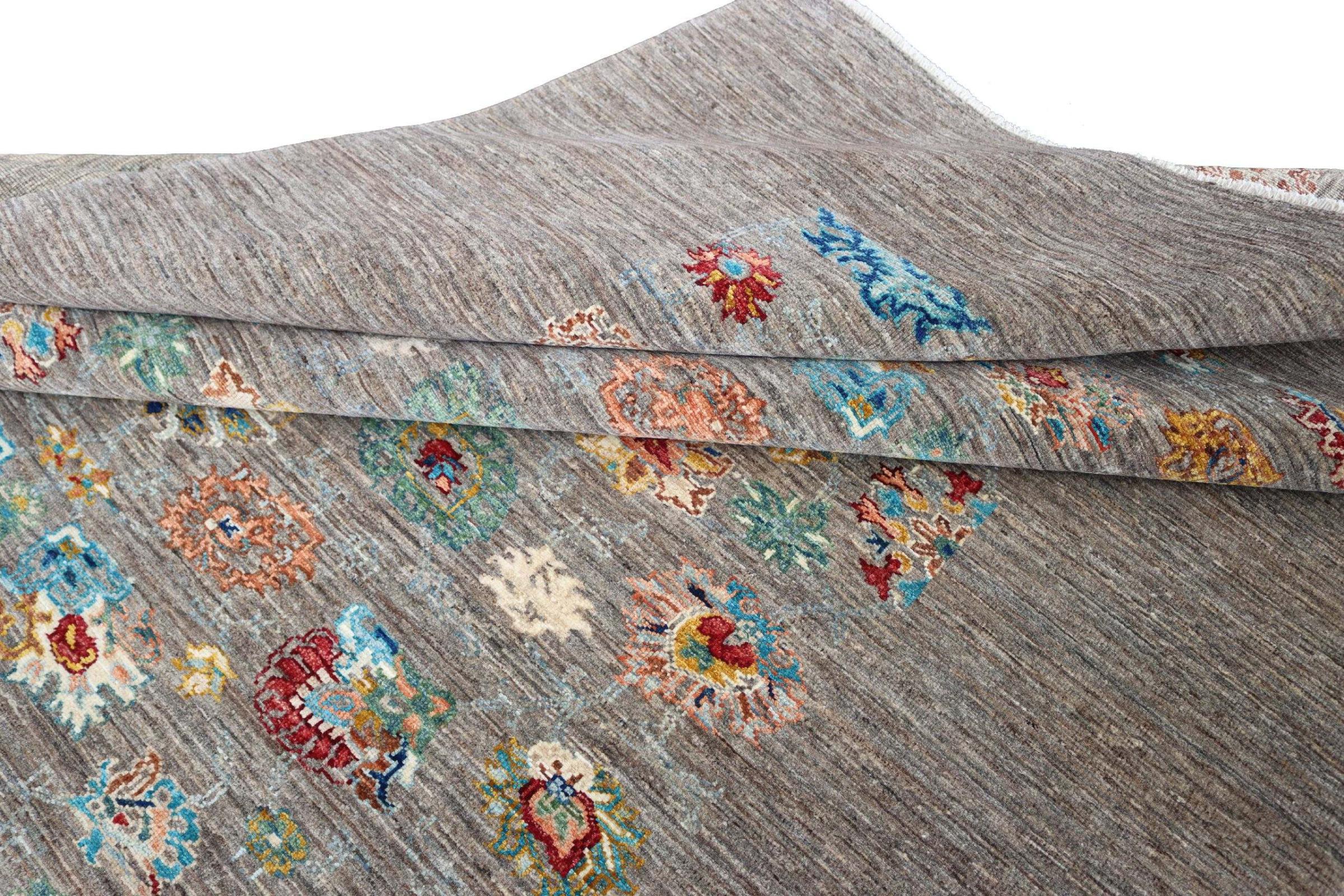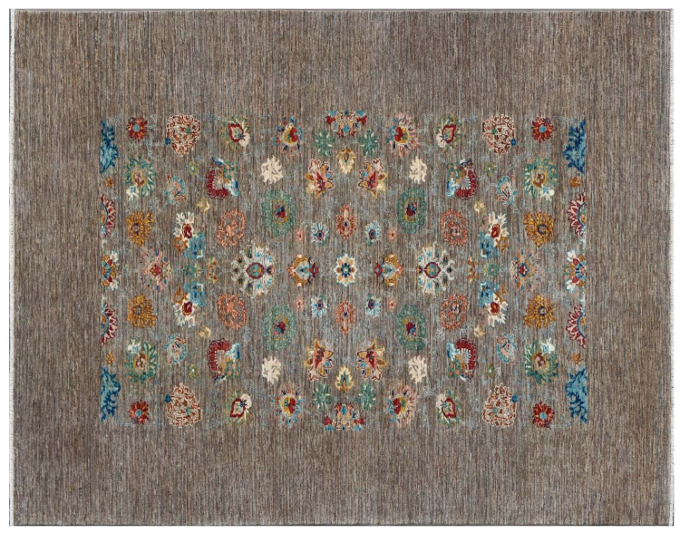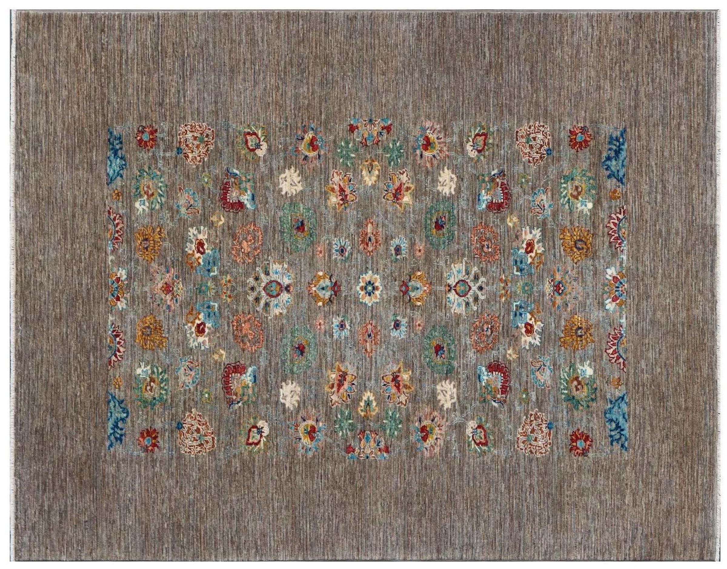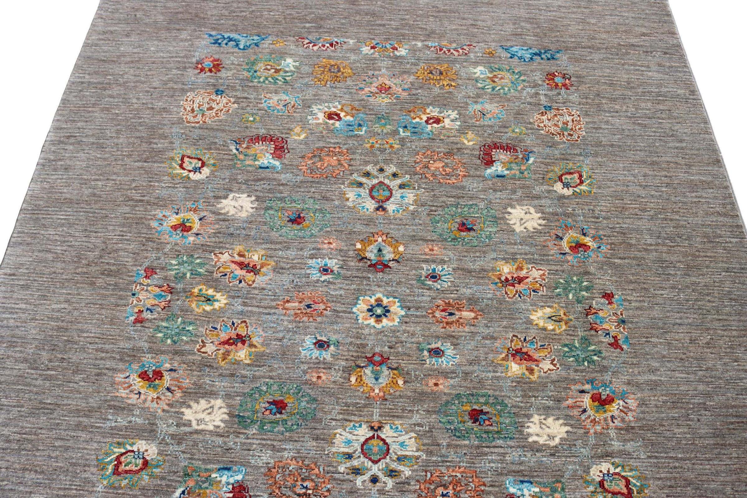 Tapijt ID: 300037001283139 Grootte: 217x171 cm Dikte: ap. 5 mm Knoopdichtheid: 128 000 - 160 000 / m² Verwerking: Handgeknoopte Pool: Hand gesponnen wol Schering: Katoen Oorsprong: Pakistan Leeftijd: Nieuw Gewicht: ap. 11 kg Op voorraad: Uniek - Nog maar 1 op voorraad