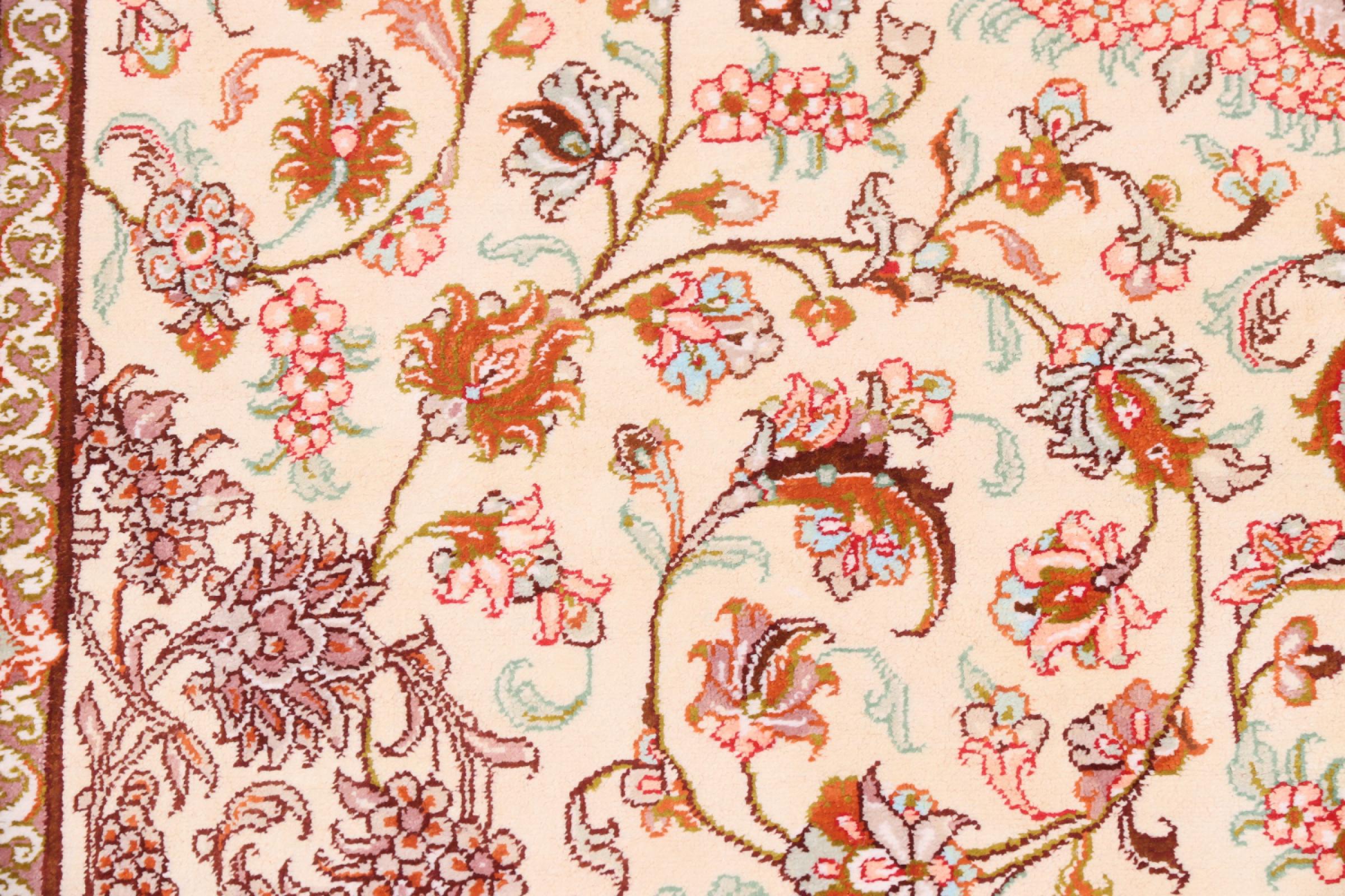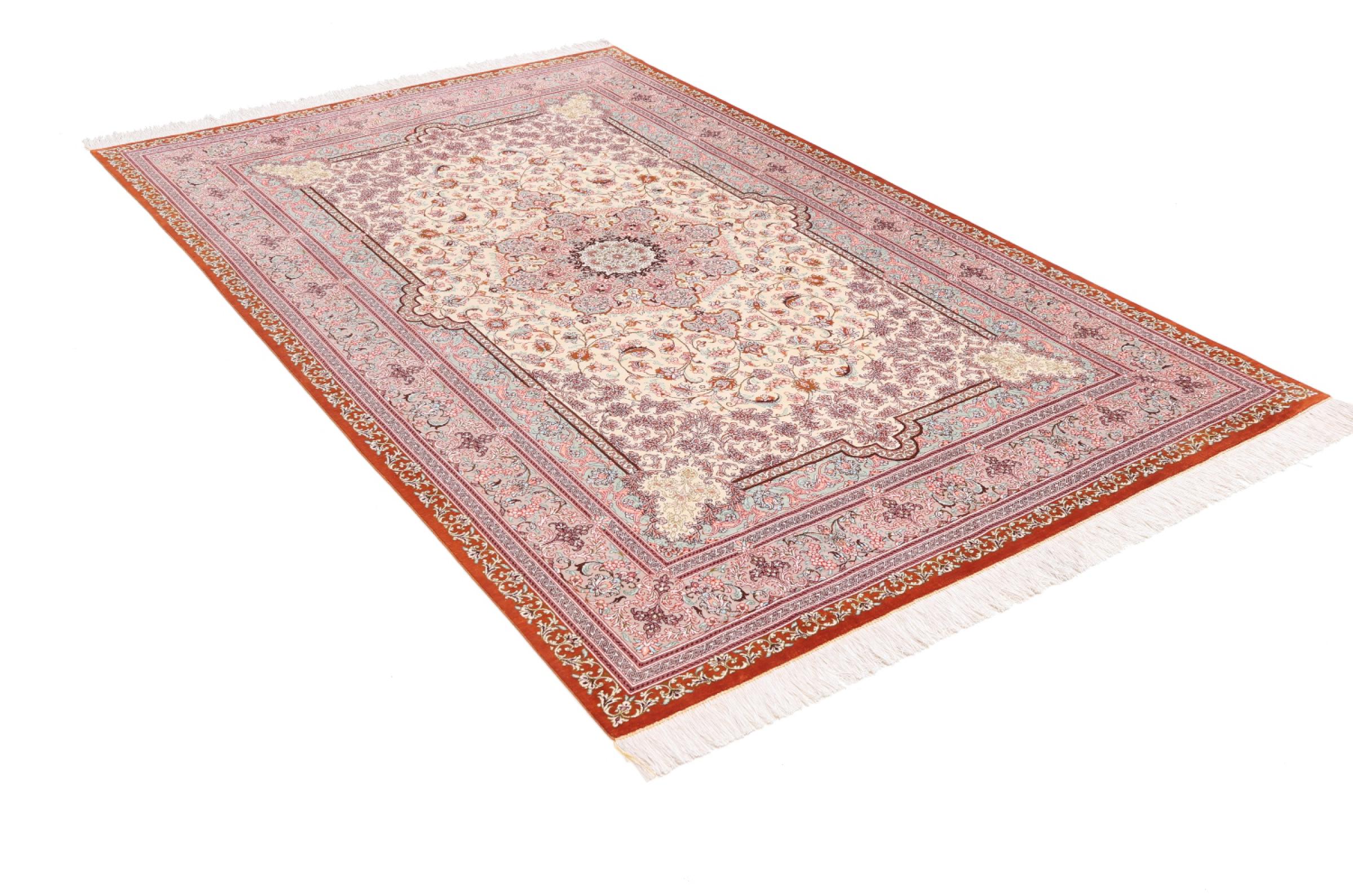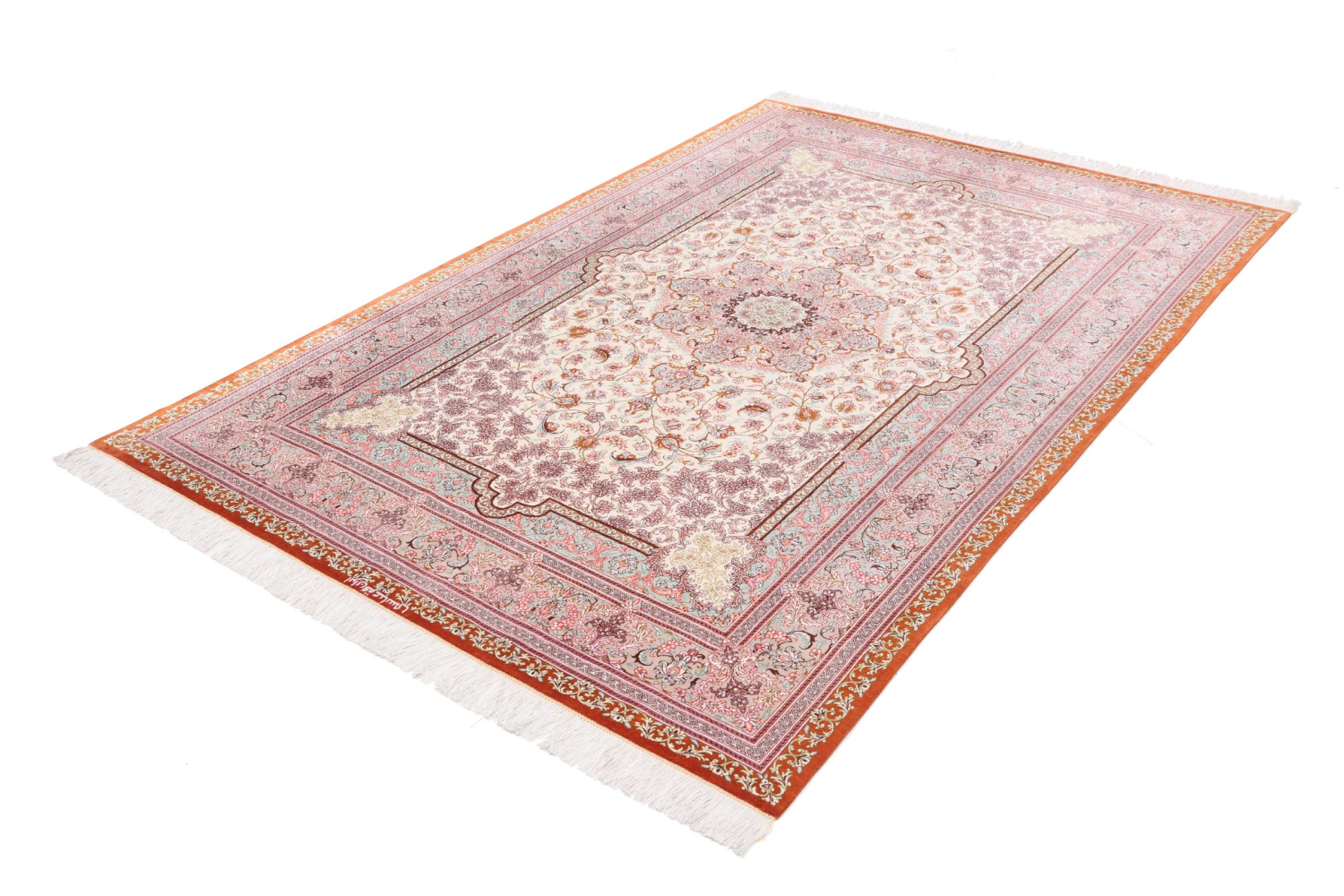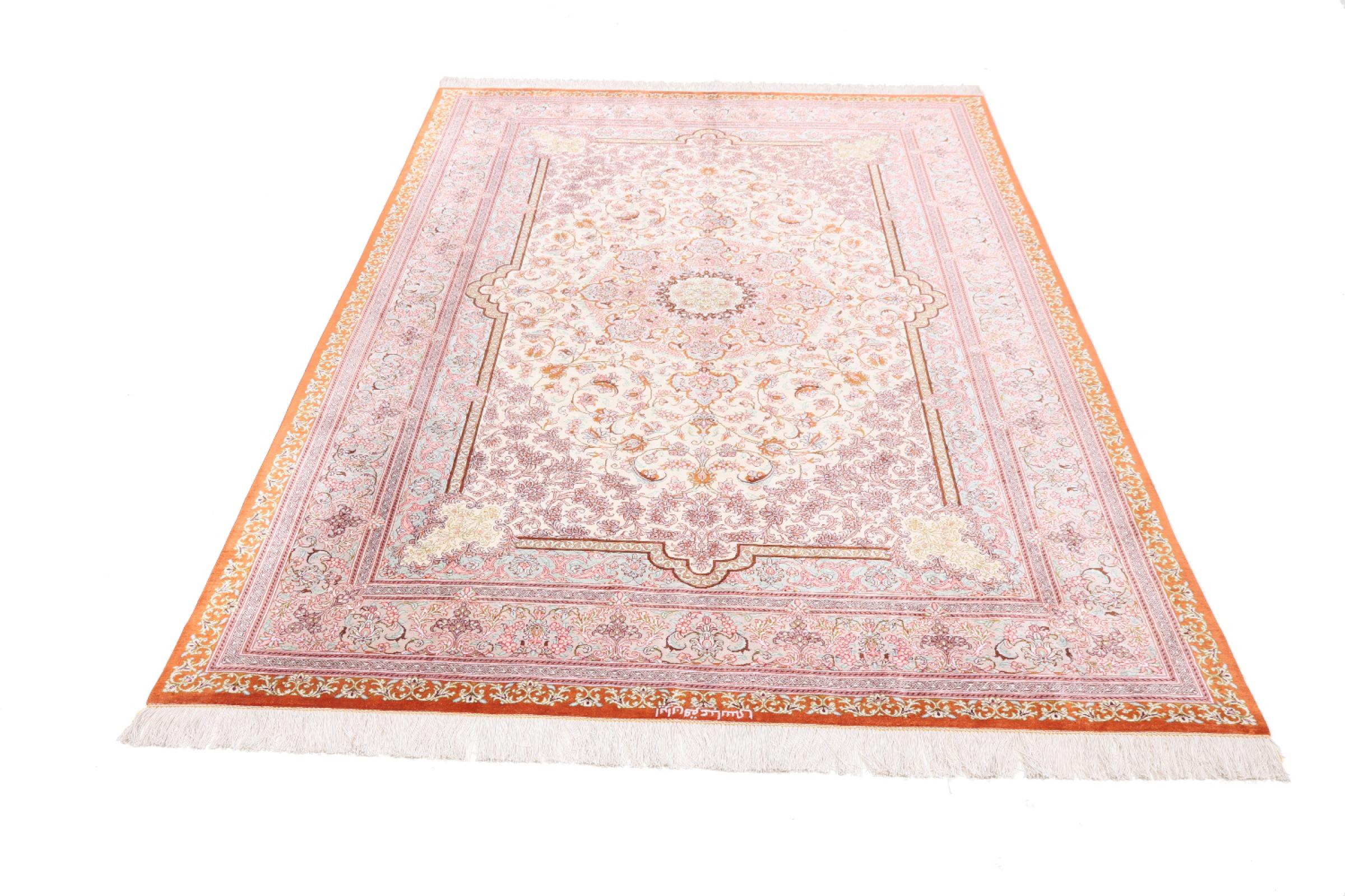 Tapijt ID: 35036005504426 Grootte: 239x156 cm Dikte: ap. 3 mm Knoopdichtheid: 1 000 000 / m² Verwerking: Handgeknoopte Pool: Zijde Schering: Zijde Oorsprong: Perzië / Iran Leeftijd: Nieuw Gewicht: ap. 7 kg Op voorraad: Uniek - Nog maar 1 op voorraad