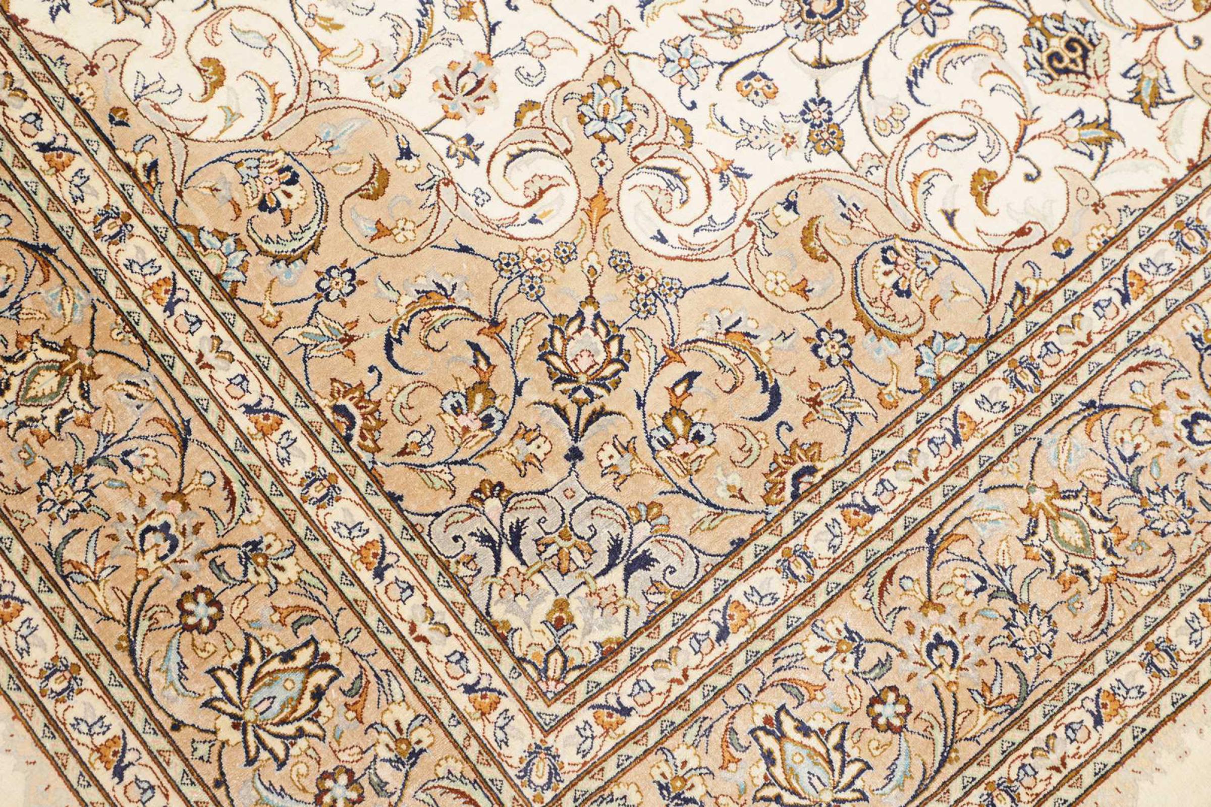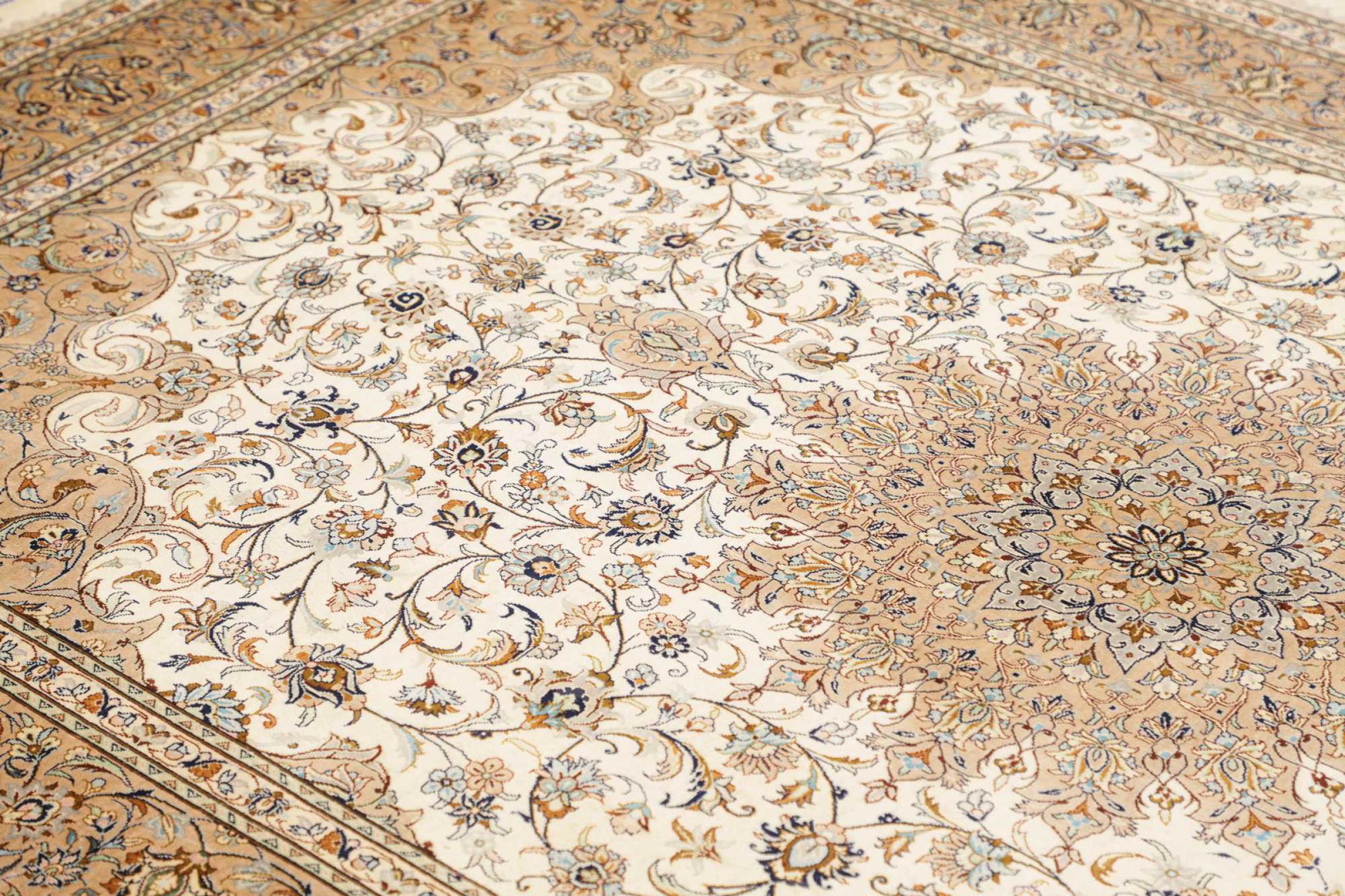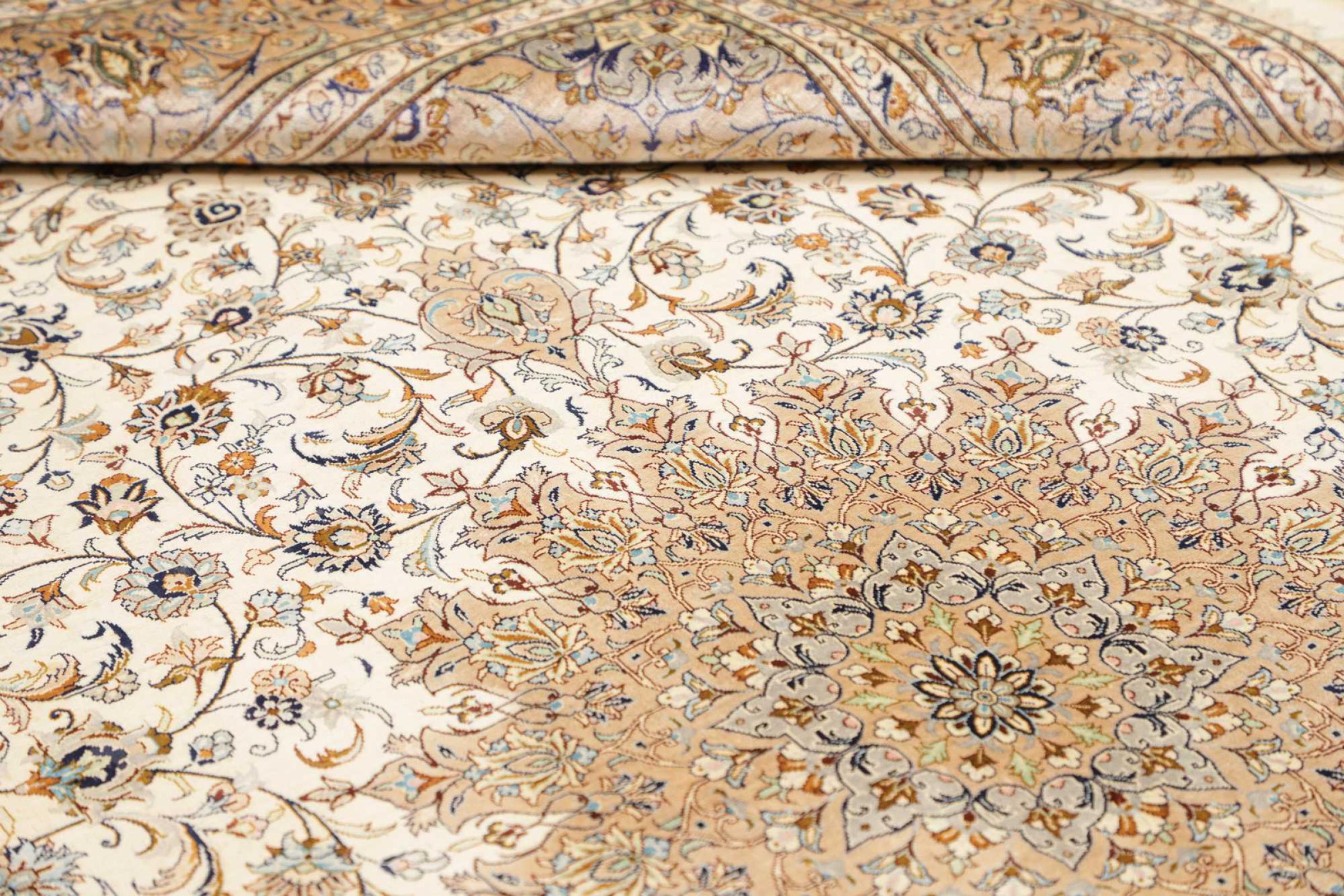 Dit Ghom zijden vloerkleed is pure luxe. De ornamenten en de pure natuurlijke zijde spreken boekdelen. Hier vind je de Oriënt in zijn volle perfectie voor bij jou thuis. Een zijden tapijt van Ghom maakt zelfs indruk op verzamelaars van Perzische tapijtkunst. Afhankelijk van de lichtinval laat de zijde kleuren schitteren in de meest uiteenlopende facetten. Dit maakt dit Perzische tapijt tot een onvergetelijk hoogtepunt en laat je kamer stralen in een gezellige en zeer hoogwaardige sfeer.