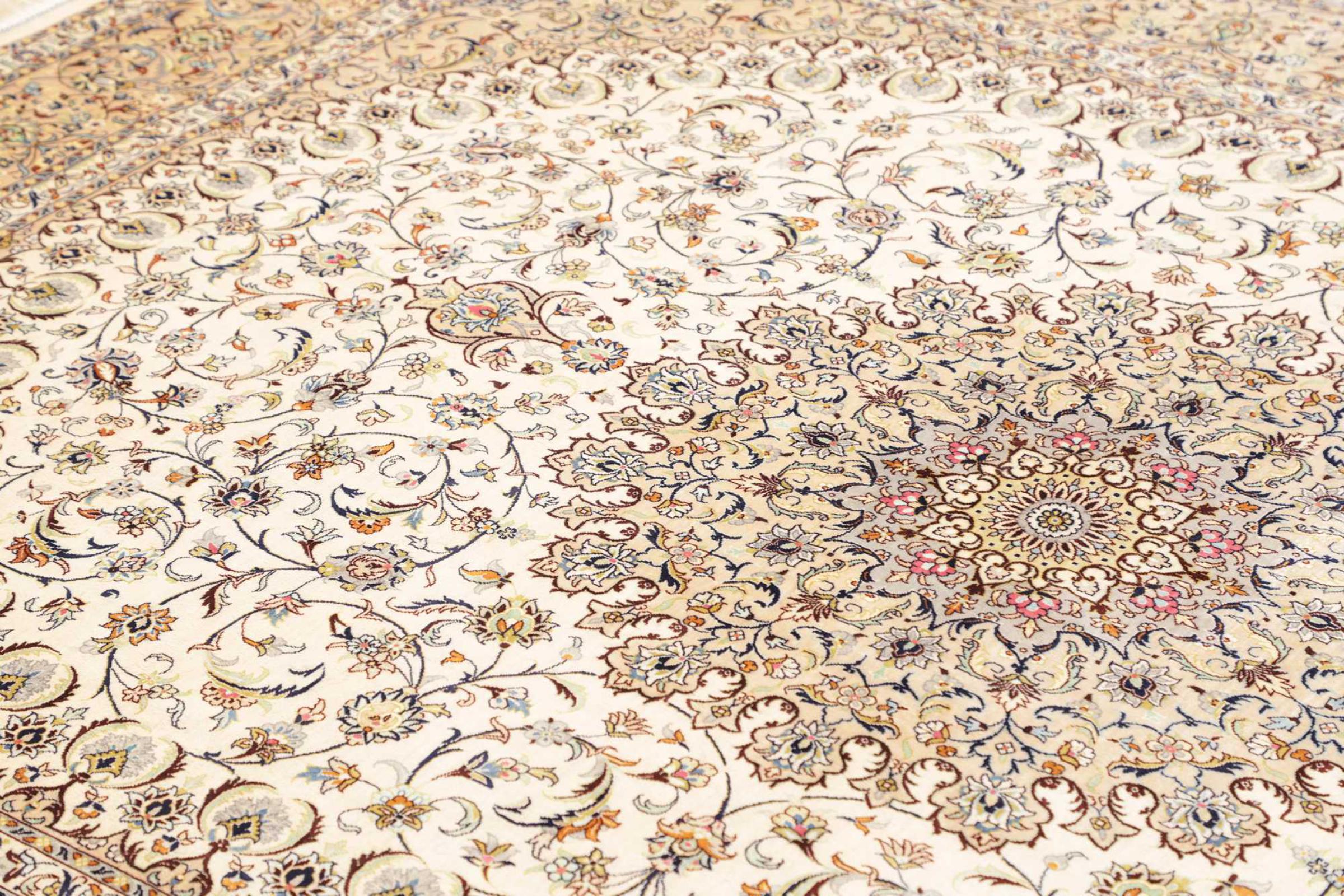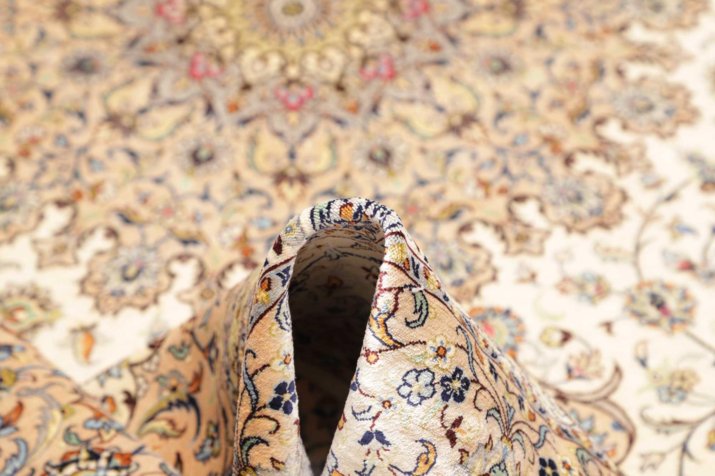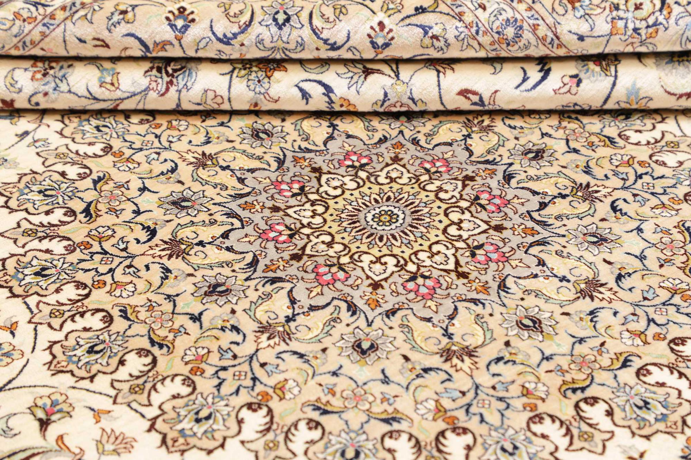Dit Ghom zijden vloerkleed is pure luxe. De ornamenten en de pure natuurlijke zijde spreken boekdelen. Hier vind je de Oriënt in zijn volle perfectie voor bij jou thuis. Een zijden tapijt van Ghom maakt zelfs indruk op verzamelaars van Perzische tapijtkunst. Afhankelijk van de lichtinval laat de zijde kleuren schitteren in de meest uiteenlopende facetten. Dit maakt dit Perzische tapijt tot een onvergetelijk hoogtepunt en laat je kamer stralen in een gezellige en zeer hoogwaardige sfeer.