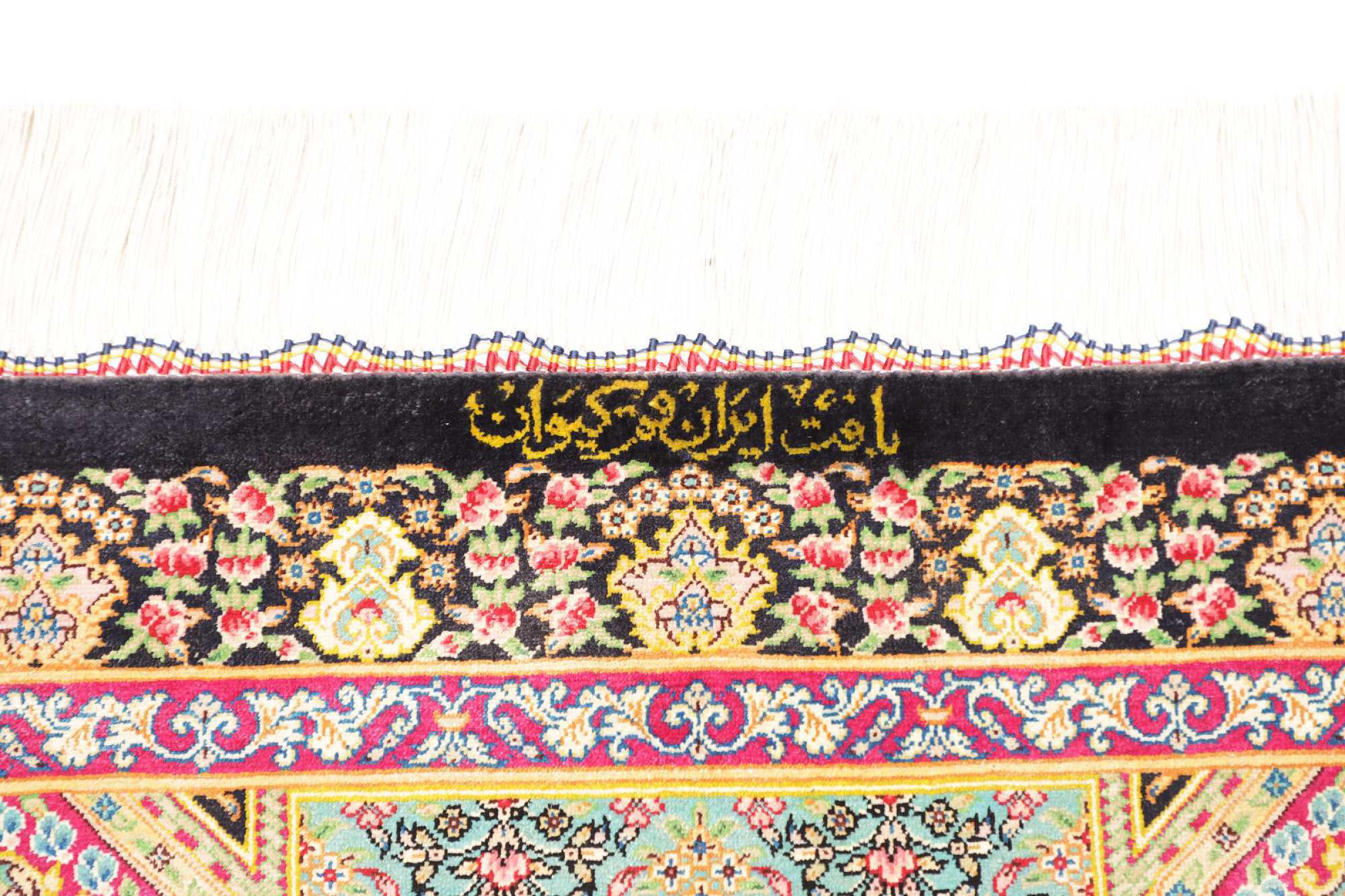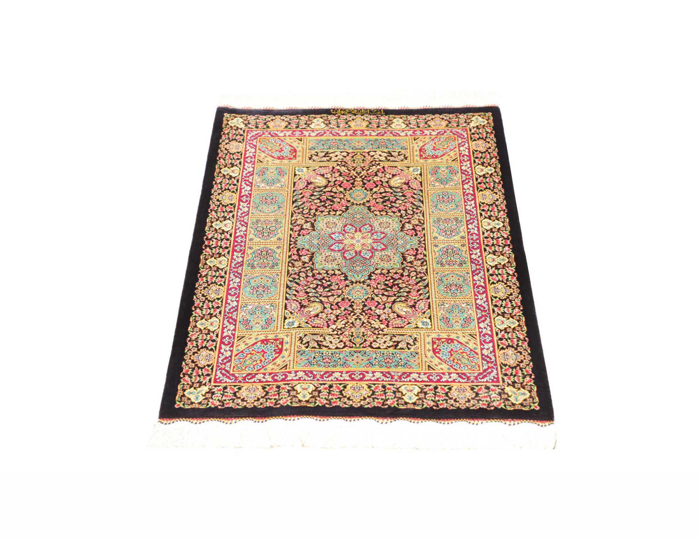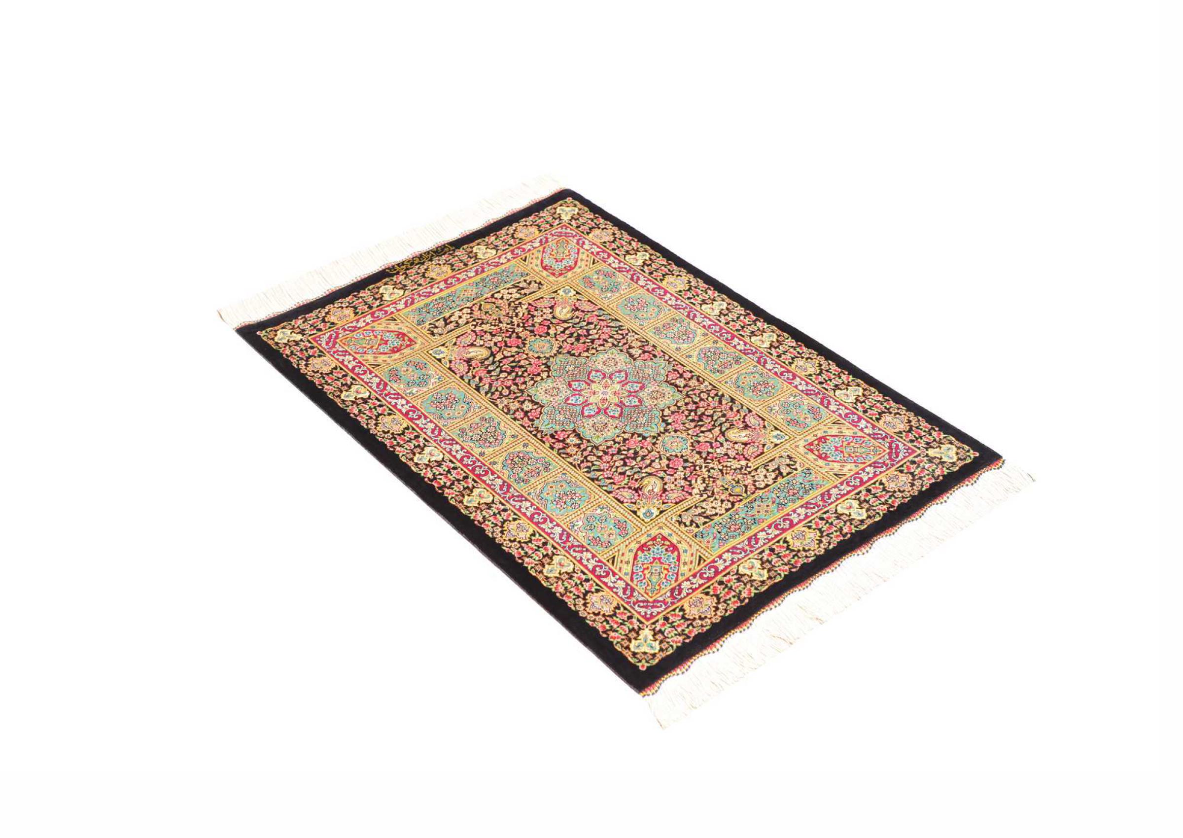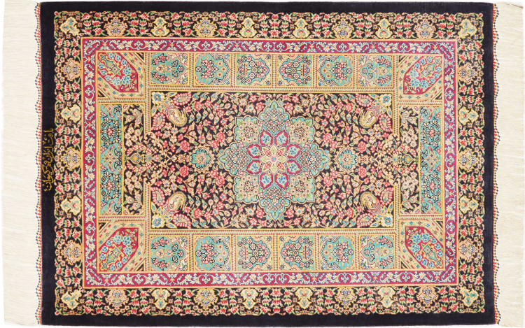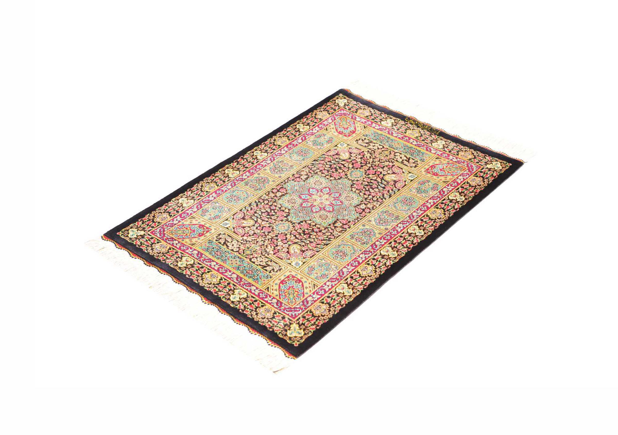 Tapijt ID: 247160007748865 Grootte: 86x60 cm Dikte: ap. 3 mm Knoopdichtheid: 1 000 000 / m² Verwerking: Handgeknoopte Pool: Zijde Schering: Zijde Oorsprong: Perzië / Iran Leeftijd: Nieuw Gewicht: ap. 1 kg Op voorraad: Uniek - Nog maar 1 op voorraad