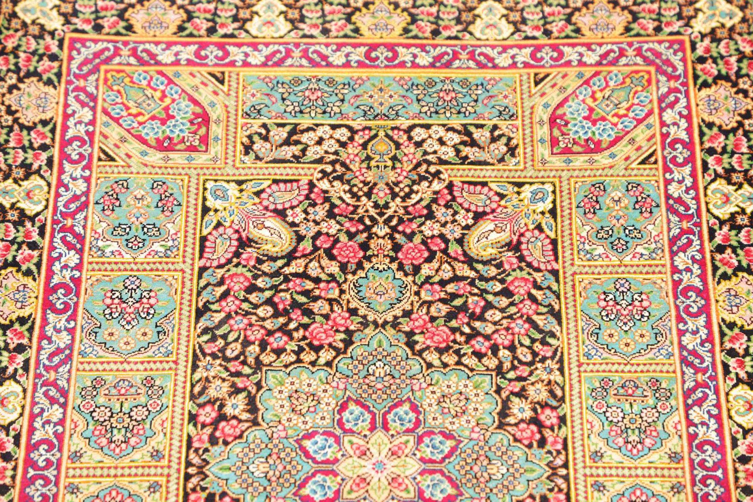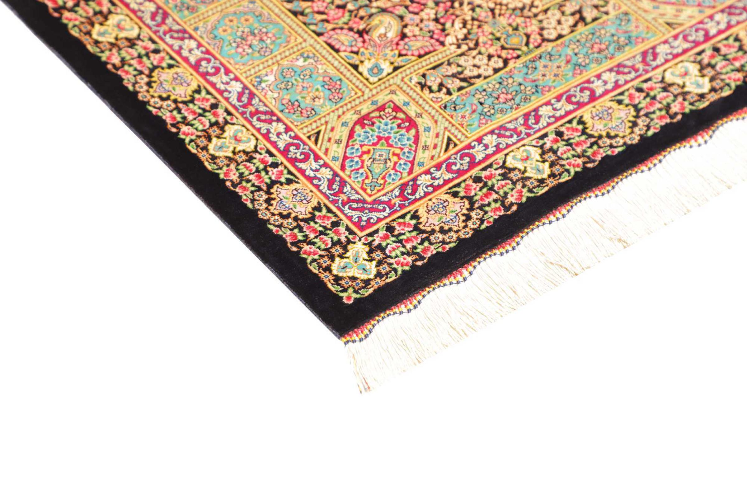 Dit Ghom zijden vloerkleed is pure luxe. De ornamenten en de pure natuurlijke zijde spreken boekdelen. Hier vind je de Oriënt in zijn volle perfectie voor bij jou thuis. Een zijden tapijt van Ghom maakt zelfs indruk op verzamelaars van Perzische tapijtkunst. Afhankelijk van de lichtinval laat de zijde kleuren schitteren in de meest uiteenlopende facetten. Dit maakt dit Perzische tapijt tot een onvergetelijk hoogtepunt en laat je kamer stralen in een gezellige en zeer hoogwaardige sfeer.