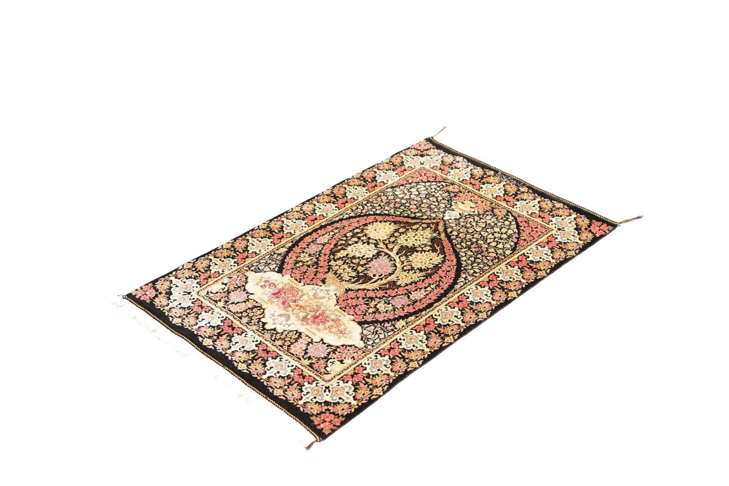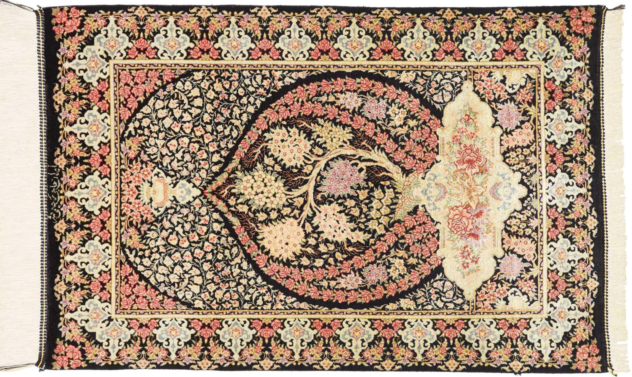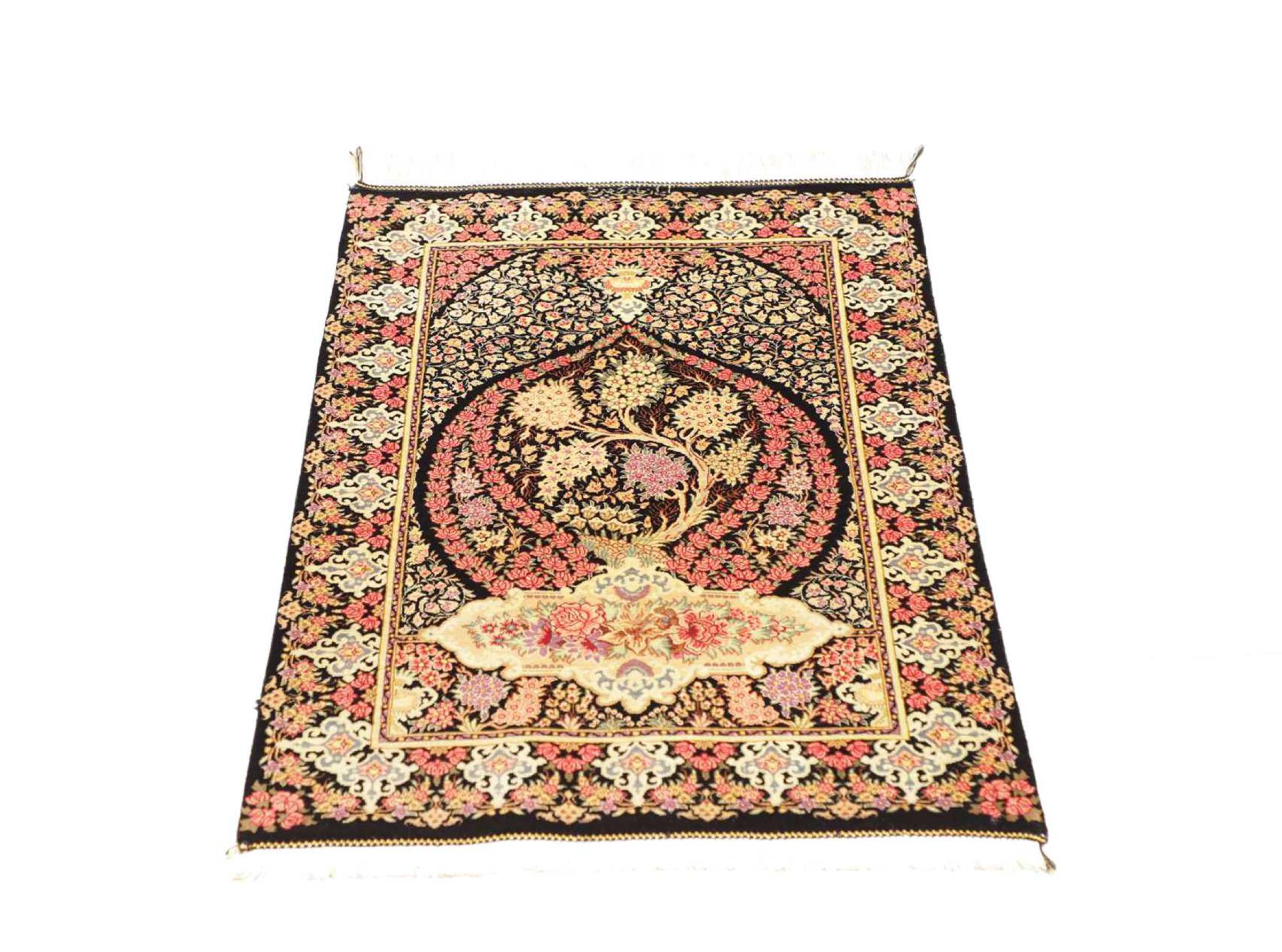 Tapijt ID: 247051004063043 Grootte: 87x56 cm Dikte: ap. 3 mm Knoopdichtheid: 1 000 000 / m² Verwerking: Handgeknoopte Pool: Zijde Schering: Zijde Oorsprong: Perzië / Iran Leeftijd: Nieuw Gewicht: ap. 1 kg Op voorraad: Uniek - Nog maar 1 op voorraad