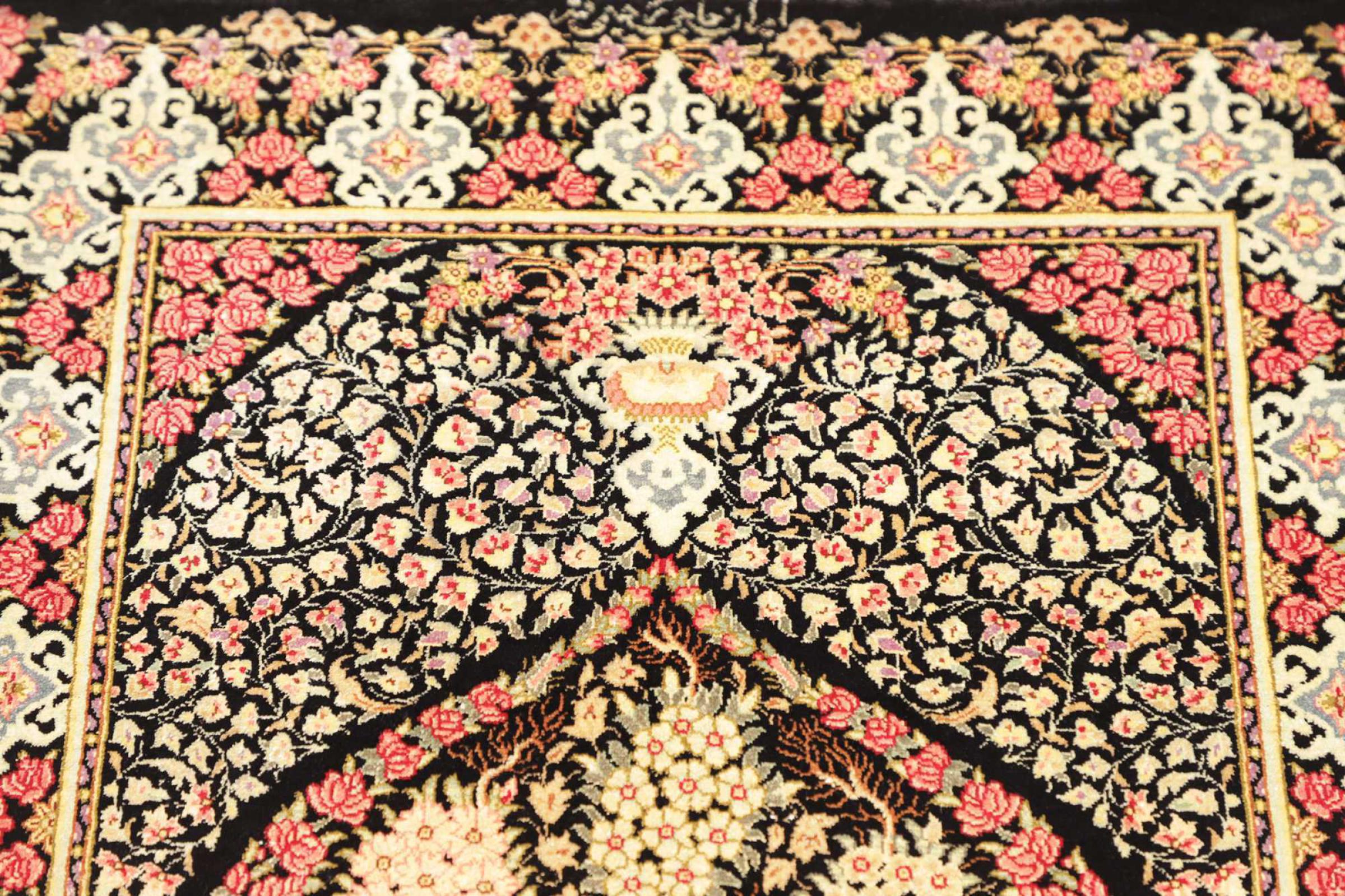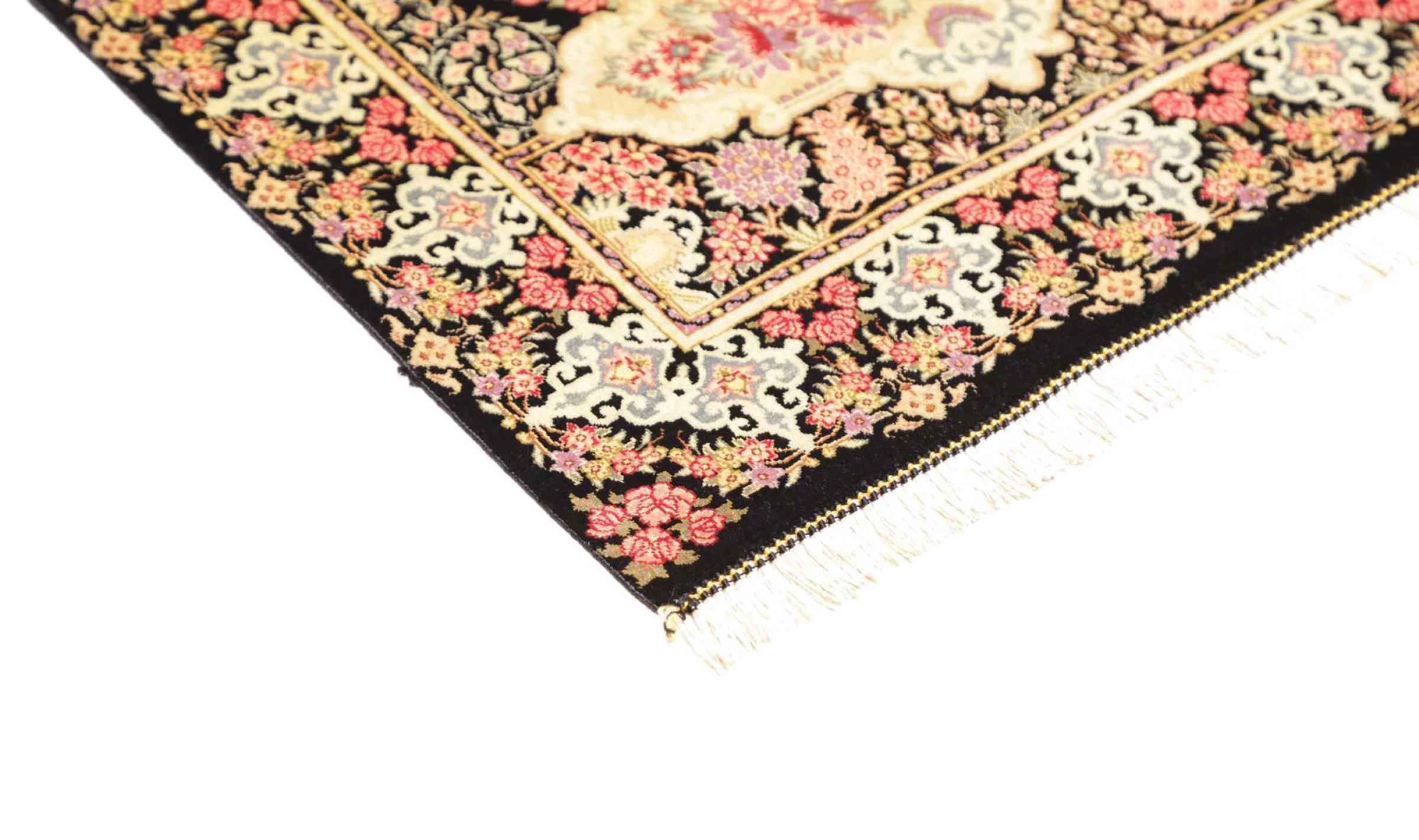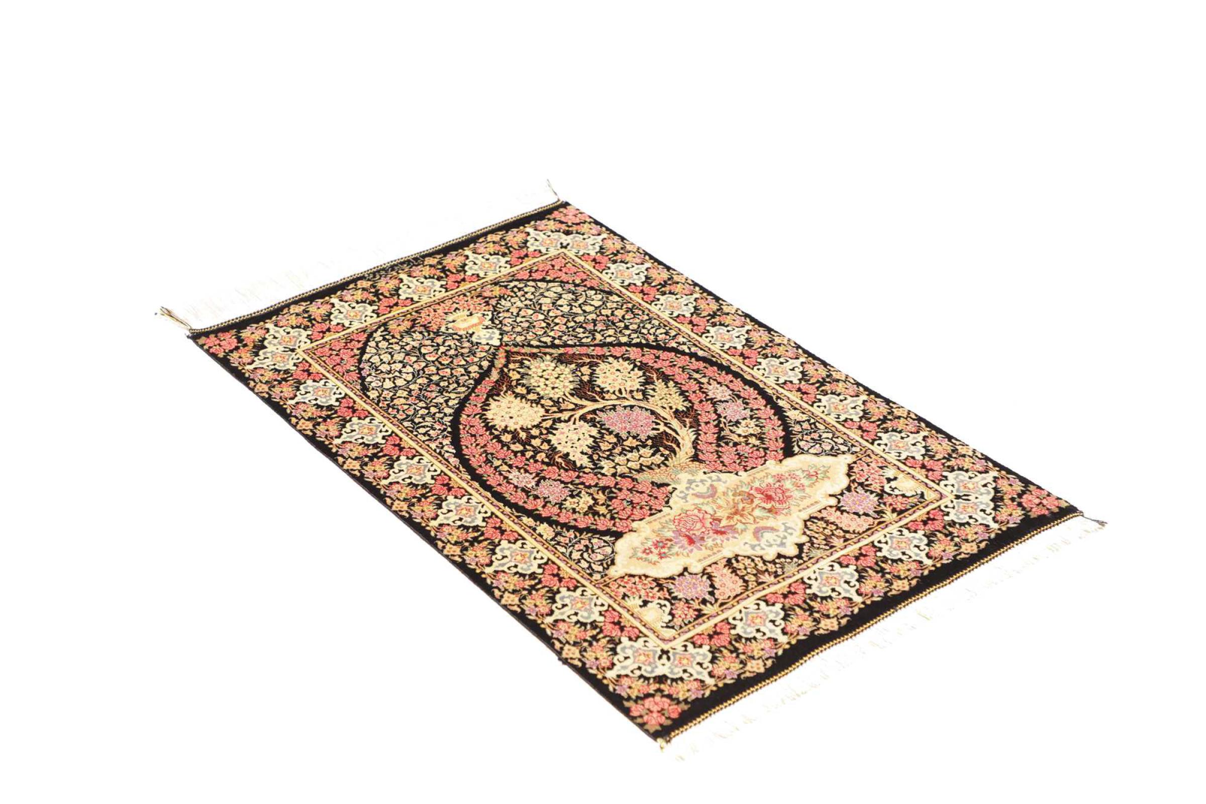 Tapijt ID: 247051004063043 Grootte: 87x56 cm Dikte: ap. 3 mm Knoopdichtheid: 1 000 000 / m² Verwerking: Handgeknoopte Pool: Zijde Schering: Zijde Oorsprong: Perzië / Iran Leeftijd: Nieuw Gewicht: ap. 1 kg Op voorraad: Uniek - Nog maar 1 op voorraad