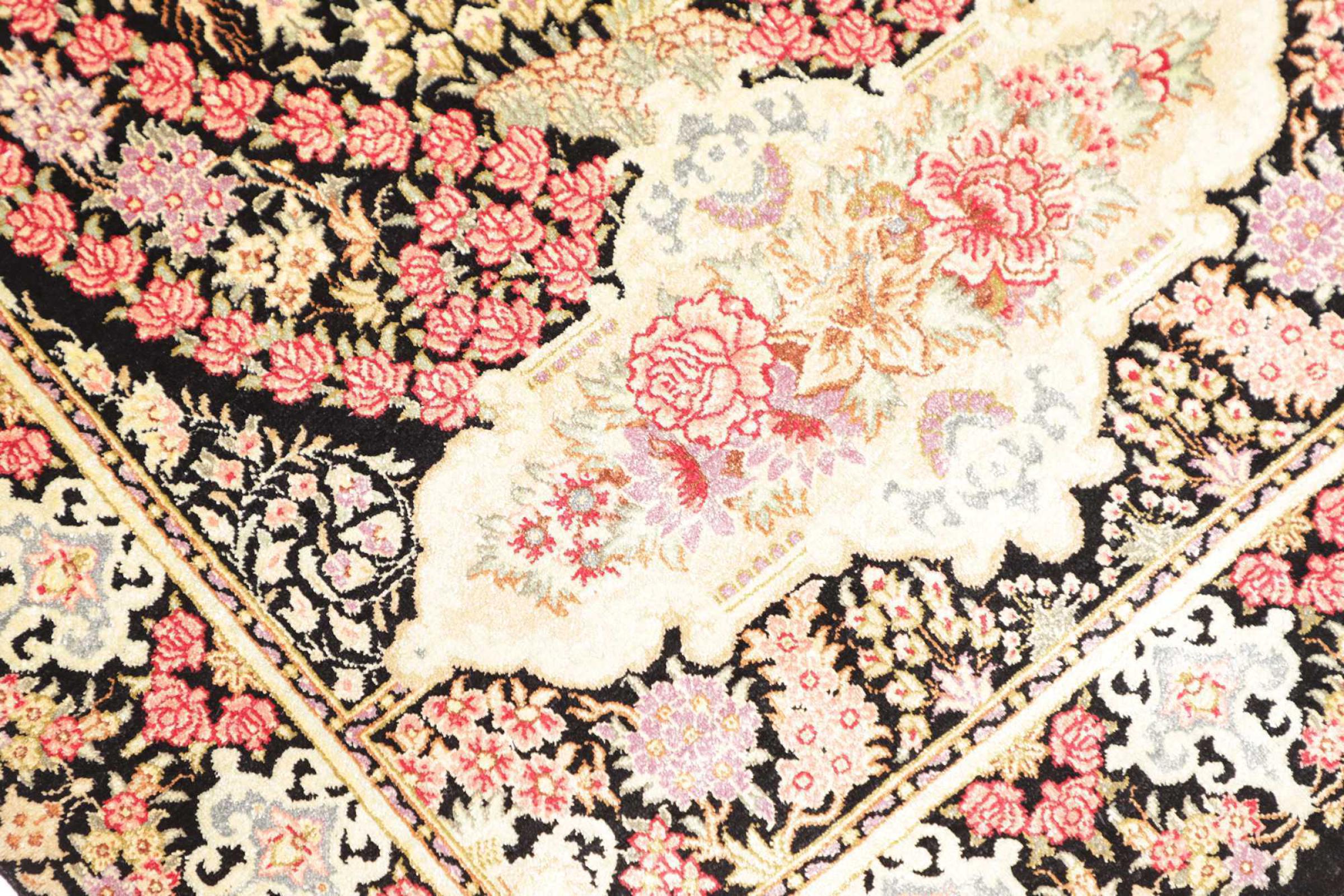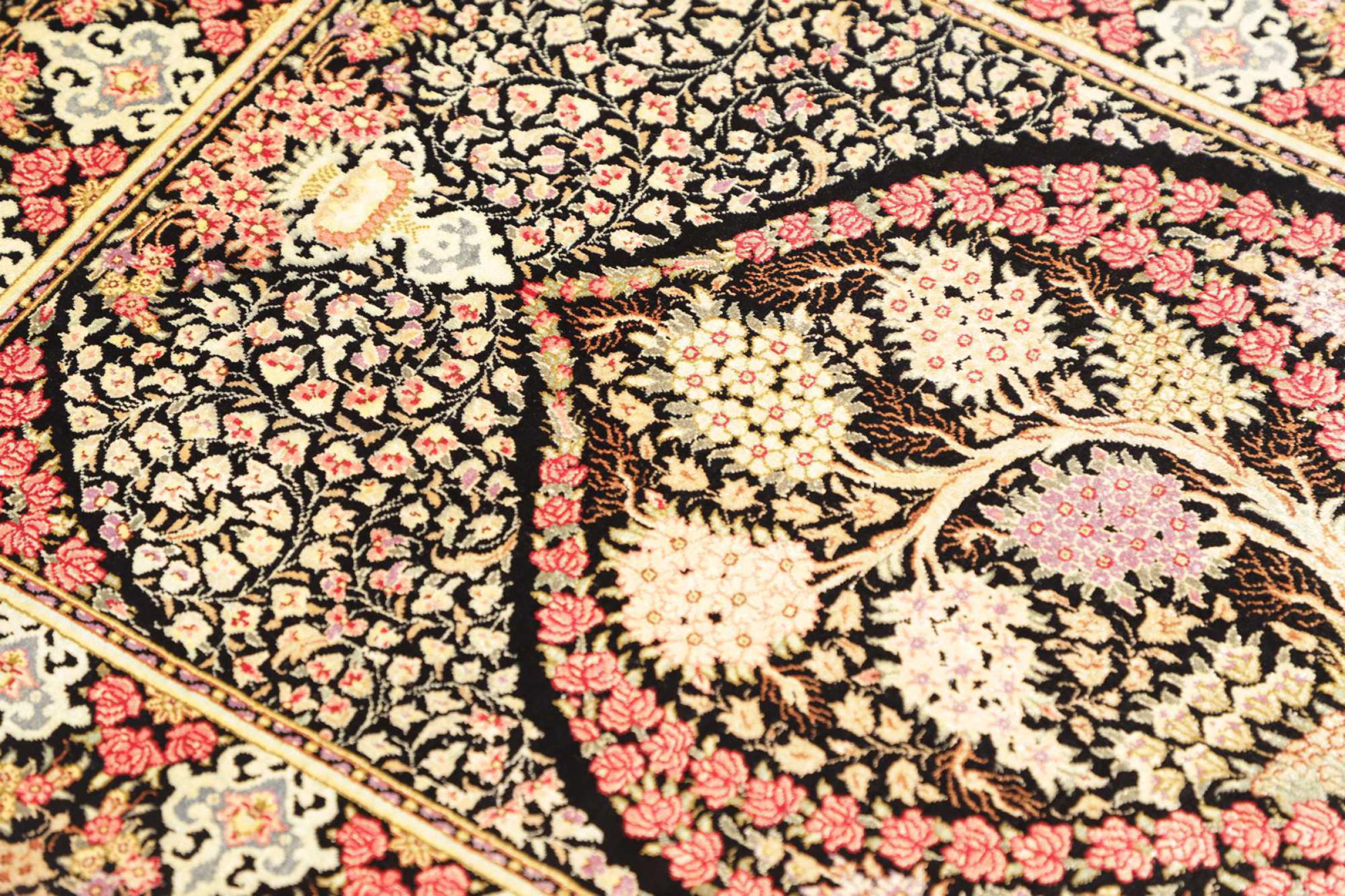 Dit Ghom zijden vloerkleed is pure luxe. De ornamenten en de pure natuurlijke zijde spreken boekdelen. Hier vind je de Oriënt in zijn volle perfectie voor bij jou thuis. Een zijden tapijt van Ghom maakt zelfs indruk op verzamelaars van Perzische tapijtkunst. Afhankelijk van de lichtinval laat de zijde kleuren schitteren in de meest uiteenlopende facetten. Dit maakt dit Perzische tapijt tot een onvergetelijk hoogtepunt en laat je kamer stralen in een gezellige en zeer hoogwaardige sfeer.