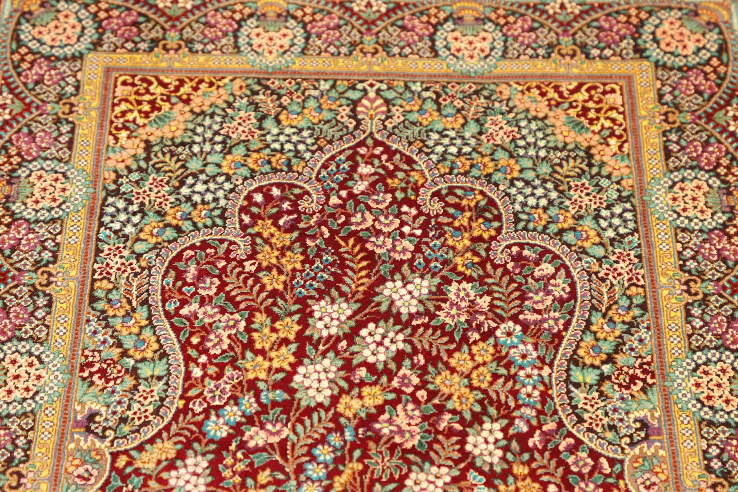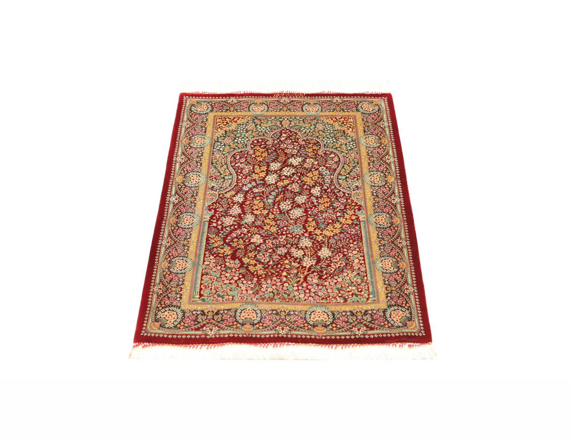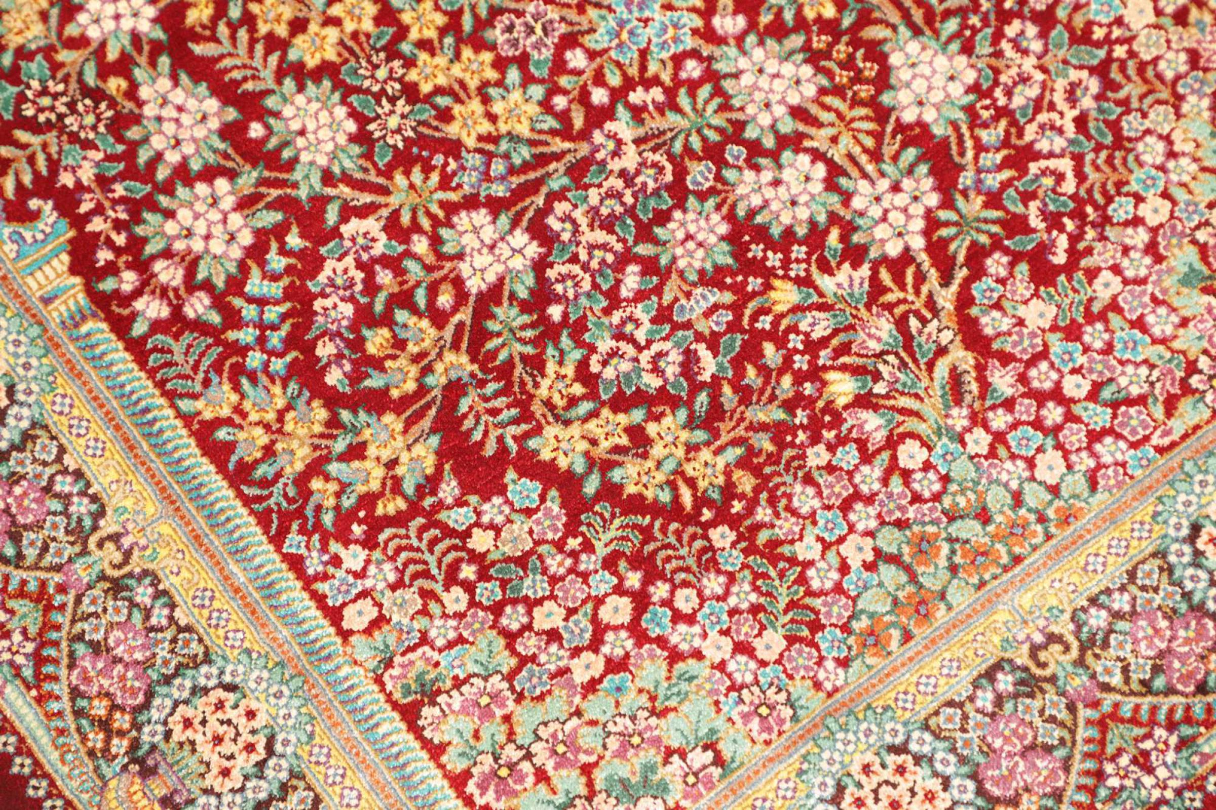 Dit Ghom zijden vloerkleed is pure luxe. De ornamenten en de pure natuurlijke zijde spreken boekdelen. Hier vind je de Oriënt in zijn volle perfectie voor bij jou thuis. Een zijden tapijt van Ghom maakt zelfs indruk op verzamelaars van Perzische tapijtkunst. Afhankelijk van de lichtinval laat de zijde kleuren schitteren in de meest uiteenlopende facetten. Dit maakt dit Perzische tapijt tot een onvergetelijk hoogtepunt en laat je kamer stralen in een gezellige en zeer hoogwaardige sfeer.