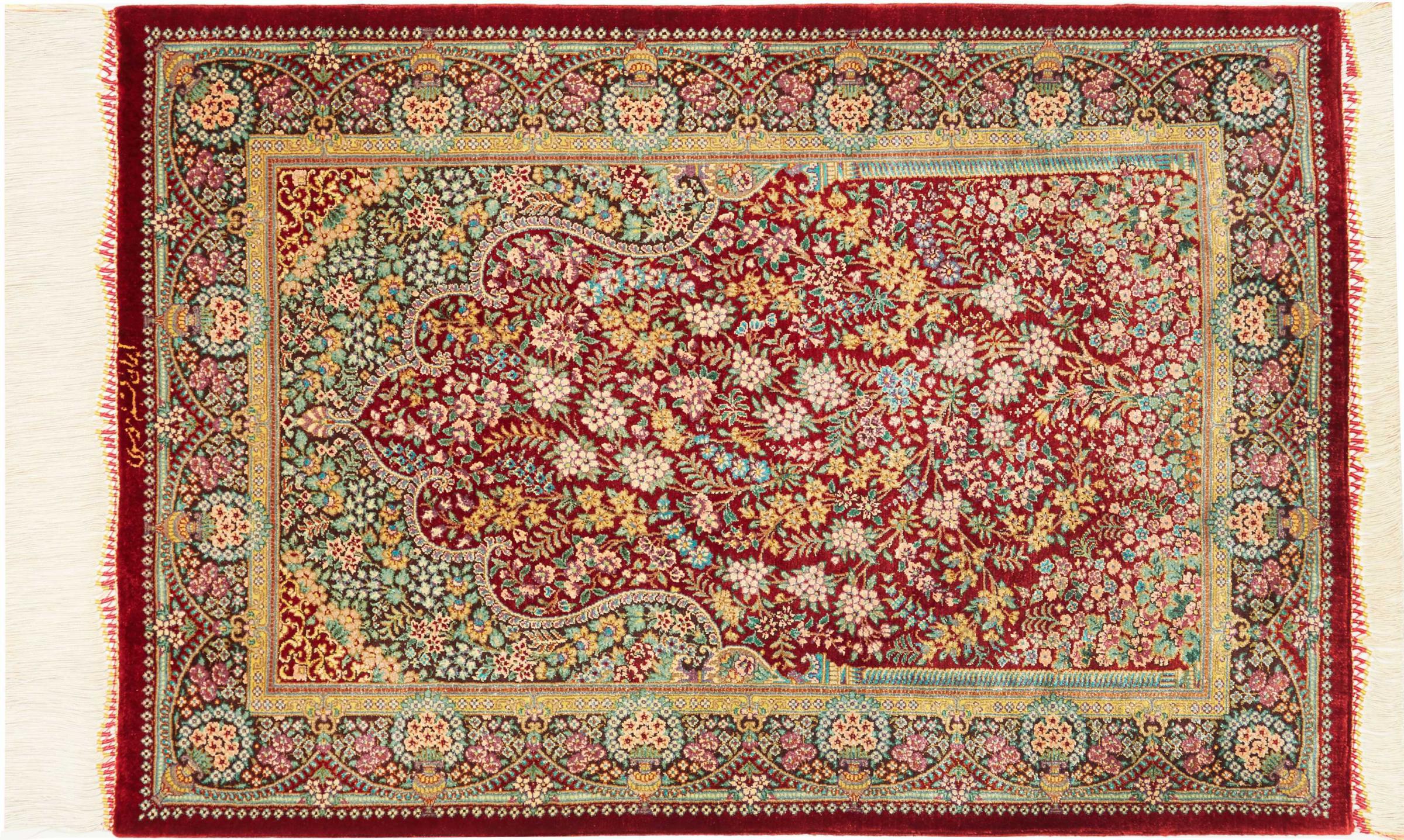 Tapijt ID: 252662009747476 Grootte: 88x57 cm Dikte: ap. 3 mm Knoopdichtheid: 1 000 000 / m² Verwerking: Handgeknoopte Pool: Zijde Schering: Zijde Oorsprong: Perzië / Iran Leeftijd: Nieuw Gewicht: ap. 1 kg Op voorraad: Uniek - Nog maar 1 op voorraad