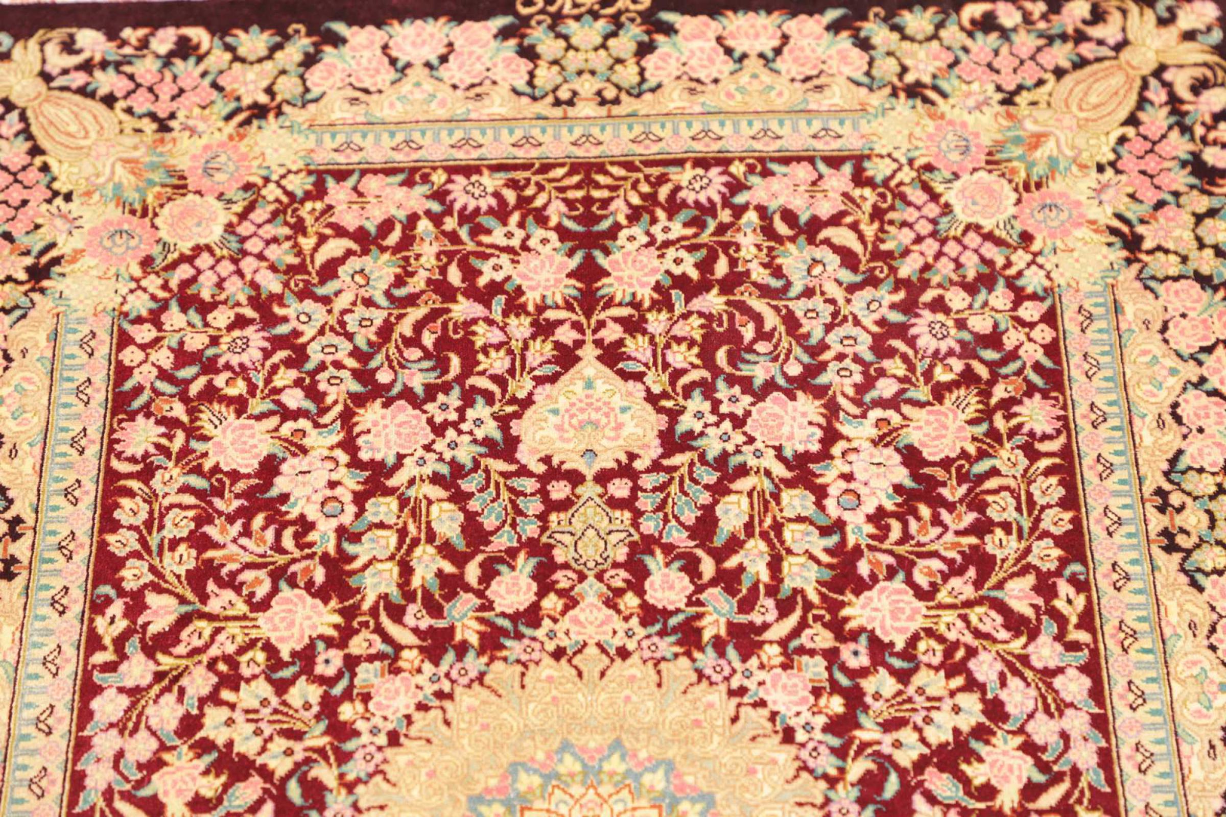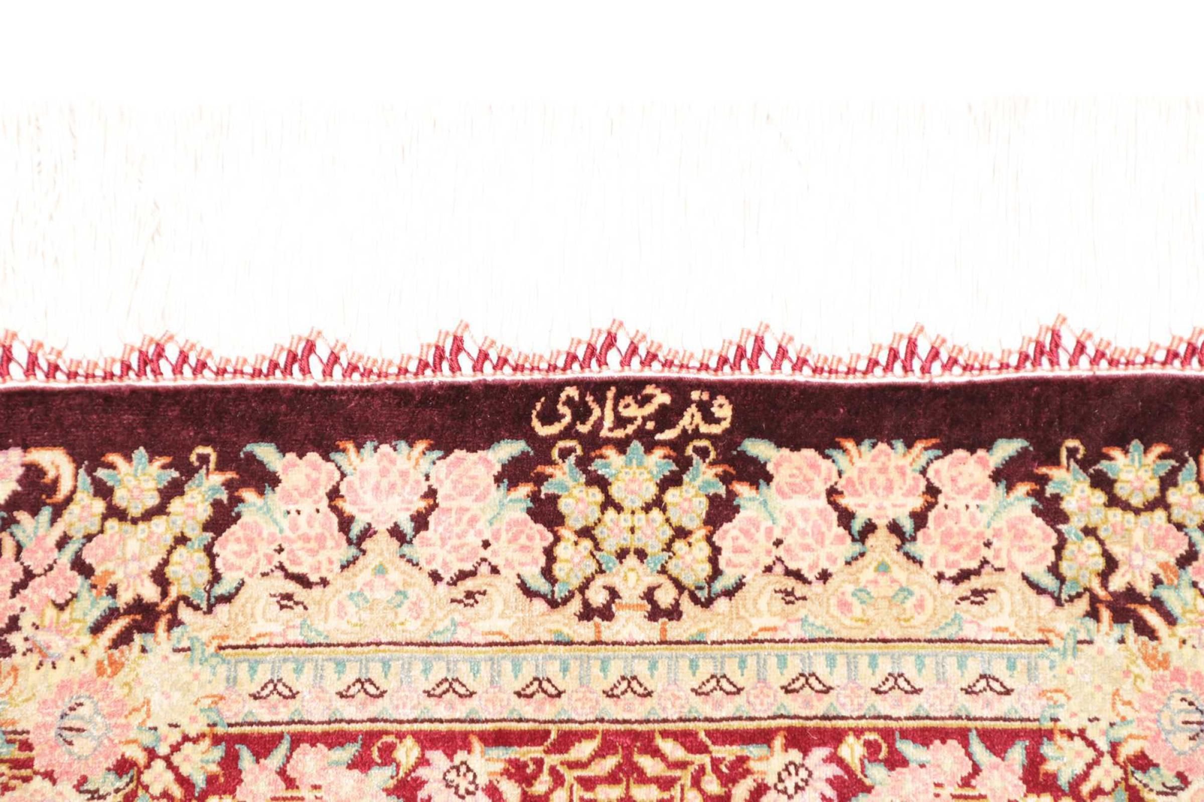 Dit Ghom zijden vloerkleed is pure luxe. De ornamenten en de pure natuurlijke zijde spreken boekdelen. Hier vind je de Oriënt in zijn volle perfectie voor bij jou thuis. Een zijden tapijt van Ghom maakt zelfs indruk op verzamelaars van Perzische tapijtkunst. Afhankelijk van de lichtinval laat de zijde kleuren schitteren in de meest uiteenlopende facetten. Dit maakt dit Perzische tapijt tot een onvergetelijk hoogtepunt en laat je kamer stralen in een gezellige en zeer hoogwaardige sfeer.