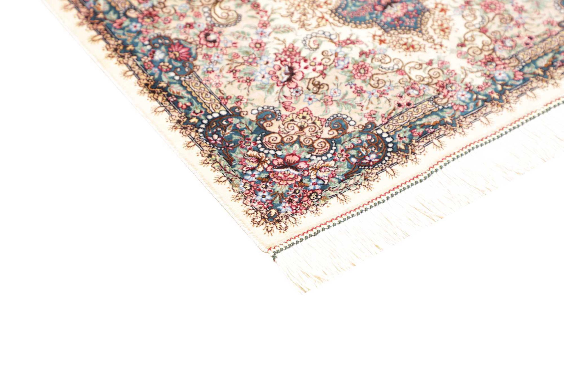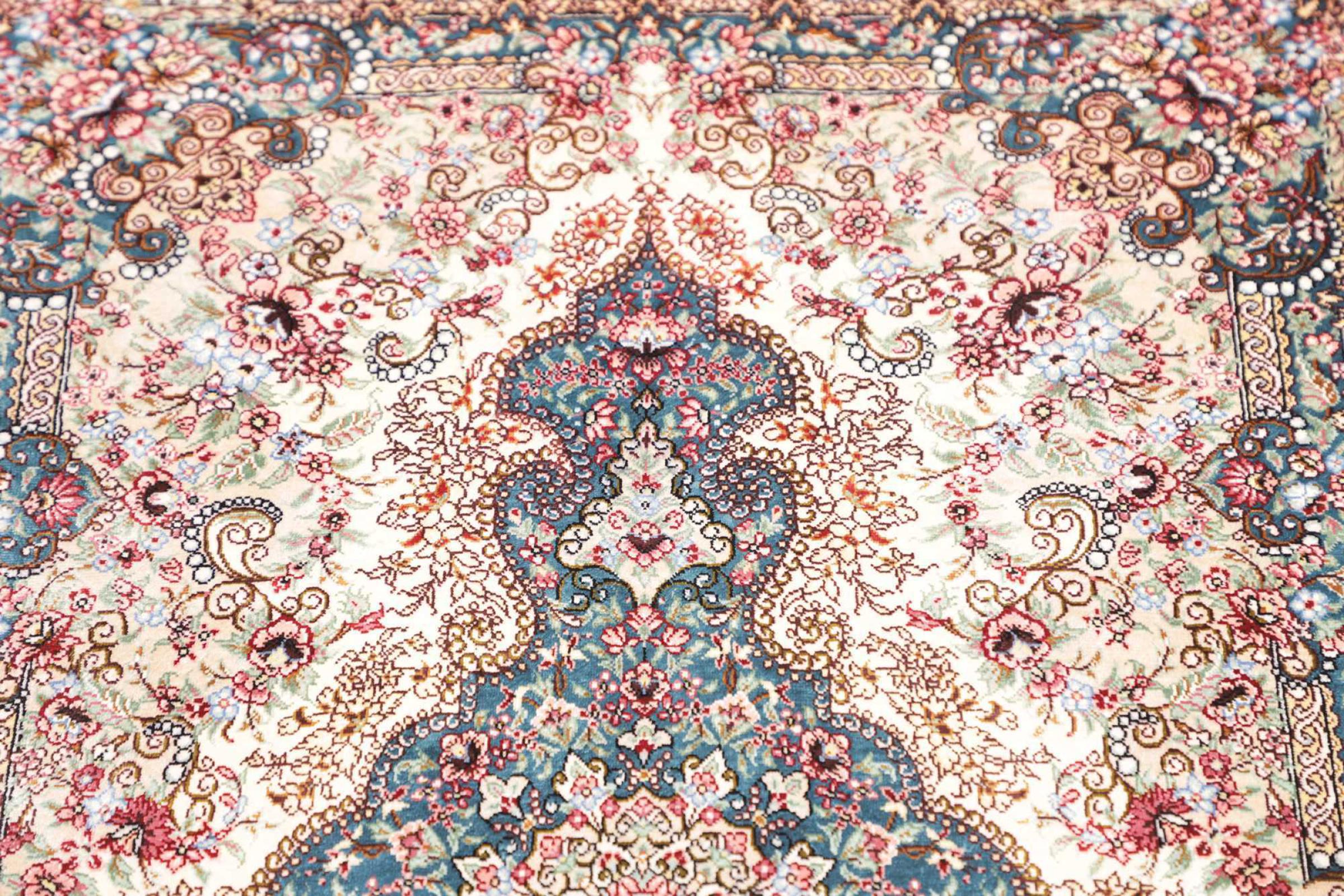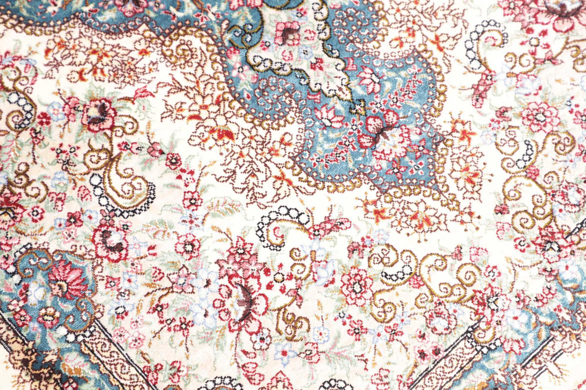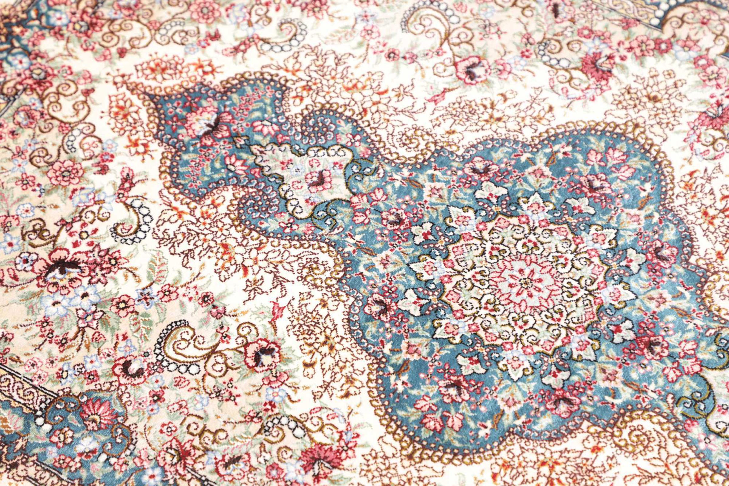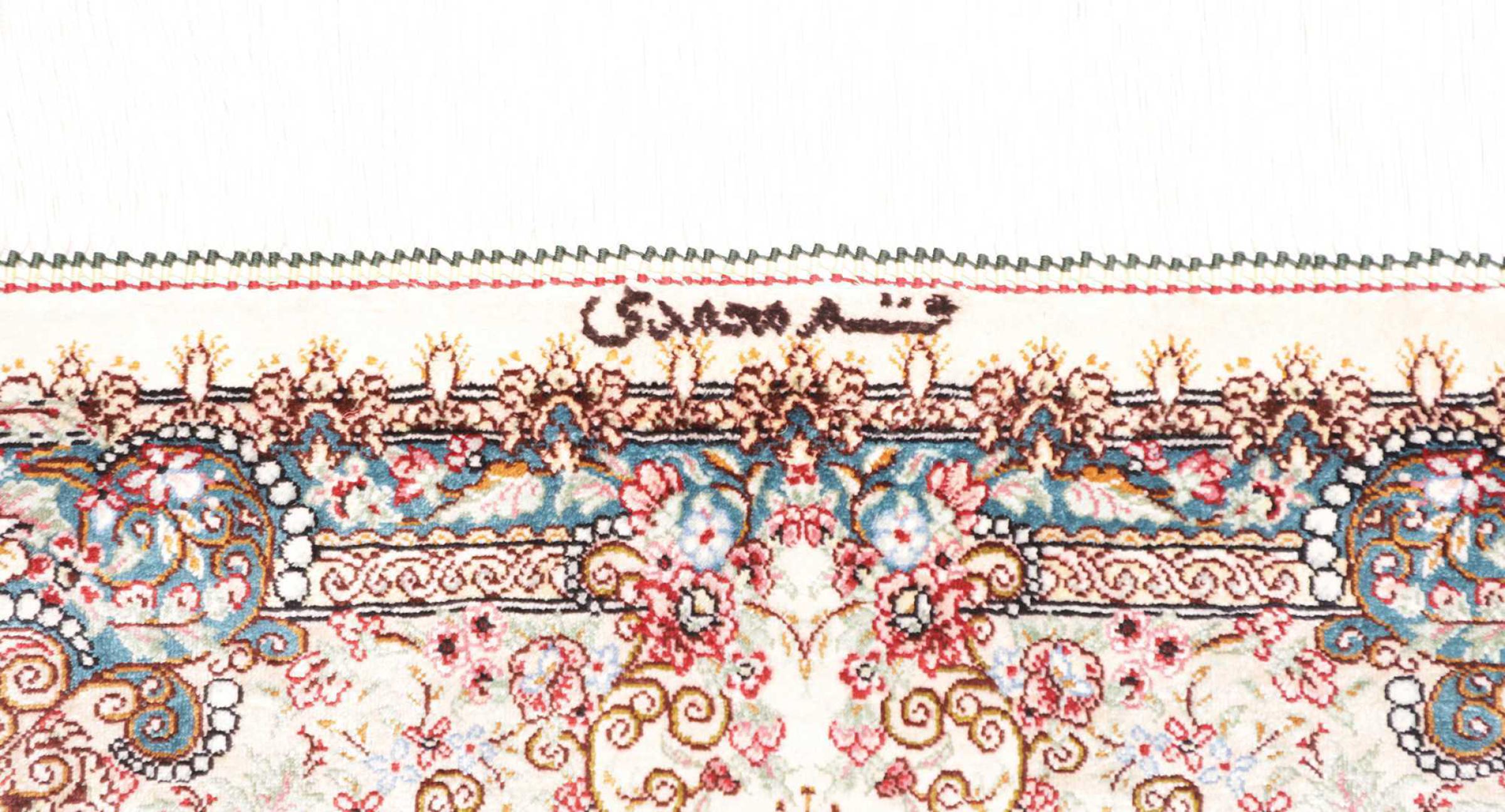 Dit Ghom zijden vloerkleed is pure luxe. De ornamenten en de pure natuurlijke zijde spreken boekdelen. Hier vind je de Oriënt in zijn volle perfectie voor bij jou thuis. Een zijden tapijt van Ghom maakt zelfs indruk op verzamelaars van Perzische tapijtkunst. Afhankelijk van de lichtinval laat de zijde kleuren schitteren in de meest uiteenlopende facetten. Dit maakt dit Perzische tapijt tot een onvergetelijk hoogtepunt en laat je kamer stralen in een gezellige en zeer hoogwaardige sfeer.