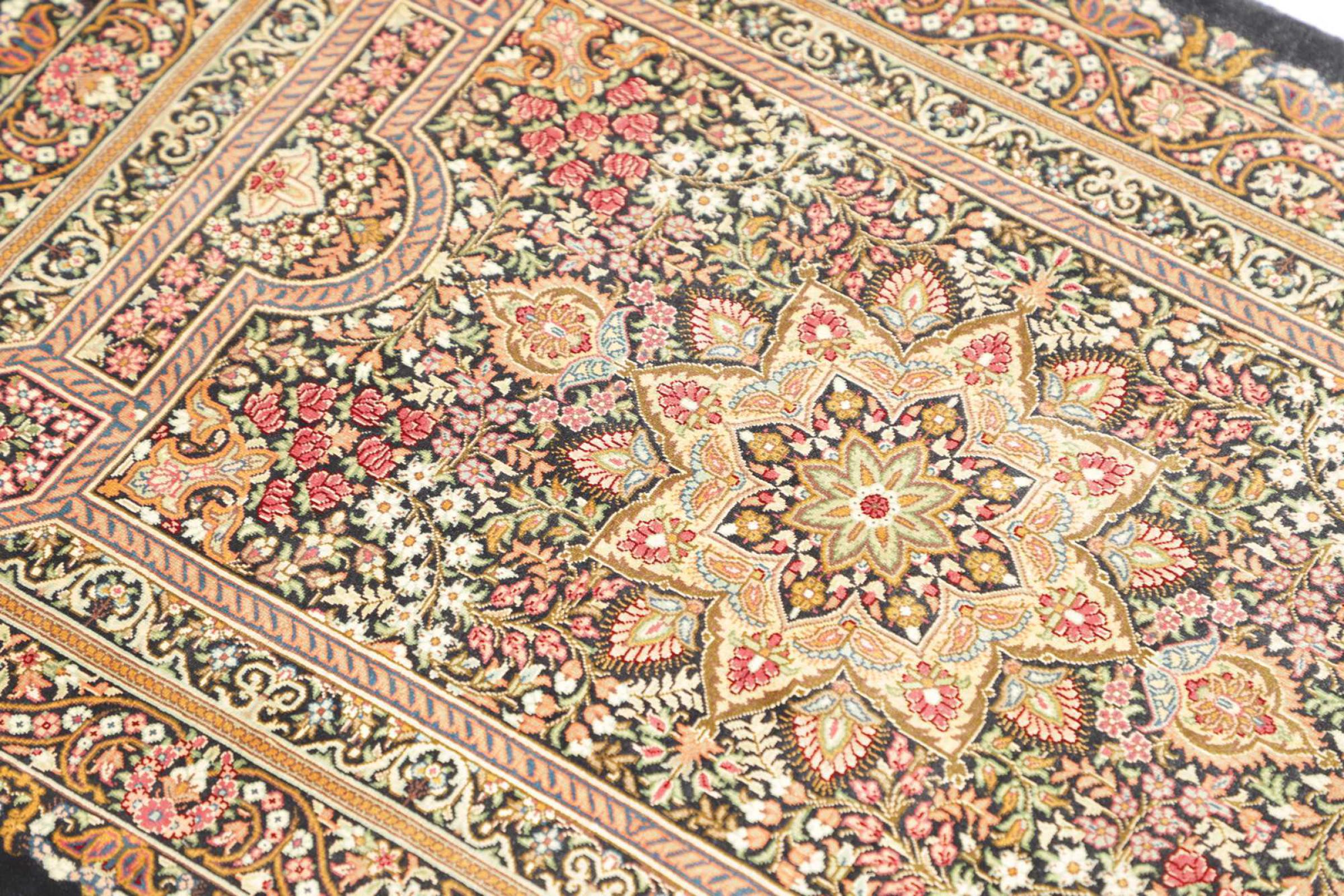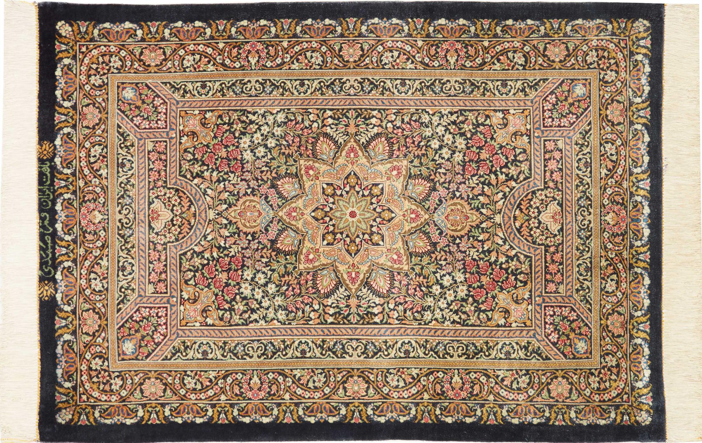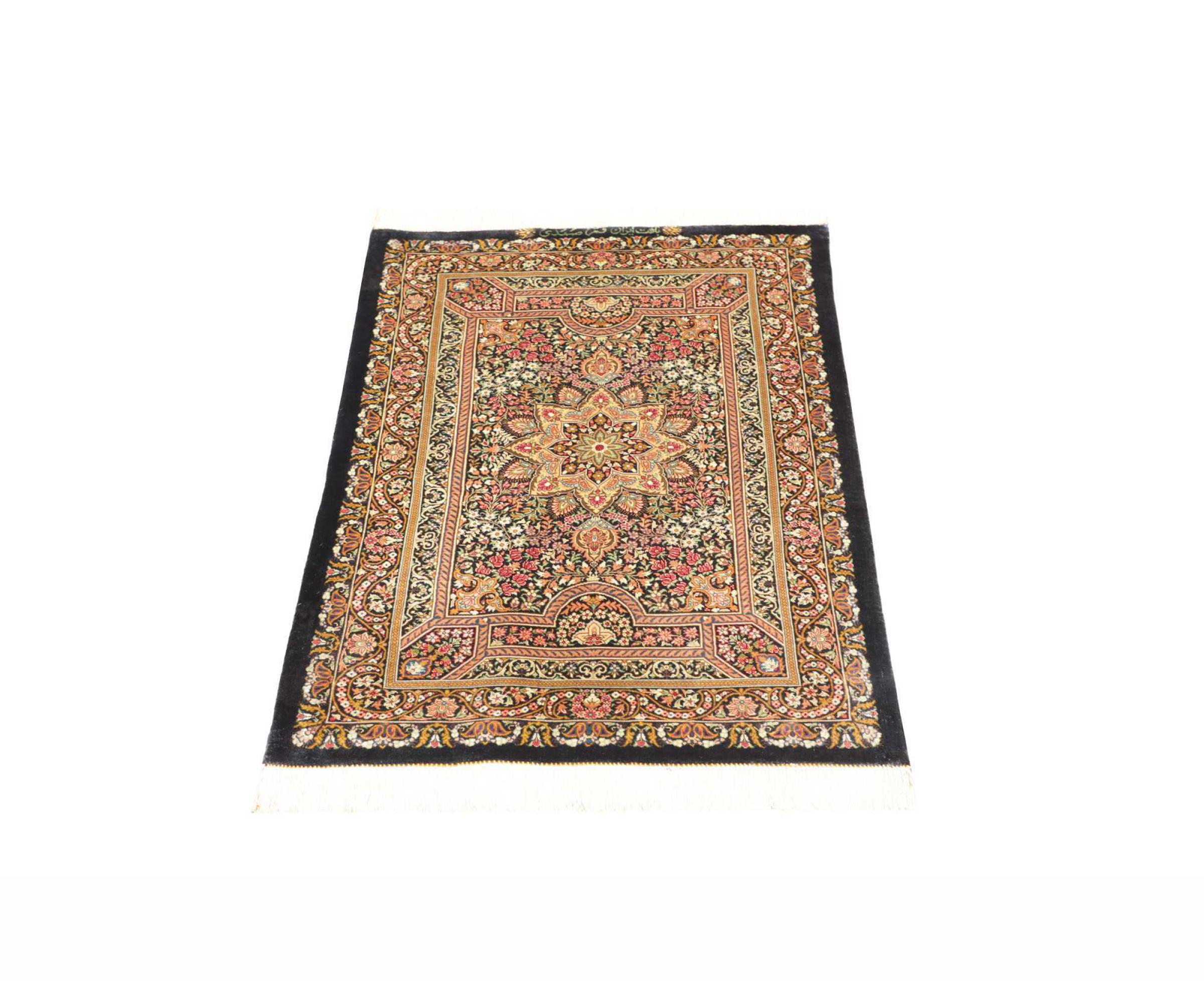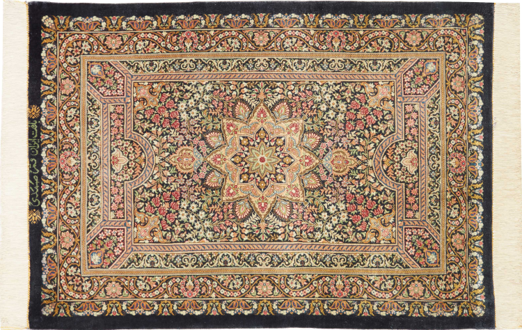 Tapijt ID: 247185003463368 Grootte: 89x63 cm Dikte: ap. 3 mm Knoopdichtheid: 1 000 000 / m² Verwerking: Handgeknoopte Pool: Zijde Schering: Zijde Oorsprong: Perzië / Iran Leeftijd: Nieuw Gewicht: ap. 1 kg Op voorraad: Uniek - Nog maar 1 op voorraad