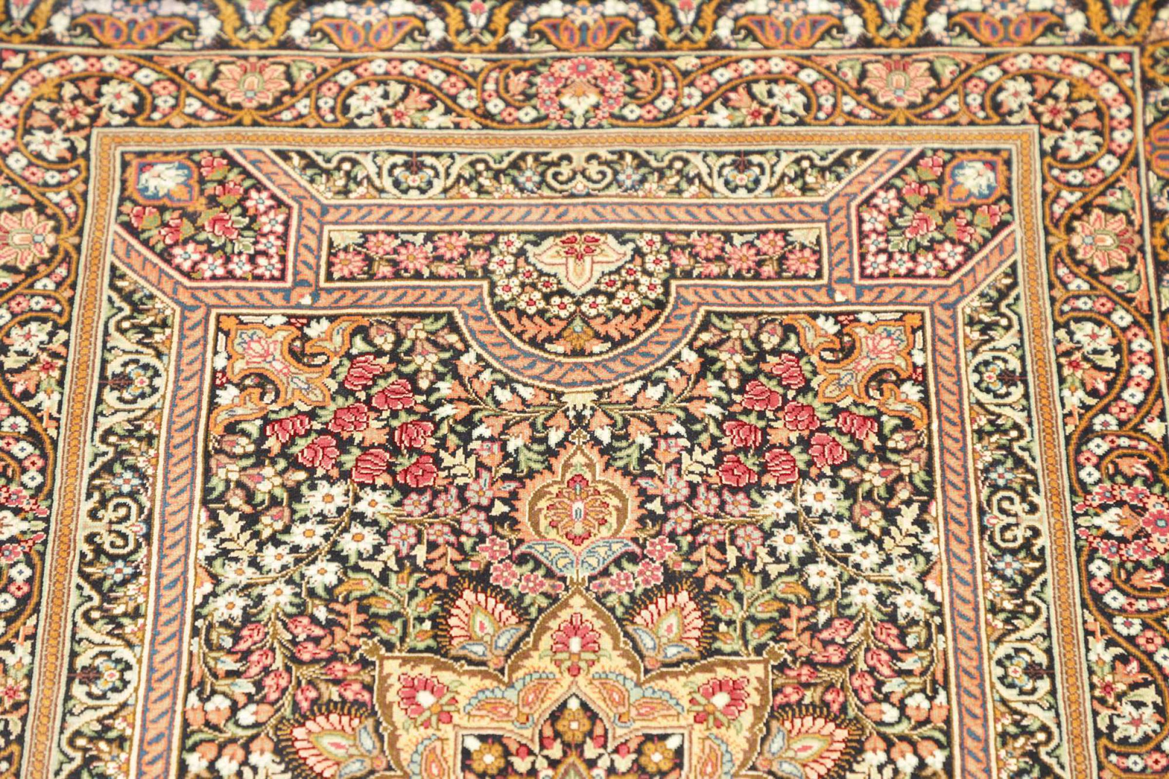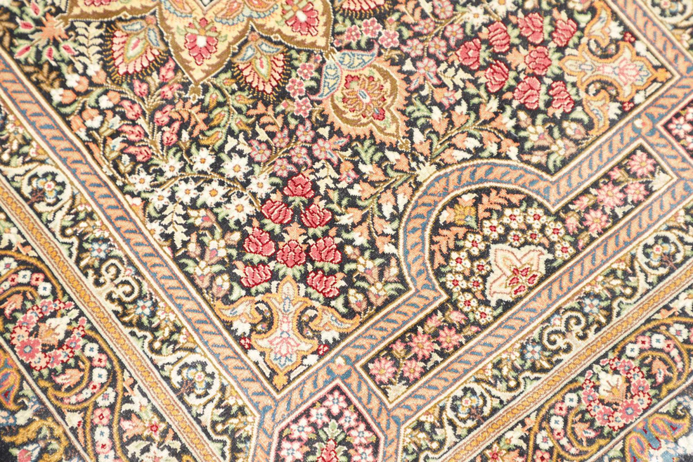 Dit Ghom zijden vloerkleed is pure luxe. De ornamenten en de pure natuurlijke zijde spreken boekdelen. Hier vind je de Oriënt in zijn volle perfectie voor bij jou thuis. Een zijden tapijt van Ghom maakt zelfs indruk op verzamelaars van Perzische tapijtkunst. Afhankelijk van de lichtinval laat de zijde kleuren schitteren in de meest uiteenlopende facetten. Dit maakt dit Perzische tapijt tot een onvergetelijk hoogtepunt en laat je kamer stralen in een gezellige en zeer hoogwaardige sfeer.