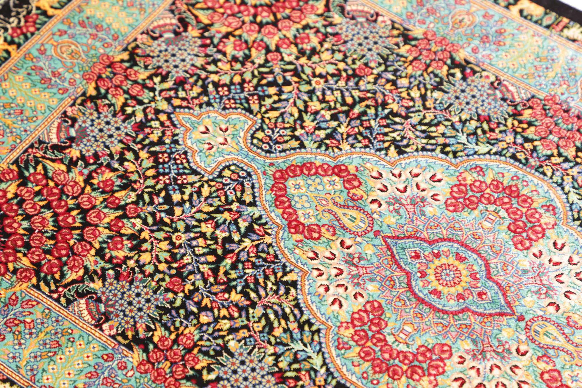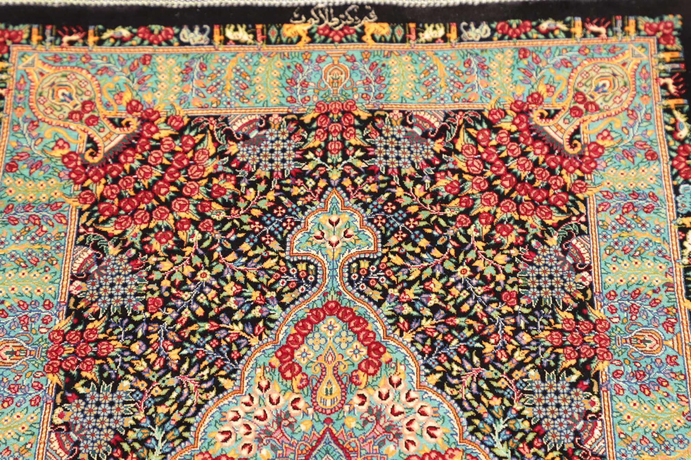 Tapijt ID: 247169008734069 Grootte: 90x62 cm Dikte: ap. 3 mm Knoopdichtheid: 1 000 000 / m² Verwerking: Handgeknoopte Pool: Zijde Schering: Zijde Oorsprong: Perzië / Iran Leeftijd: Nieuw Gewicht: ap. 1 kg Op voorraad: Uniek - Nog maar 1 op voorraad