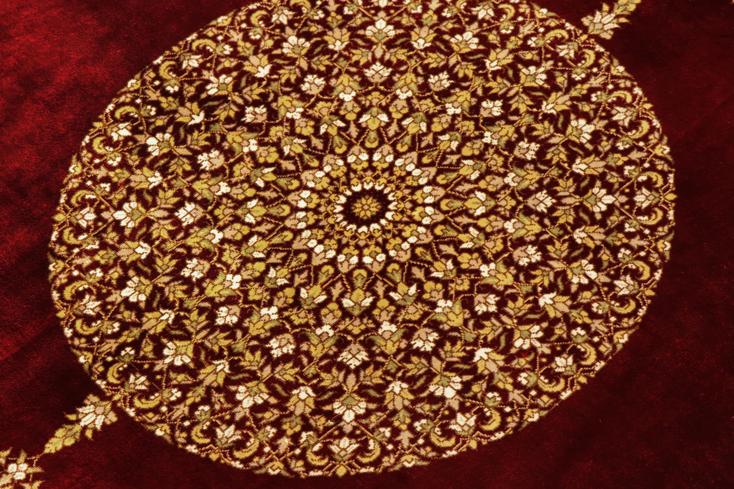 Dit Ghom zijden vloerkleed is pure luxe. De ornamenten en de pure natuurlijke zijde spreken boekdelen. Hier vind je de Oriënt in zijn volle perfectie voor bij jou thuis. Een zijden tapijt van Ghom maakt zelfs indruk op verzamelaars van Perzische tapijtkunst. Afhankelijk van de lichtinval laat de zijde kleuren schitteren in de meest uiteenlopende facetten. Dit maakt dit Perzische tapijt tot een onvergetelijk hoogtepunt en laat je kamer stralen in een gezellige en zeer hoogwaardige sfeer.