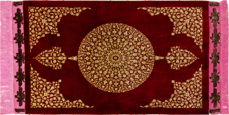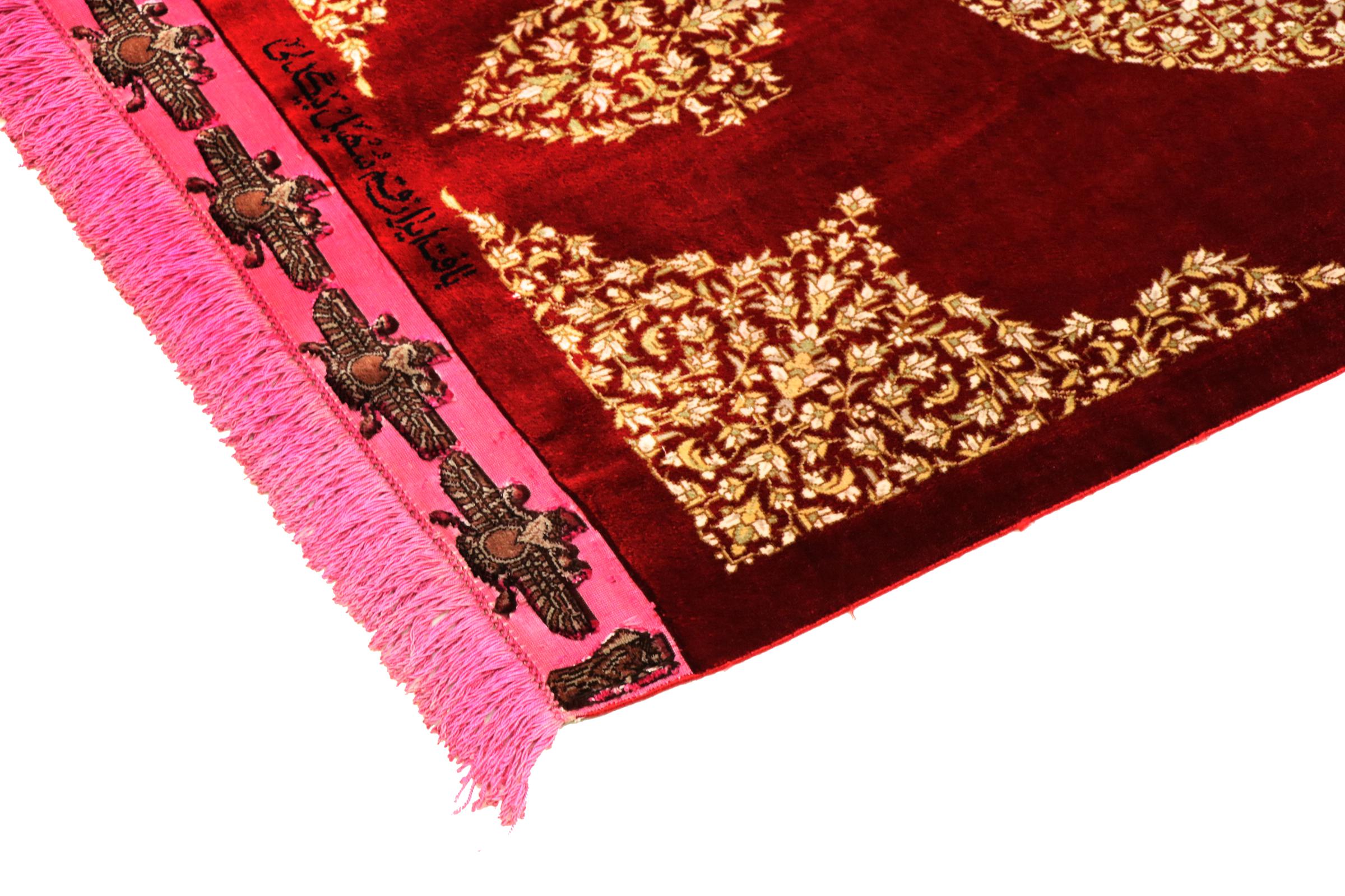Tapijt ID: 303379004118977 Grootte: 91x59 cm Dikte: ap. 5 mm Knoopdichtheid: 1 000 000 / m² Verwerking: Handgeknoopte Pool: Zijde Schering: Zijde Oorsprong: Perzië / Iran Leeftijd: Nieuw Gewicht: ap. 2 kg Op voorraad: Uniek - Nog maar 1 op voorraad