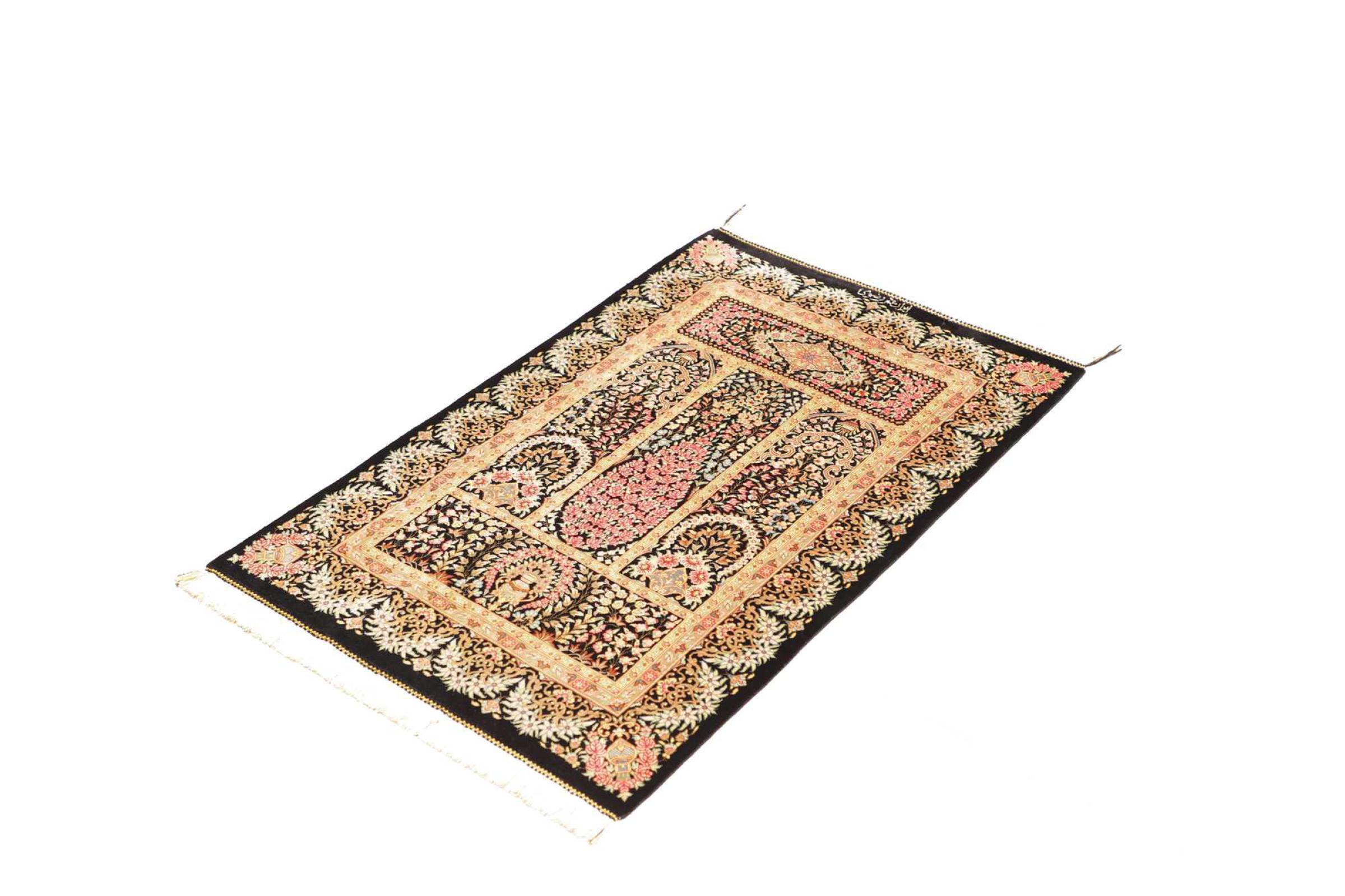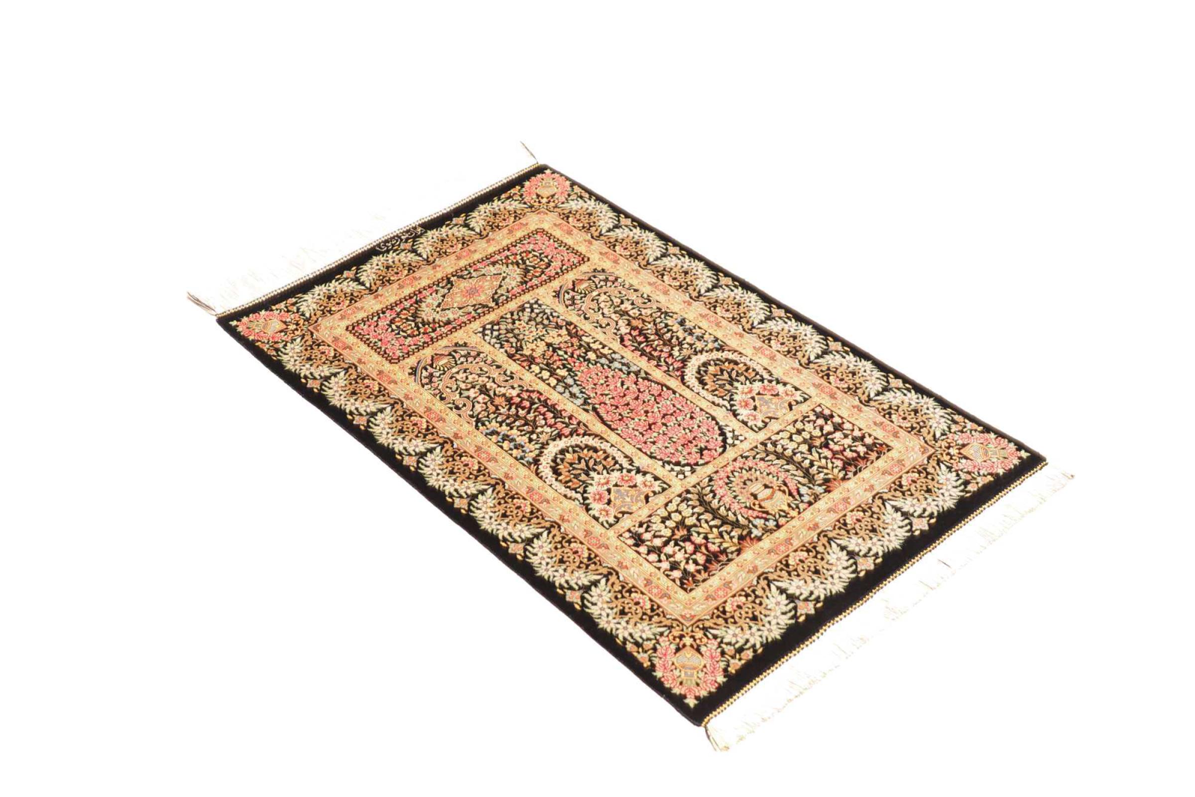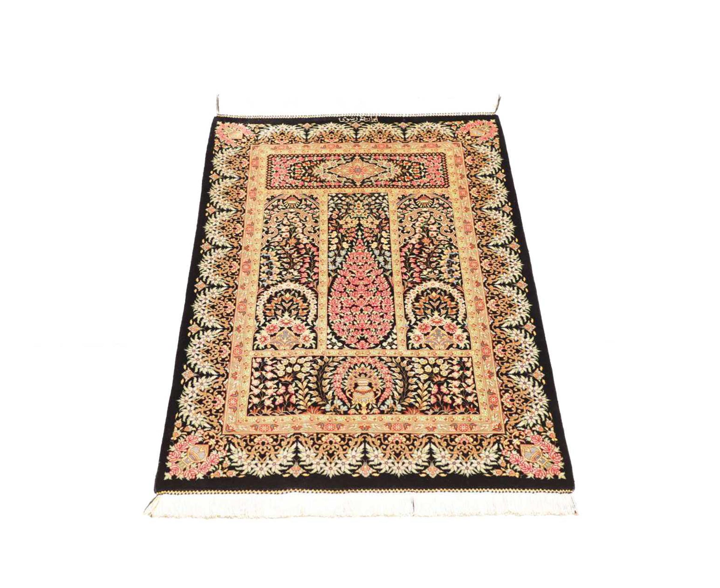 Tapijt ID: 247050007151592 Grootte: 92x59 cm Dikte: ap. 3 mm Knoopdichtheid: 1 000 000 / m² Verwerking: Handgeknoopte Pool: Zijde Schering: Zijde Oorsprong: Perzië / Iran Leeftijd: Nieuw Gewicht: ap. 1 kg Op voorraad: Uniek - Nog maar 1 op voorraad