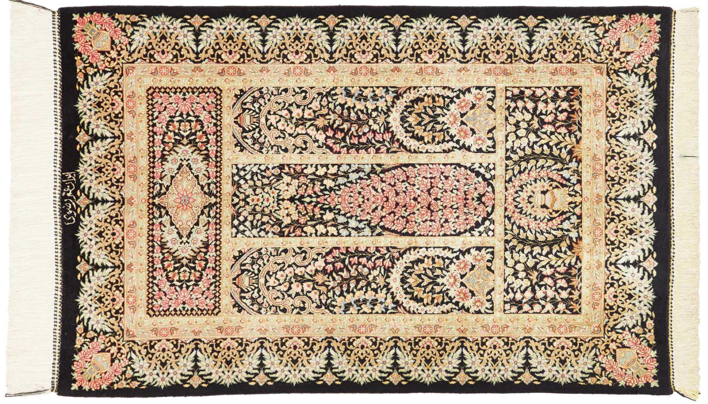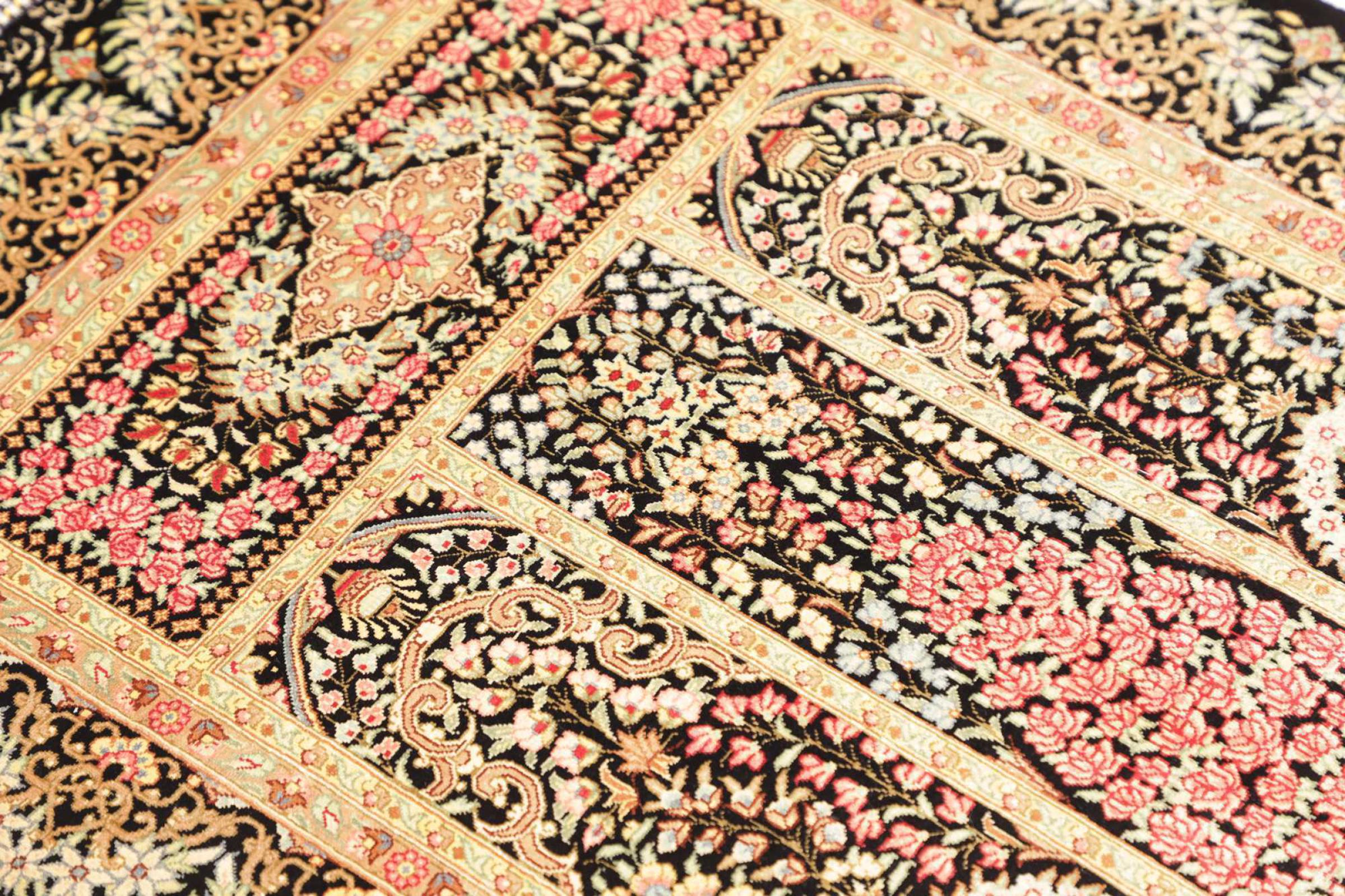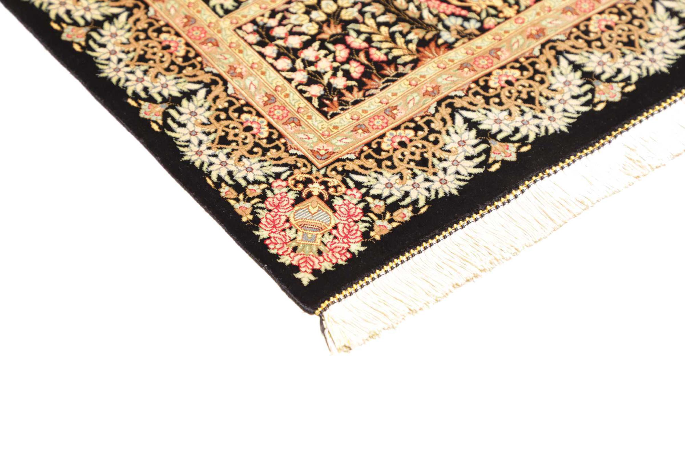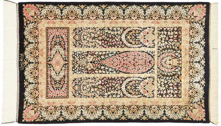 Tapijt ID: 247050007151592 Grootte: 92x59 cm Dikte: ap. 3 mm Knoopdichtheid: 1 000 000 / m² Verwerking: Handgeknoopte Pool: Zijde Schering: Zijde Oorsprong: Perzië / Iran Leeftijd: Nieuw Gewicht: ap. 1 kg Op voorraad: Uniek - Nog maar 1 op voorraad