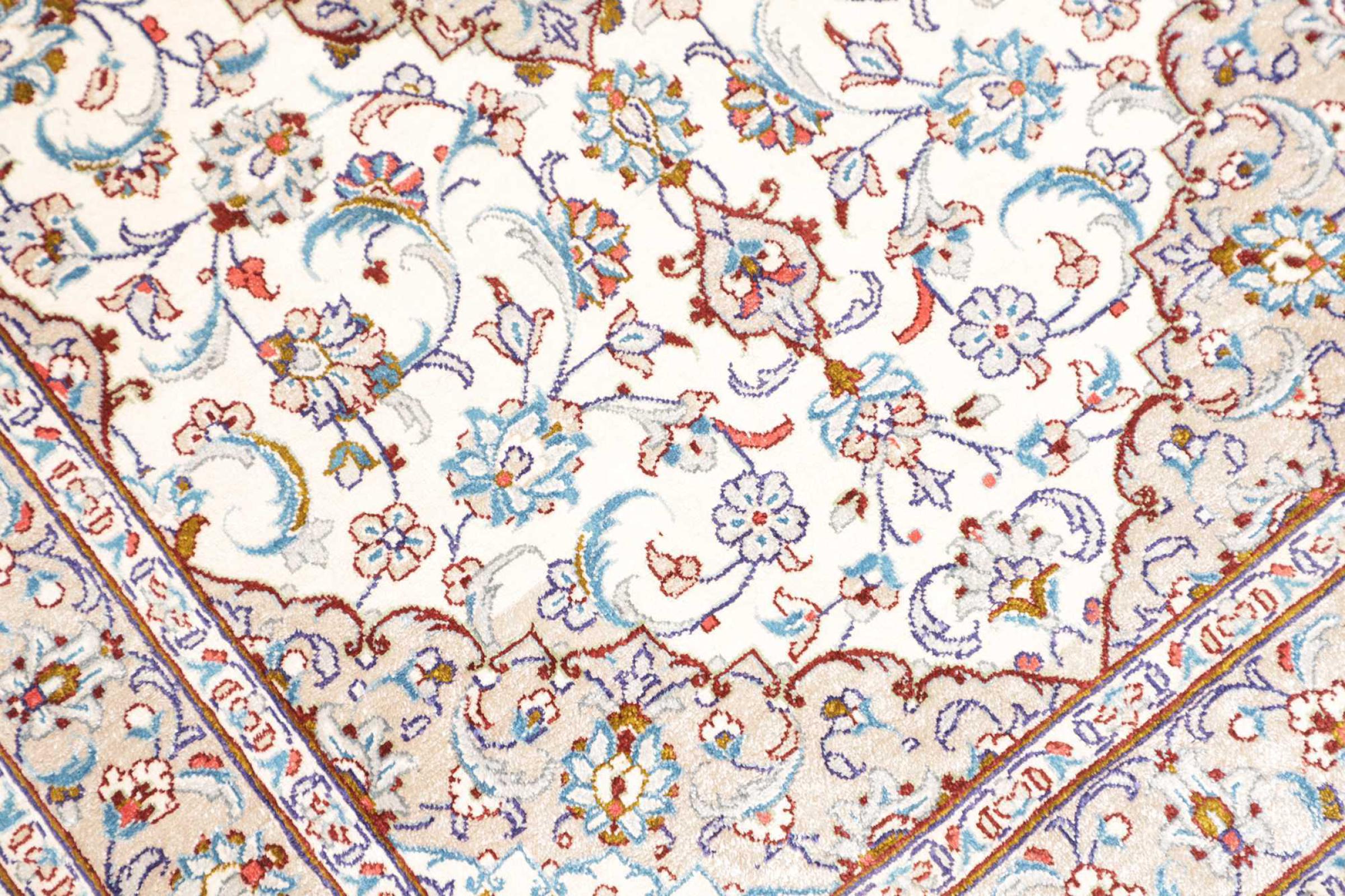 Dit Ghom zijden vloerkleed is pure luxe. De ornamenten en de pure natuurlijke zijde spreken boekdelen. Hier vind je de Oriënt in zijn volle perfectie voor bij jou thuis. Een zijden tapijt van Ghom maakt zelfs indruk op verzamelaars van Perzische tapijtkunst. Afhankelijk van de lichtinval laat de zijde kleuren schitteren in de meest uiteenlopende facetten. Dit maakt dit Perzische tapijt tot een onvergetelijk hoogtepunt en laat je kamer stralen in een gezellige en zeer hoogwaardige sfeer.