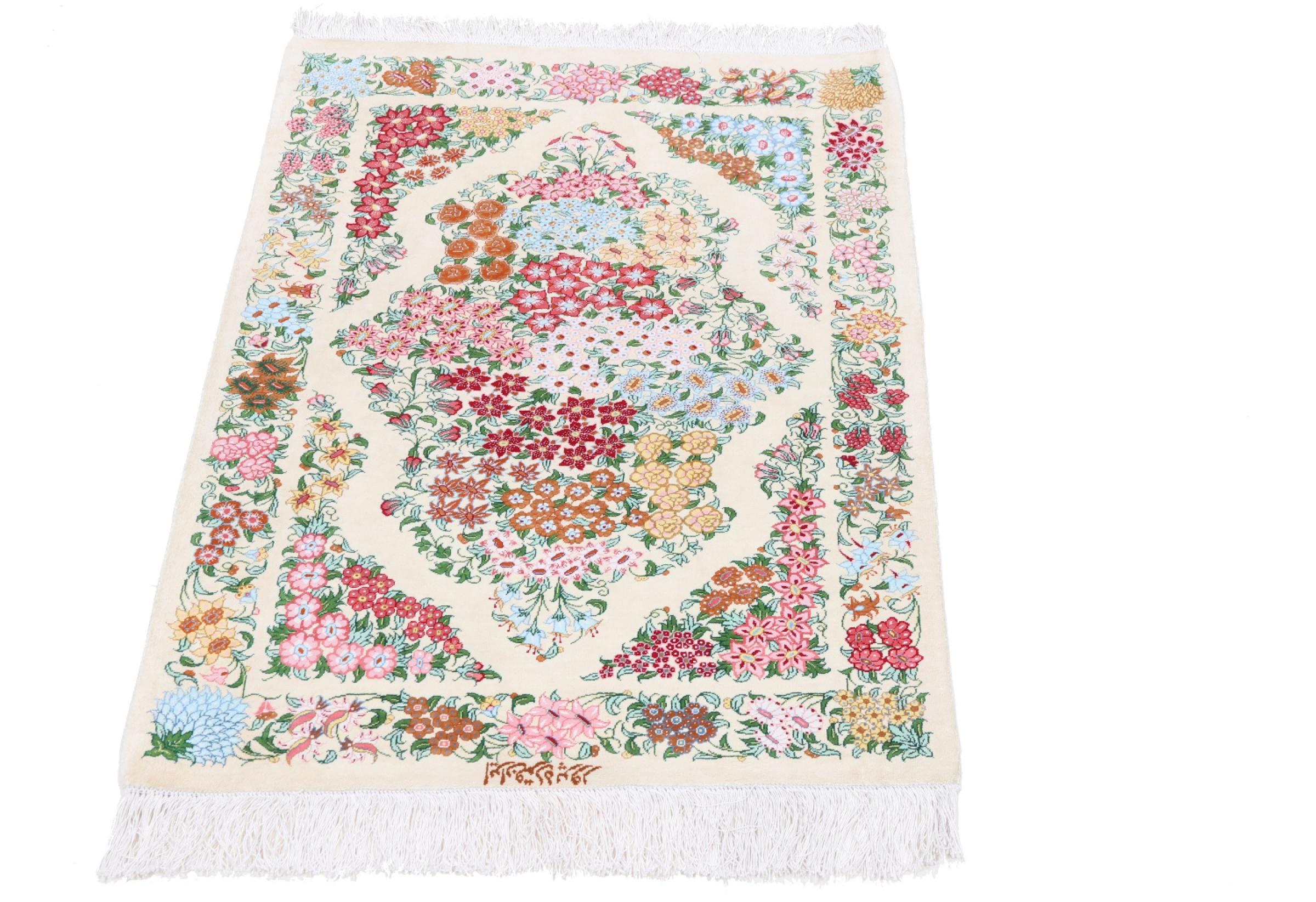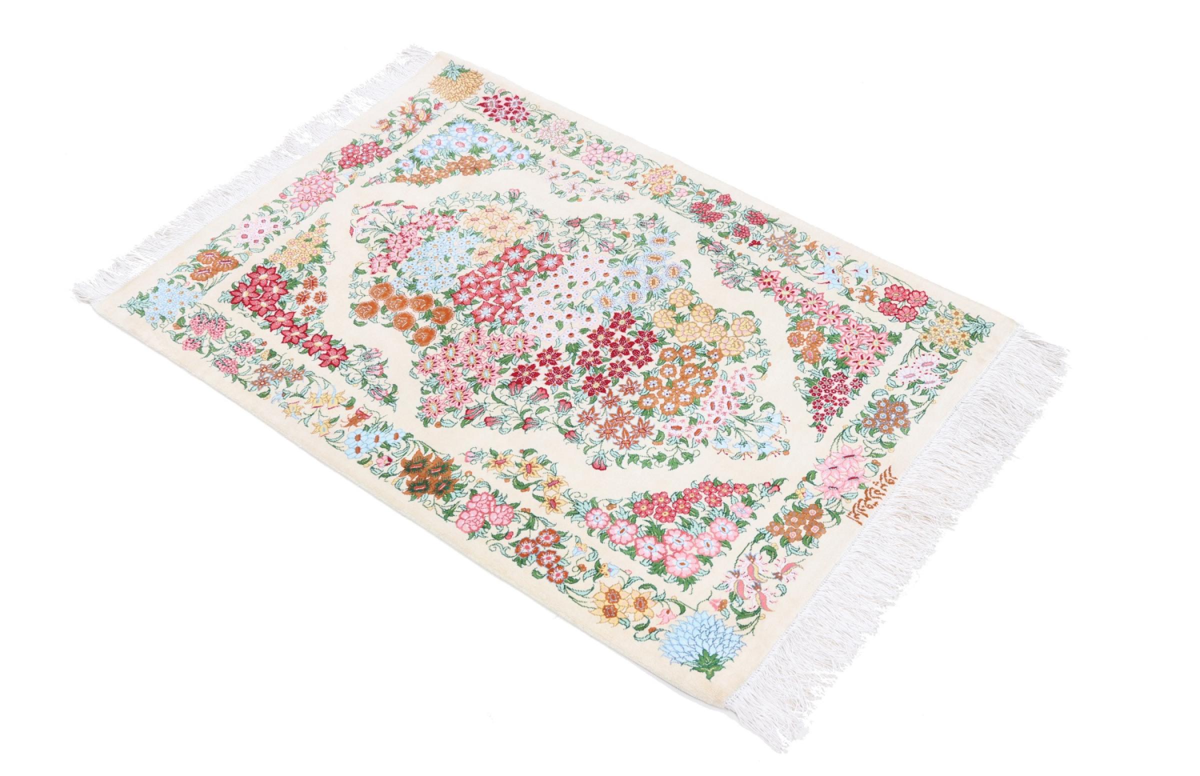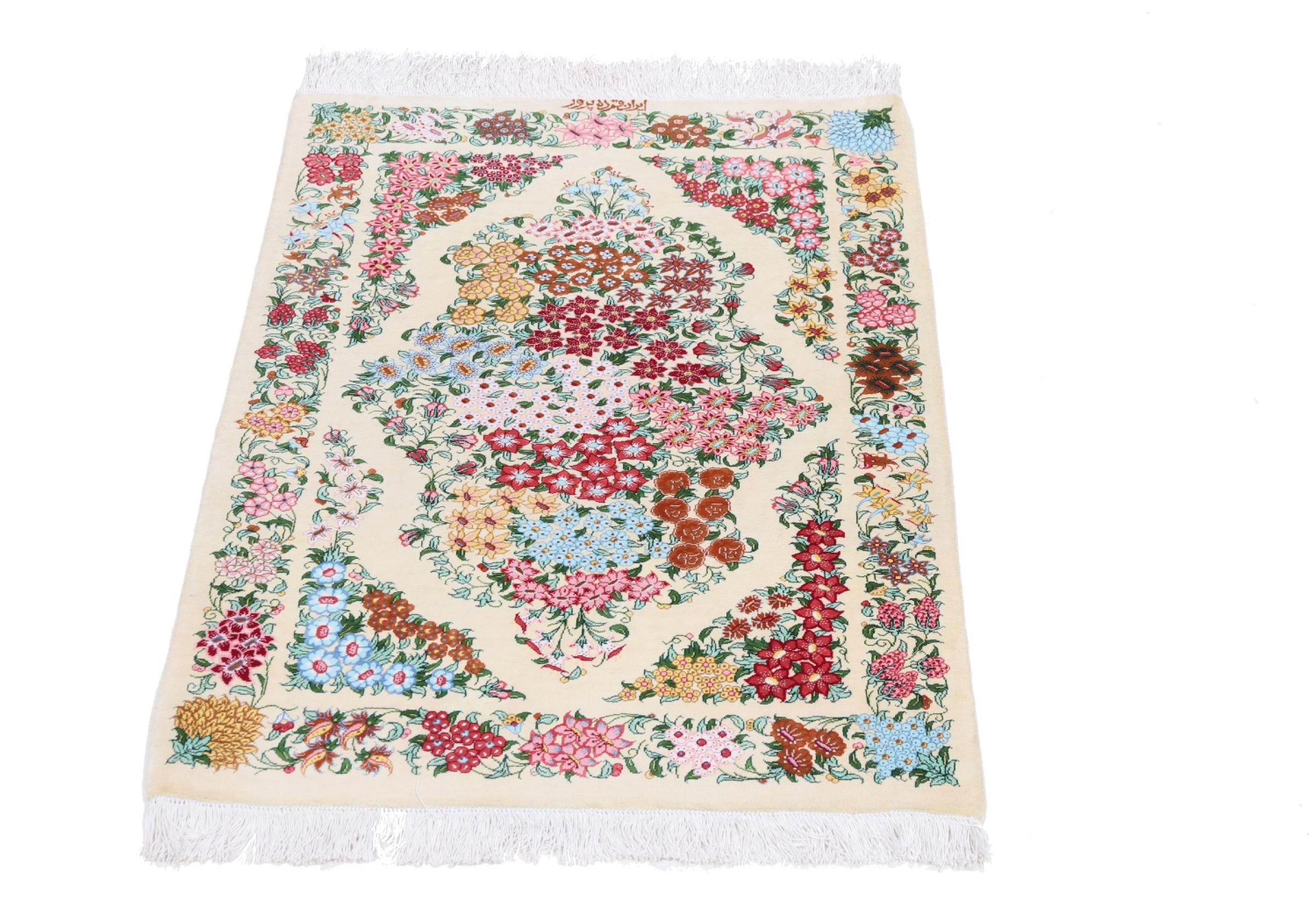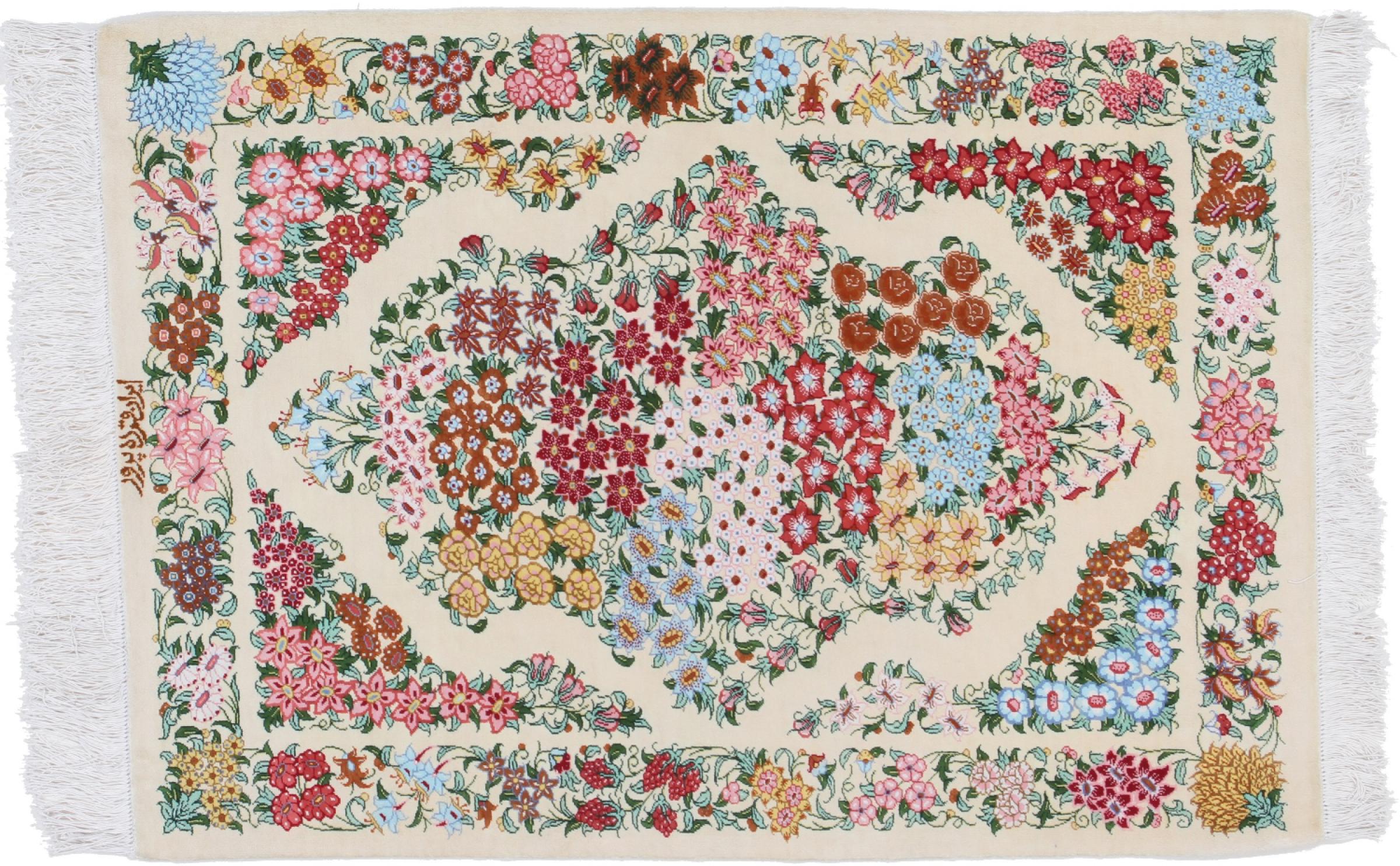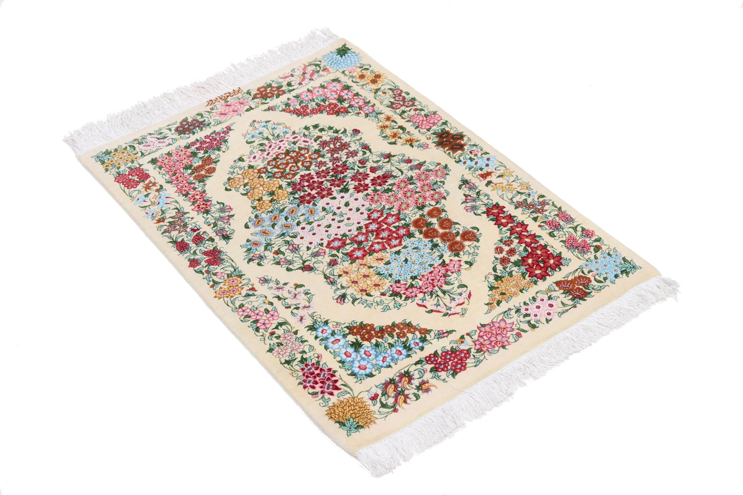 Tapijt ID: 35010003554562 Grootte: 96x59 cm Dikte: ap. 3 mm Knoopdichtheid: 1 000 000 / m² Verwerking: Handgeknoopte Pool: Zijde Schering: Zijde Oorsprong: Perzië / Iran Leeftijd: Nieuw Gewicht: ap. 1 kg Op voorraad: Uniek - Nog maar 1 op voorraad